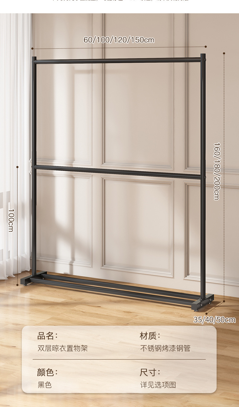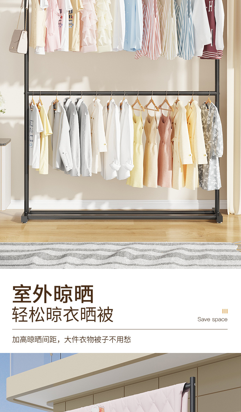 이중층 침실 옷걸이, 가을 겨울용 외투 걸이, 가정용 옷걸이, 빨래 건조대, 바퀴 달린 수납 선반