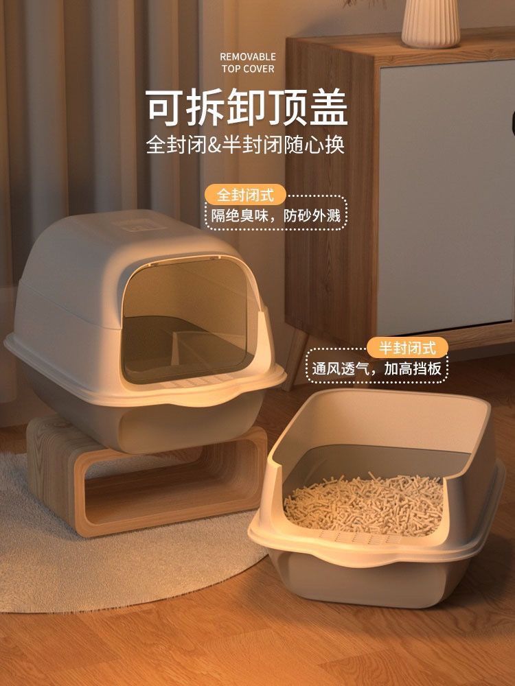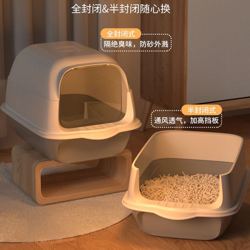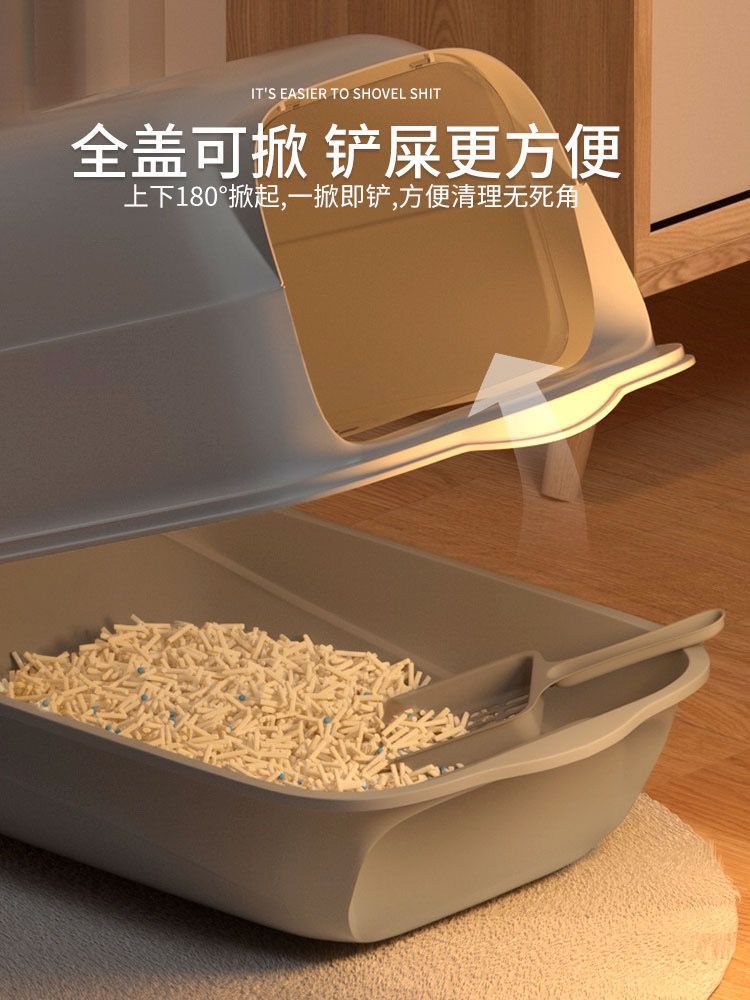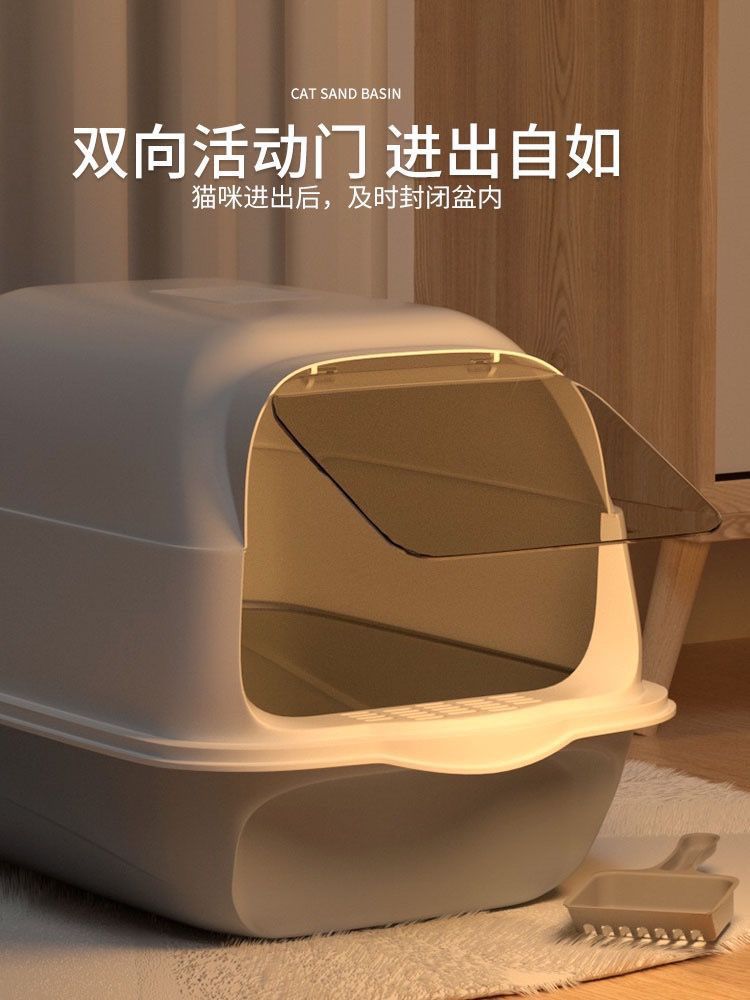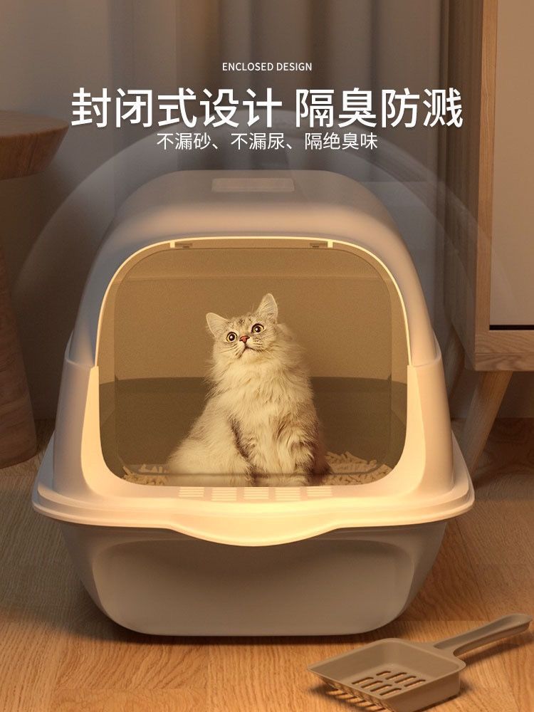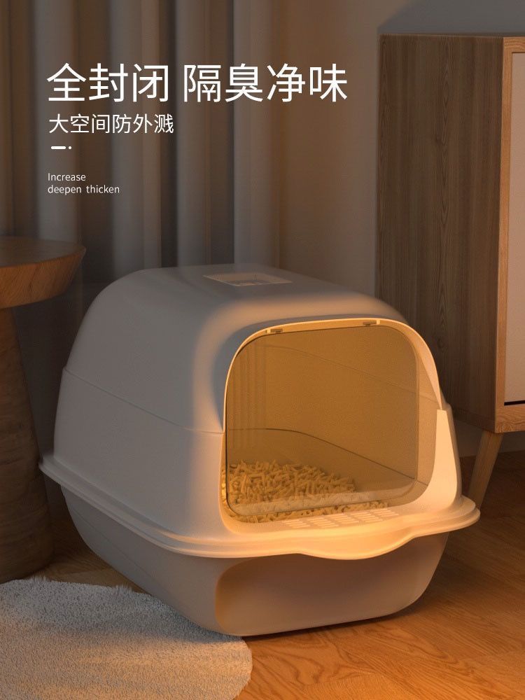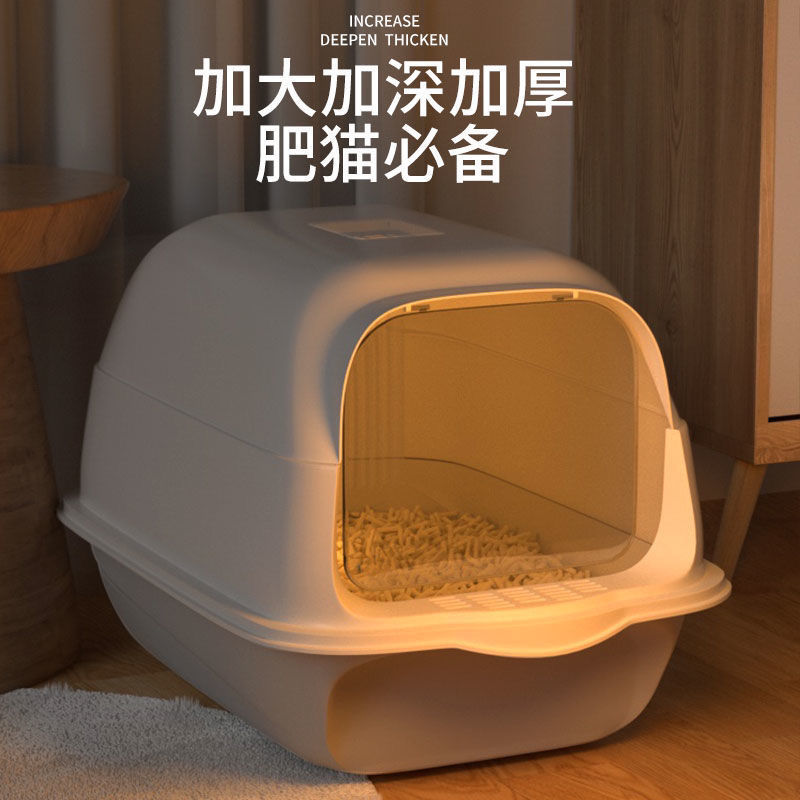 고양이 쓰레기통 초대형 완전 반밀폐형 서랍형 고양이 화장실 냄새 차단 및 모래 방지 케이지 새끼 고양이 배변 상자 고양이 이중 용도
