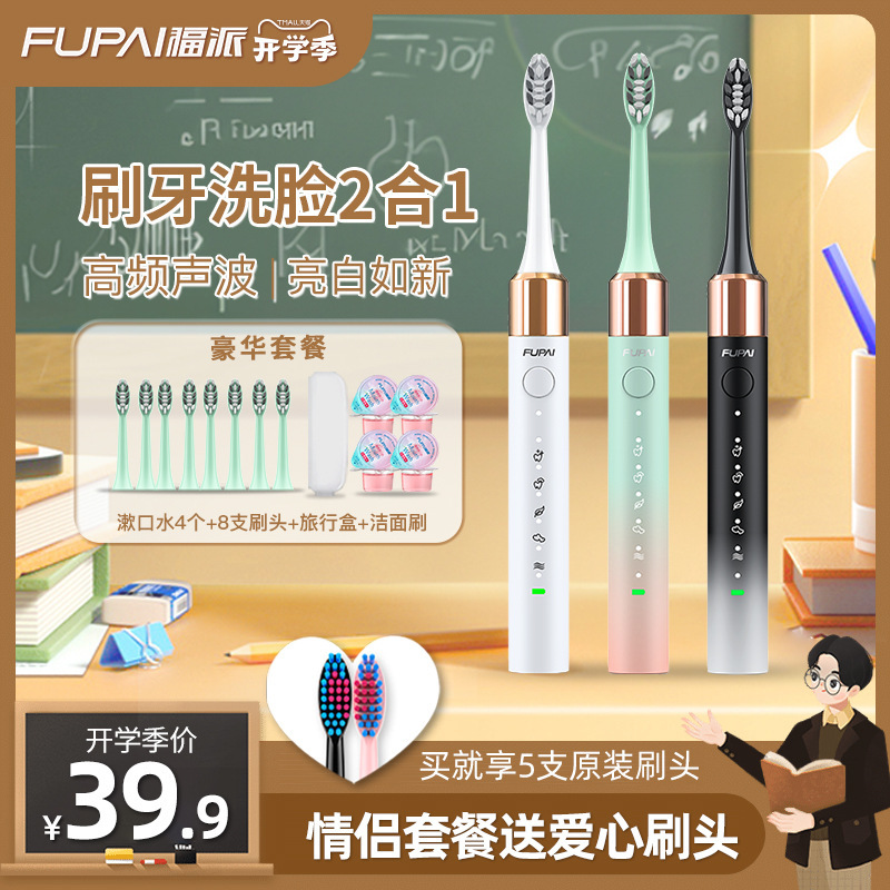 FN Fupai 전동 칫솔 성인 충전식 완전 자동 음파 고급 부드러운 강모 커플 모델 세트 남성과 여성 학생 파티