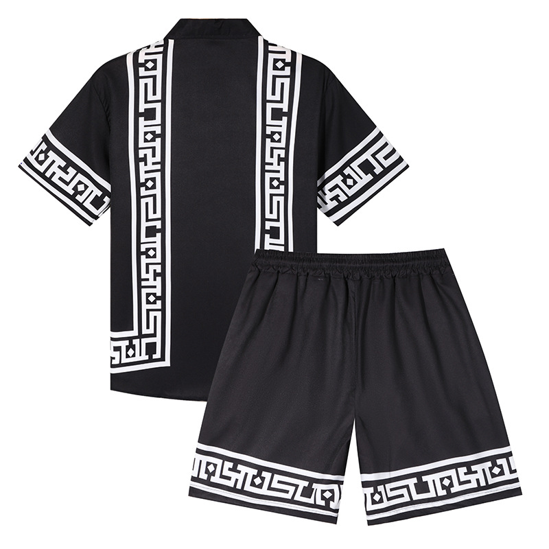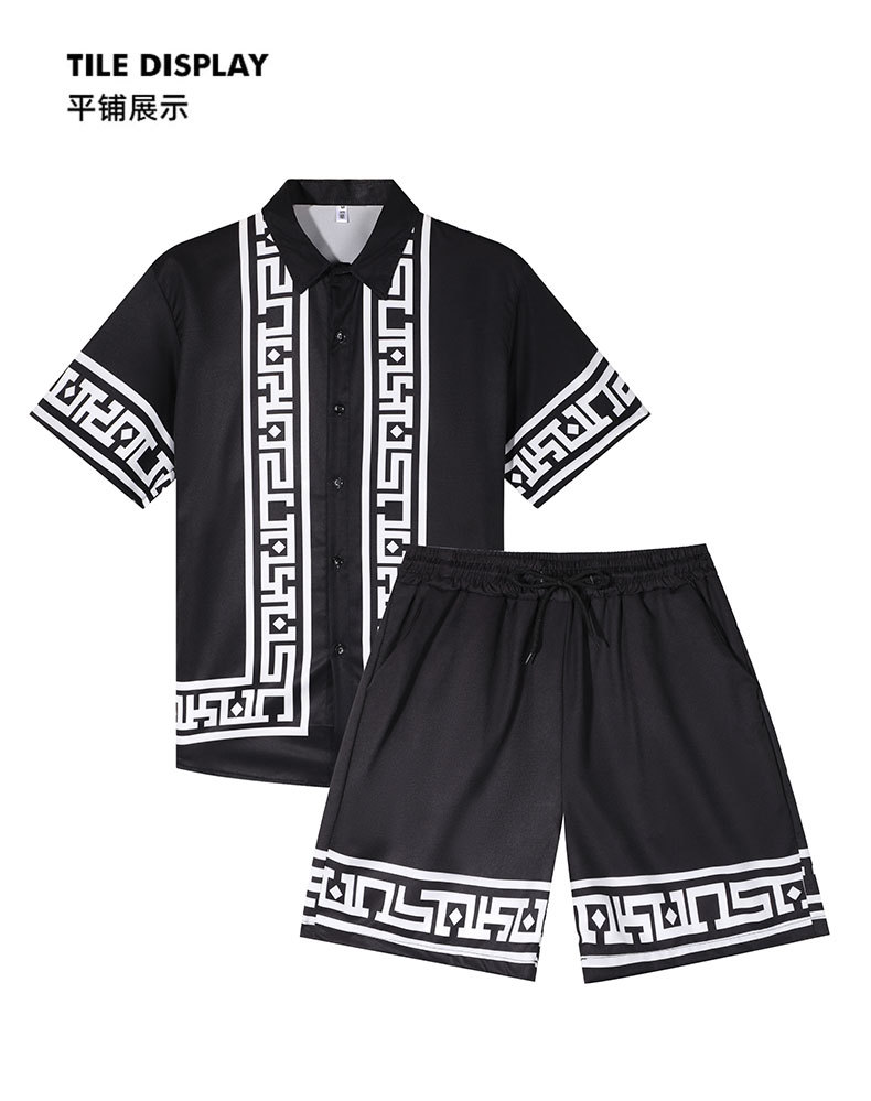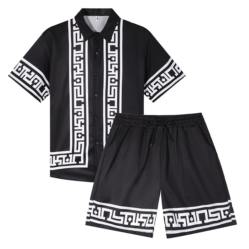 대외 무역 여름 남성 셔츠 캐주얼 루즈 반팔 반바지 투피스 비치 유럽과 미국 스타일의 이국적인 스타일 슈트