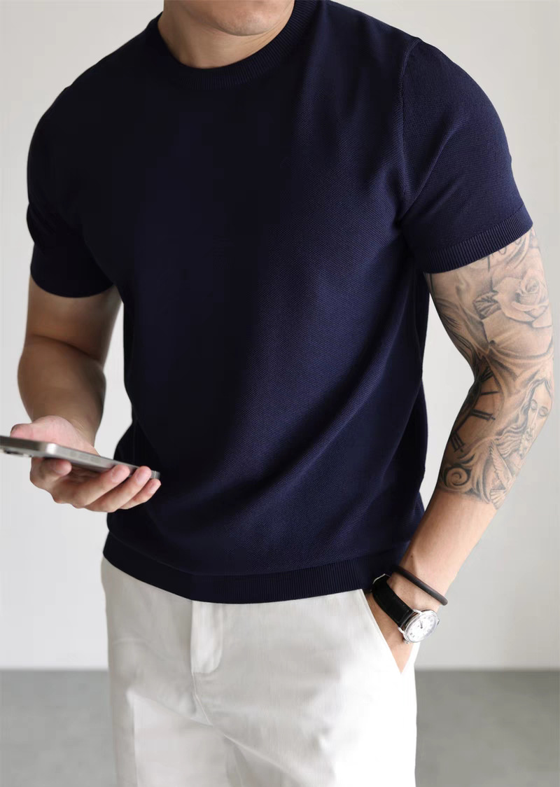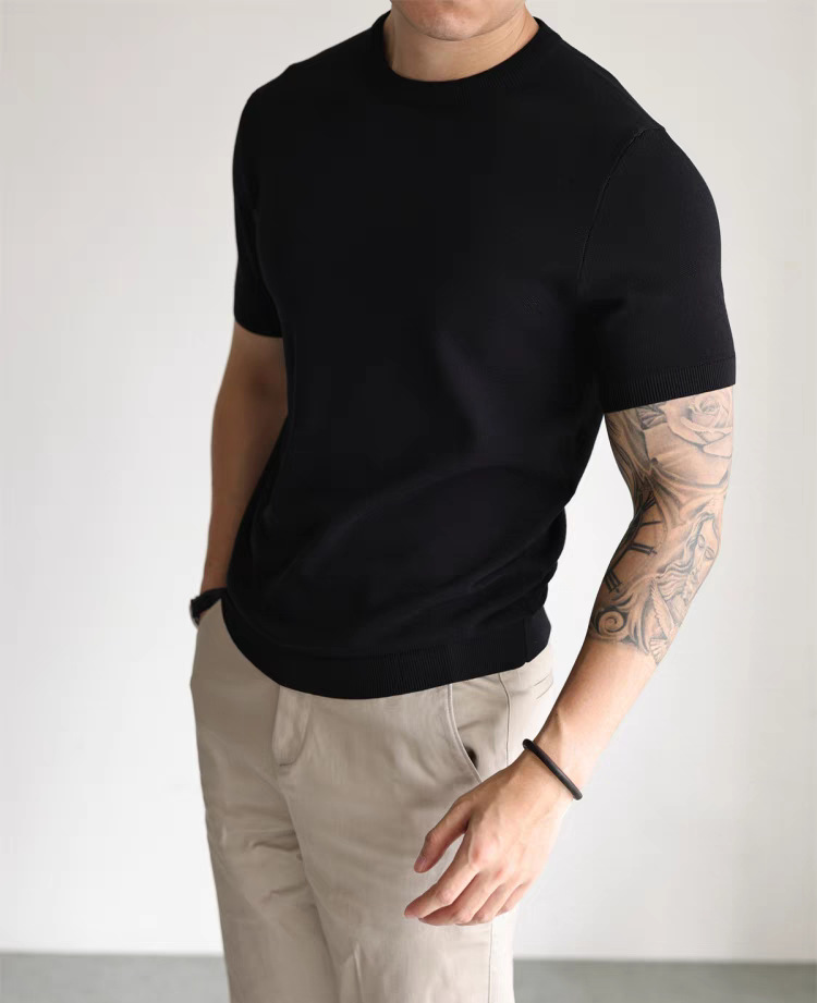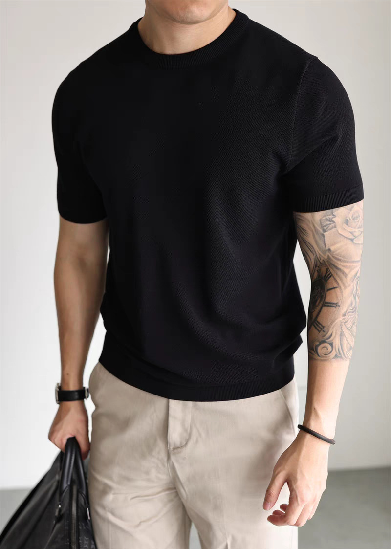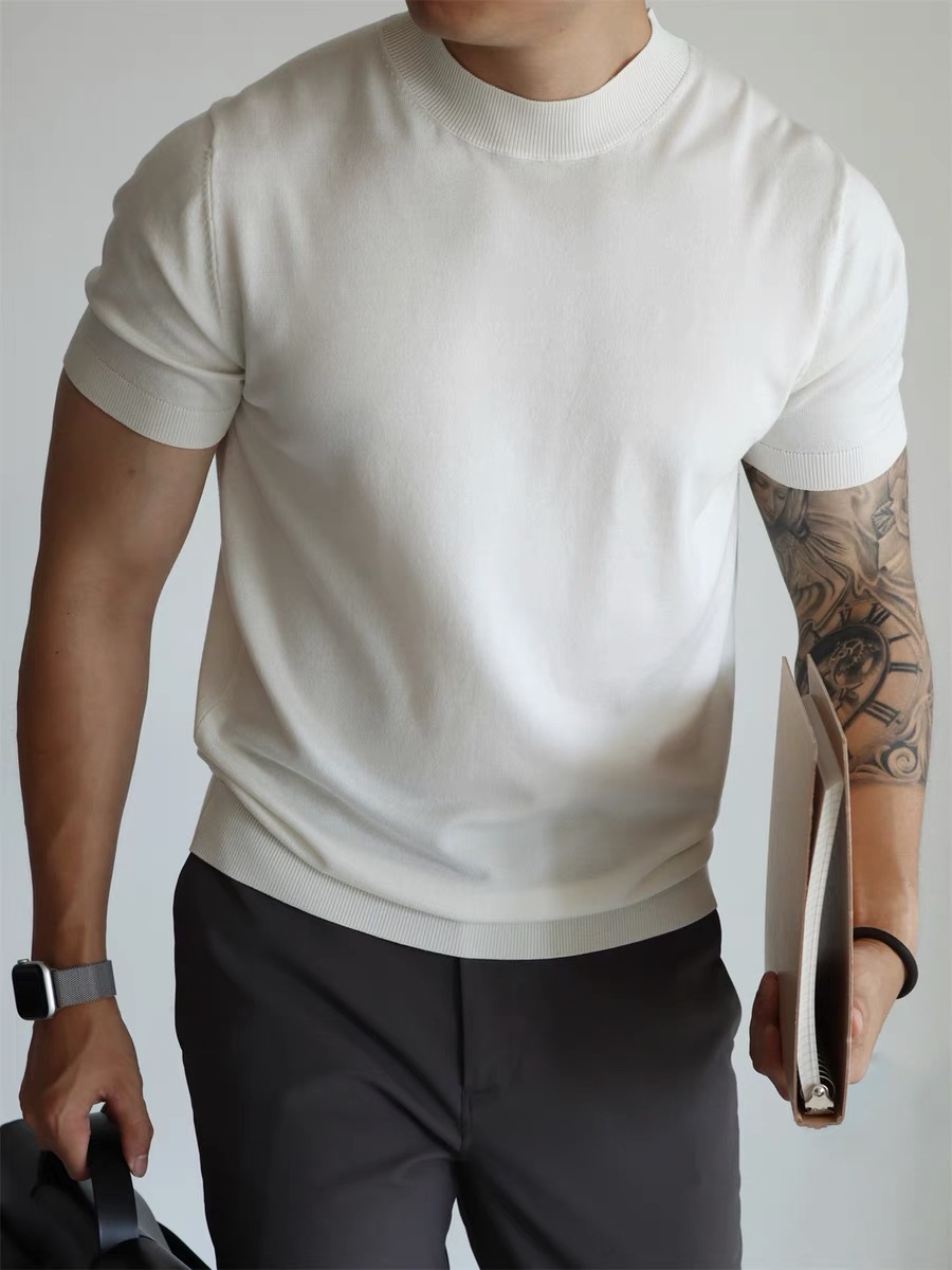 리오셀 텐셀 스웨터 남성용 시원한 통기성 슬림 반팔 스웨트 셔츠 스몰 터틀넥 캐주얼 작업복 스웨터 티셔츠