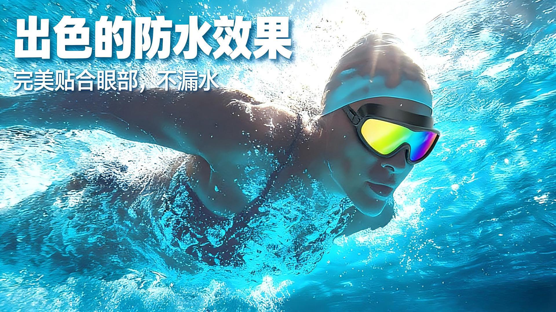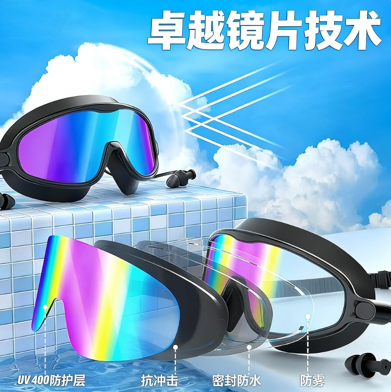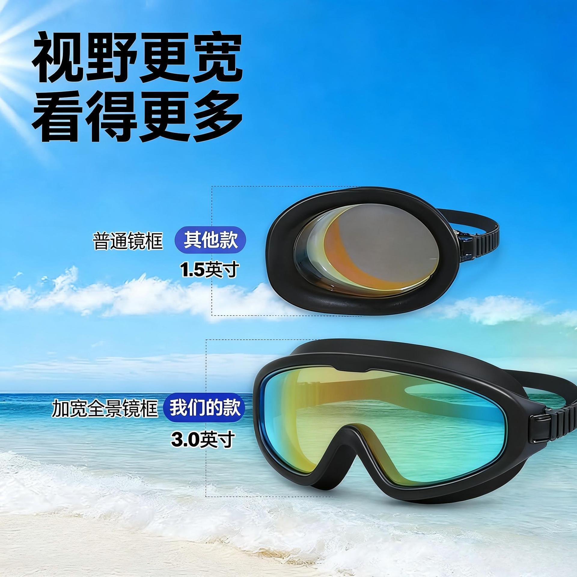 국경을 넘는 인기 상품 대형 프레임 수경 고화질 방수 김서림 방지 남녀공용 성인용 일체형 귀마개 전기도금 수경