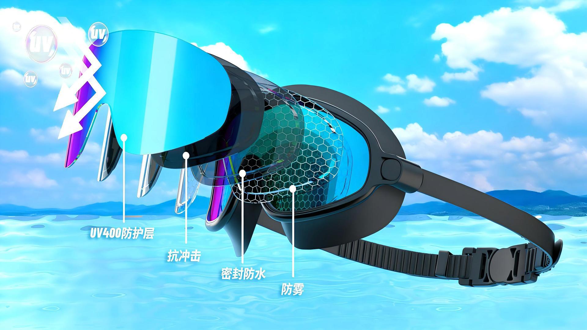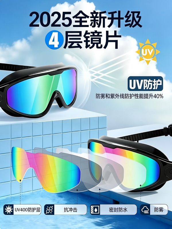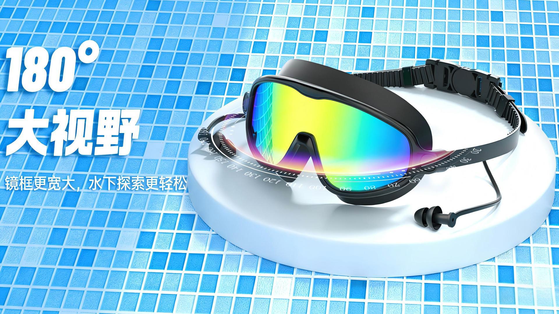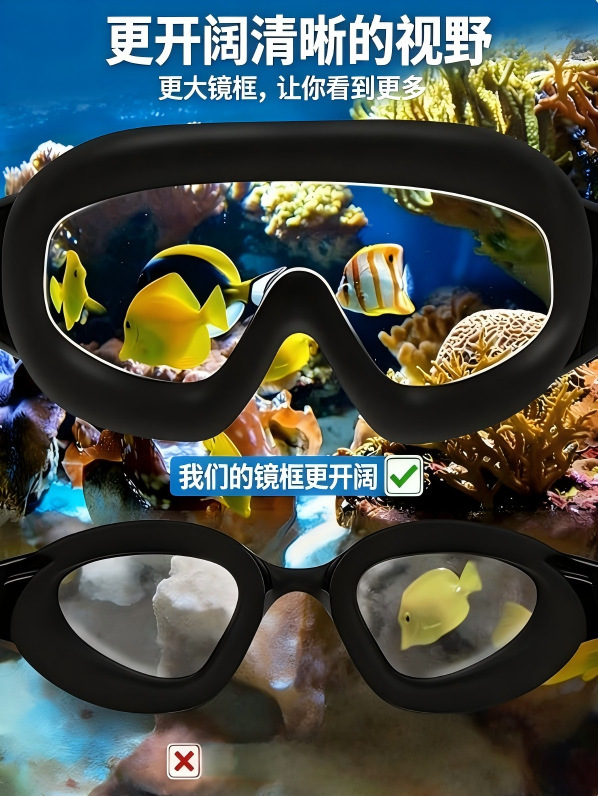 국경을 넘는 인기 상품 대형 프레임 수경 고화질 방수 김서림 방지 남녀공용 성인용 일체형 귀마개 전기도금 수경