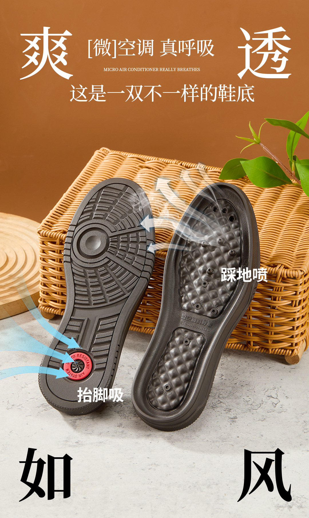 에어컨 신발 밑창 사계절용 고무 마사지 미끄럼 방지 내마모성 경량 두꺼운 밑창 마이크로 고급 깔창 플랫솔