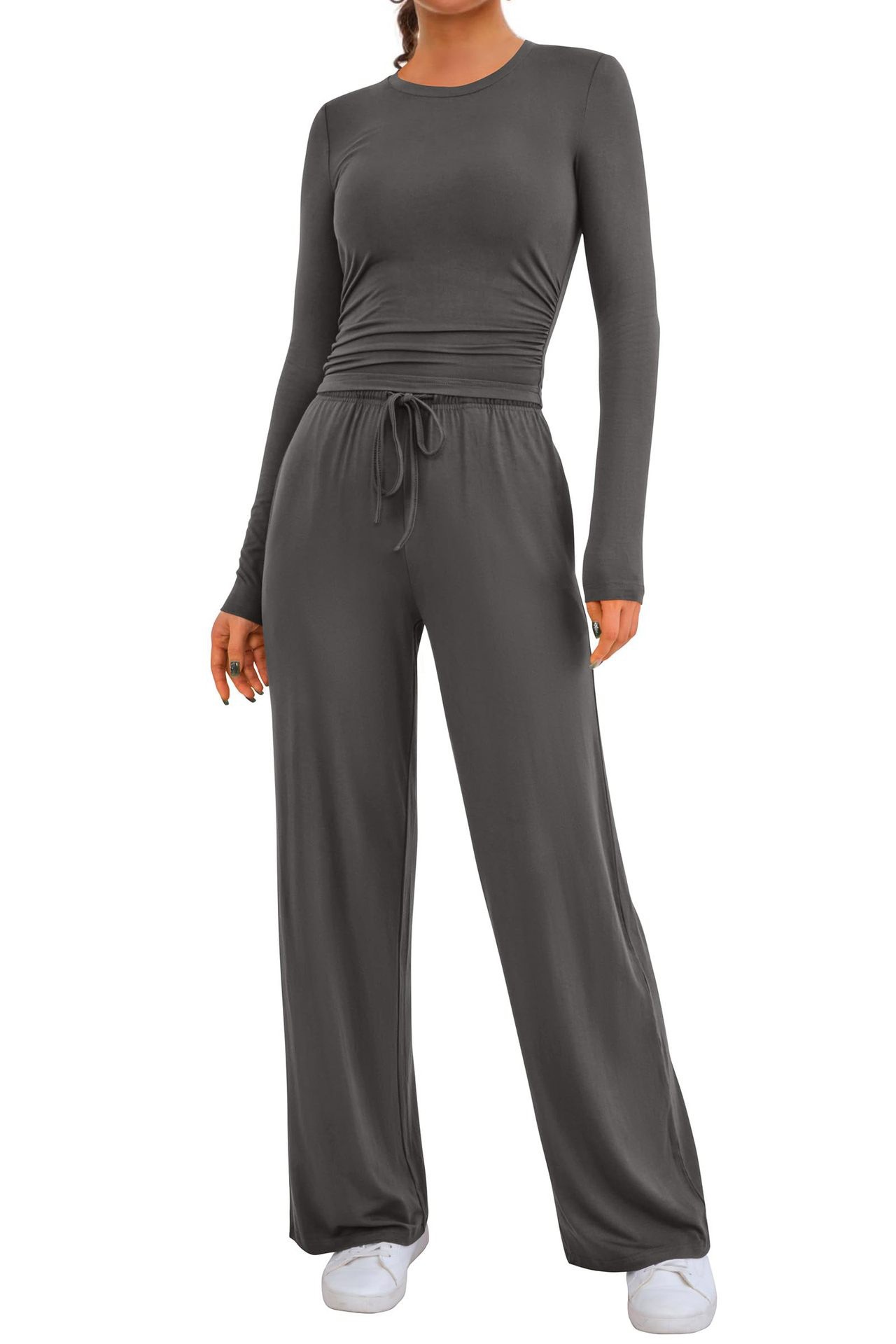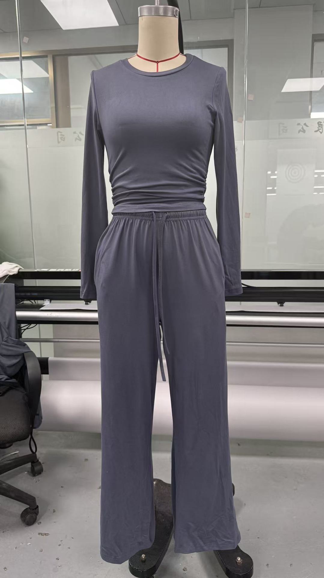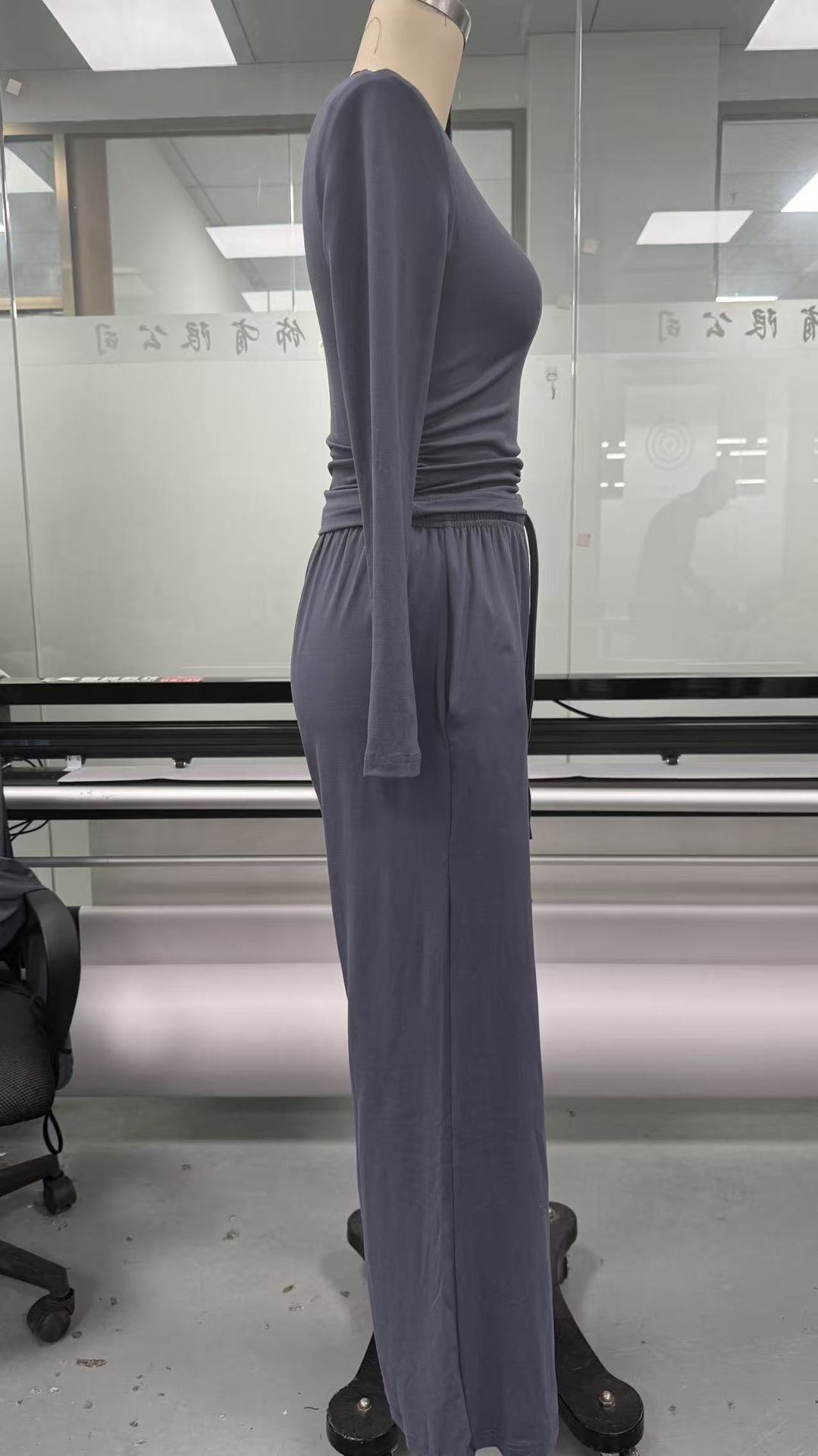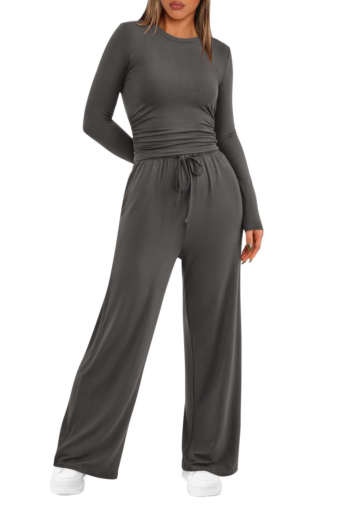 2026 유럽 및 미국 스타일의 비대칭 디자인 캐주얼 세트, 여성용 긴팔 와이드 팬츠, 다양한 상황에 적합한 스포츠웨어