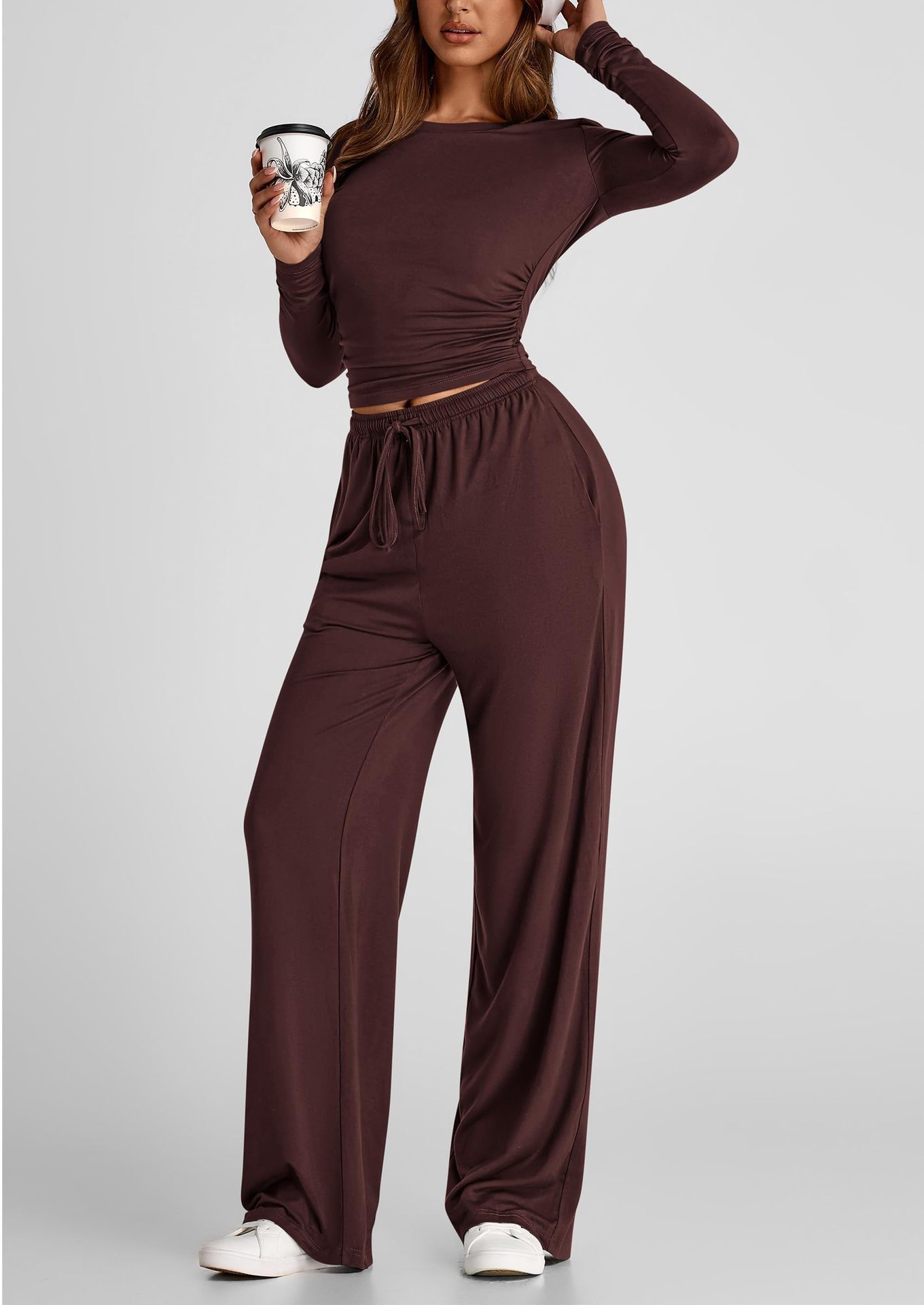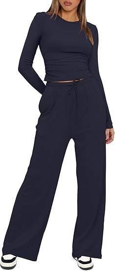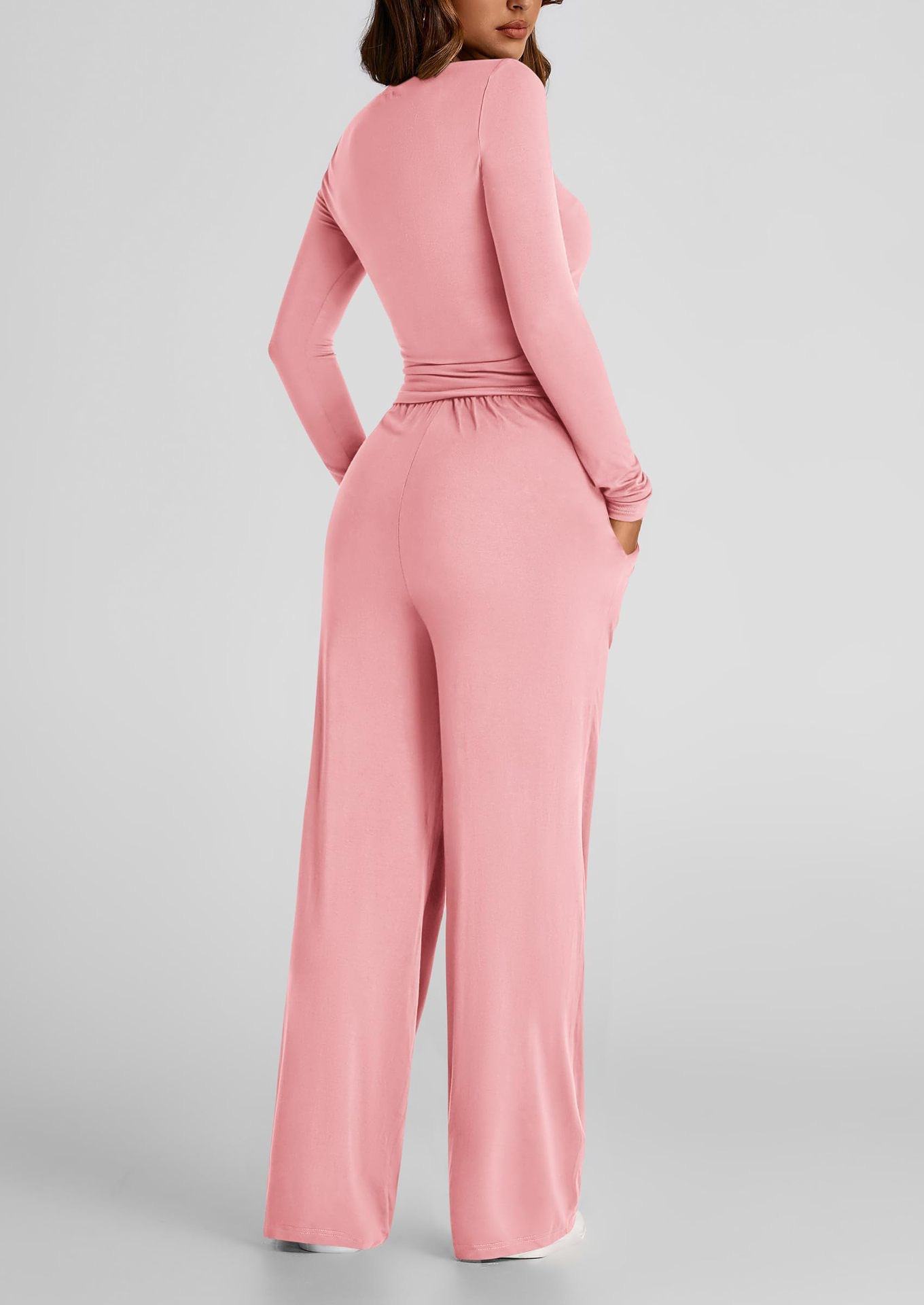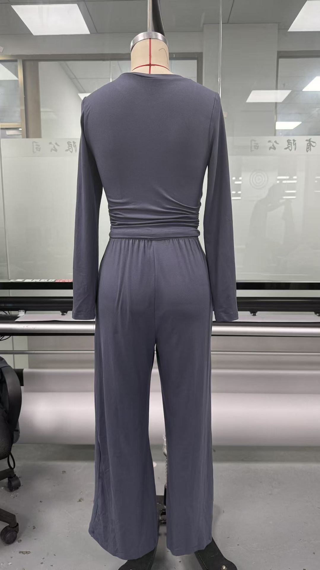 2026 유럽 및 미국 스타일의 비대칭 디자인 캐주얼 세트, 여성용 긴팔 와이드 팬츠, 다양한 상황에 적합한 스포츠웨어