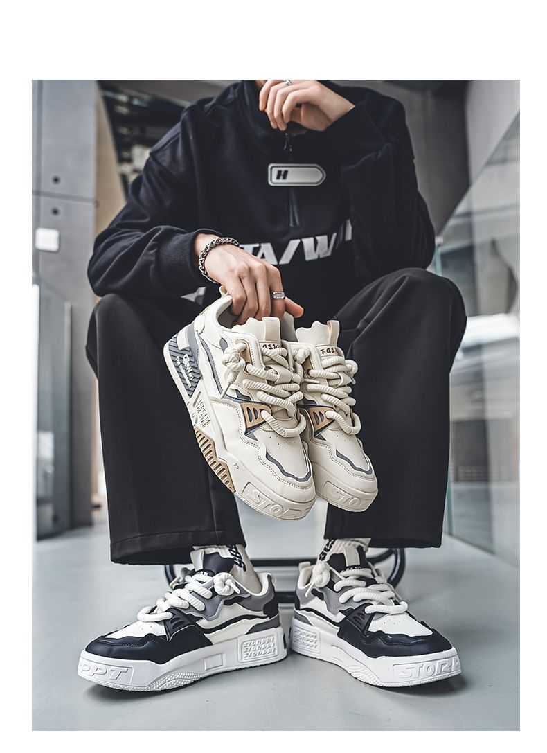 대형 남성 신발 2025 새로운 대외 무역 특별 캐주얼 스포츠 신발 남성 두꺼운 밑창 가죽 표면 46 사이즈 운동화