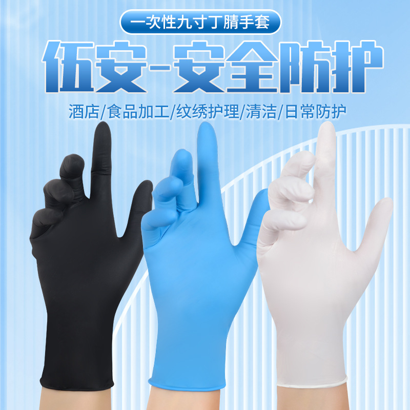 9inch 검정색 순수 니트릴 XL 장갑(상자당 100개)