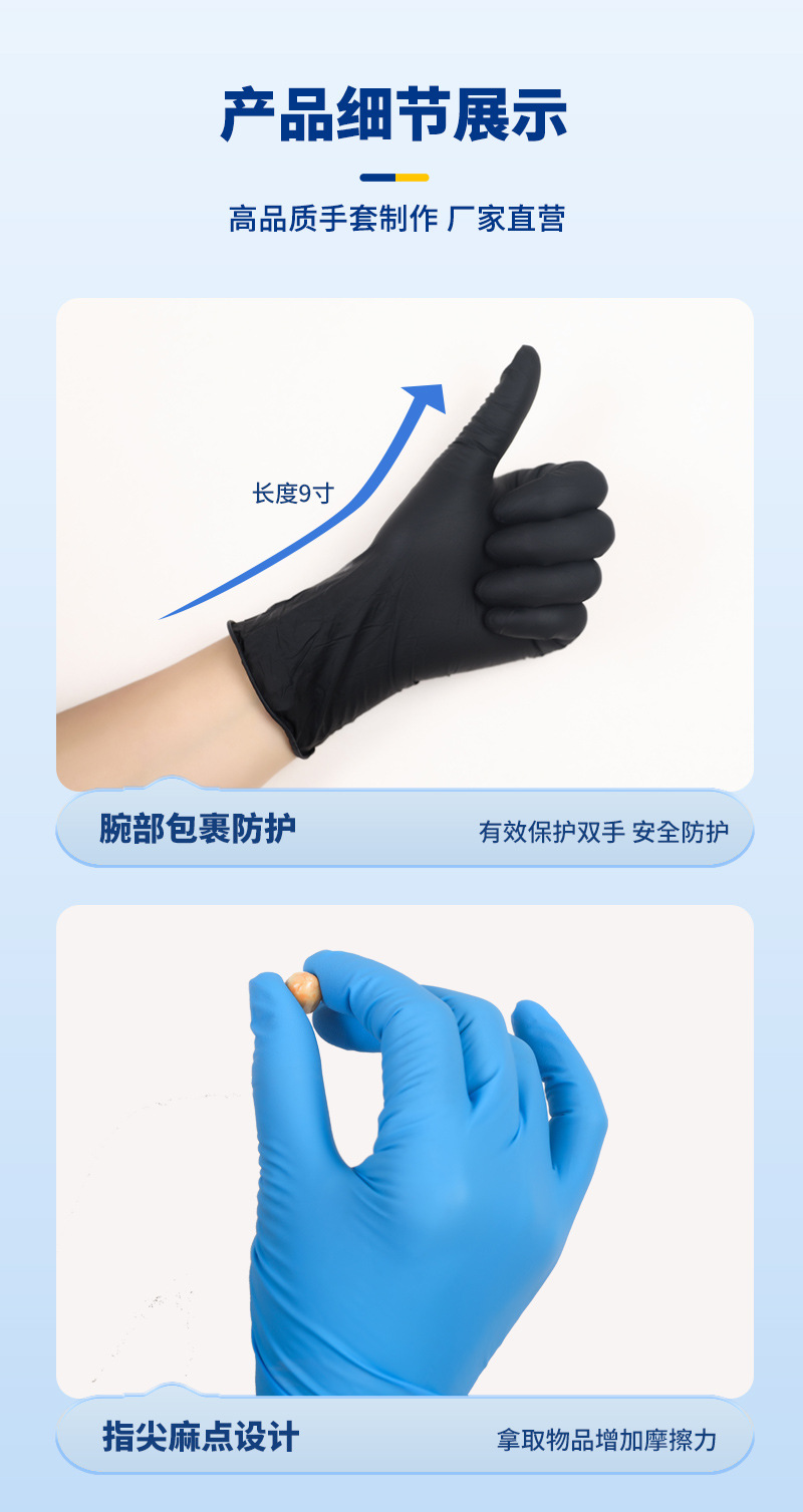 9inch 파란색 순수 니트릴 XL 장갑(상자당 100개)