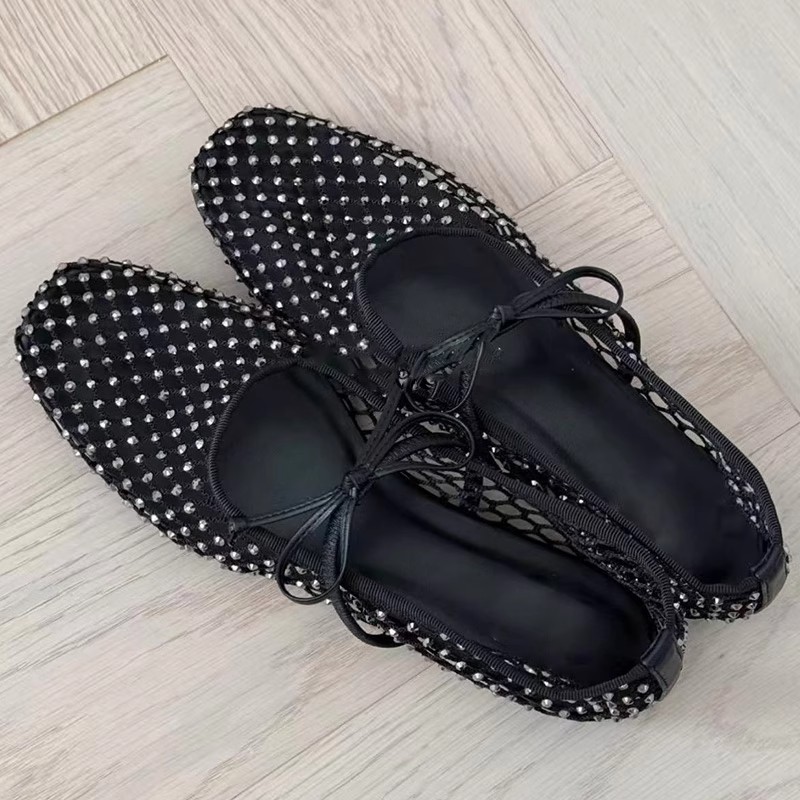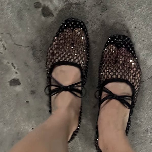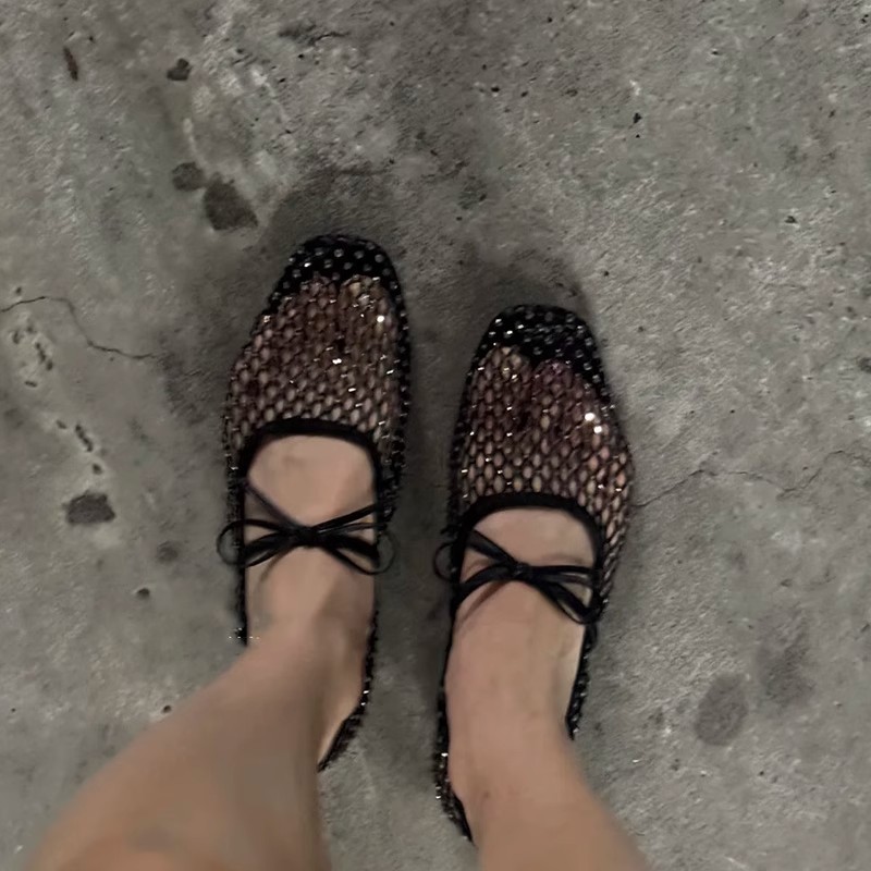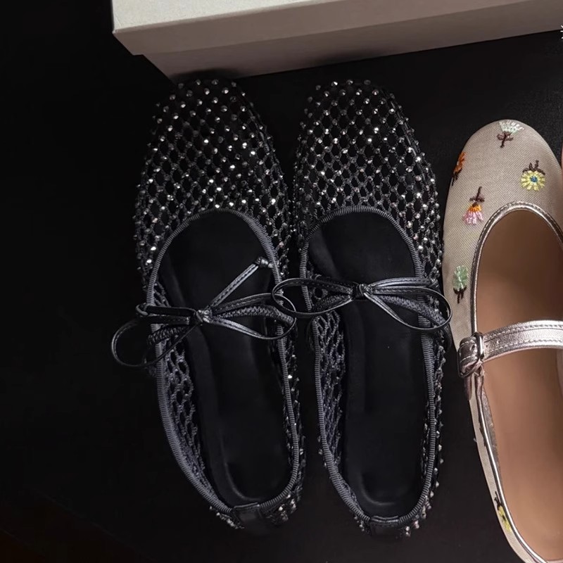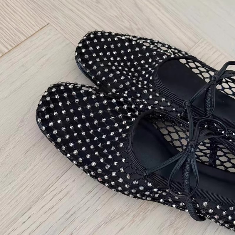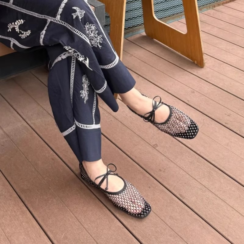 한국 틈새 라인스톤 메쉬 메리제인 여성화 2025 여름 신작 메쉬 발레 플랫 플랫 슈즈