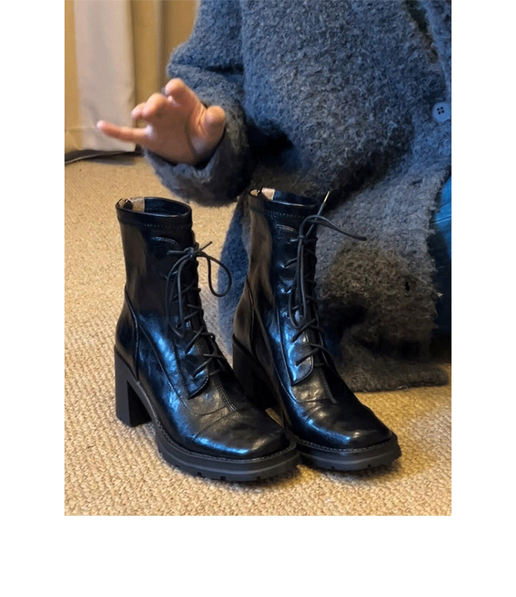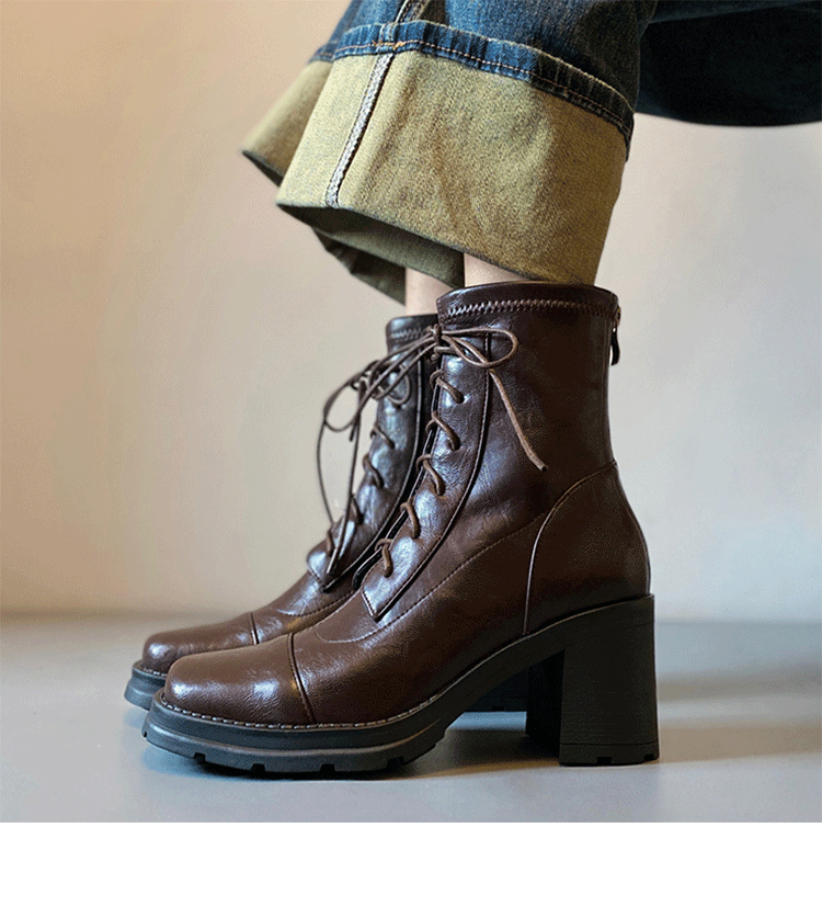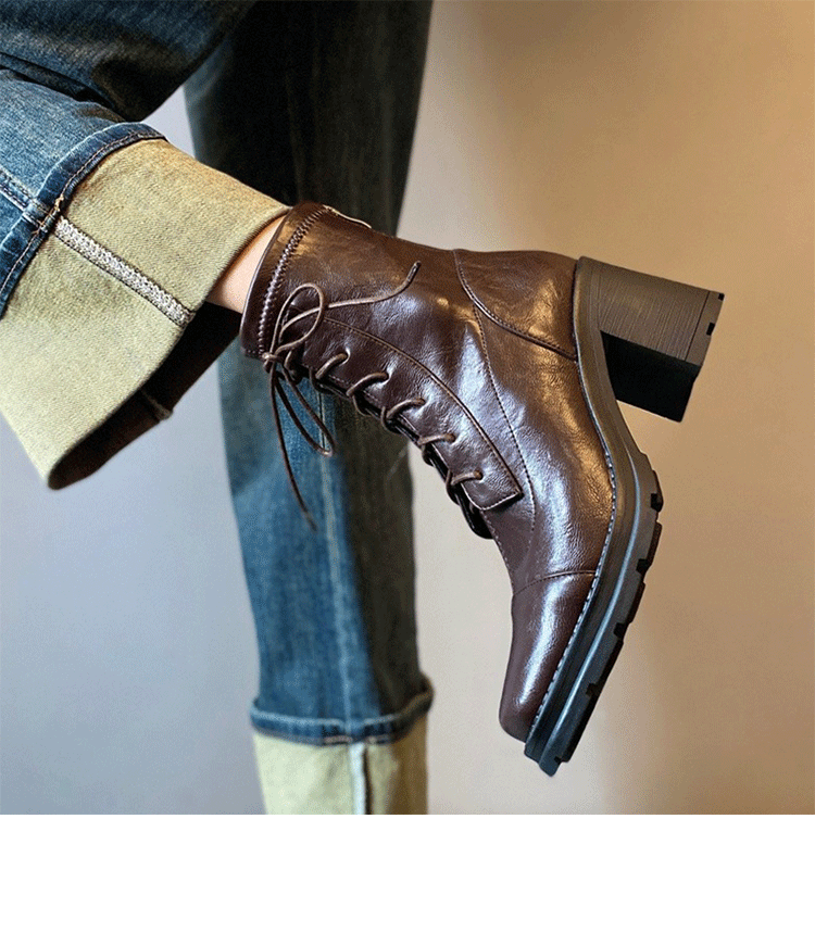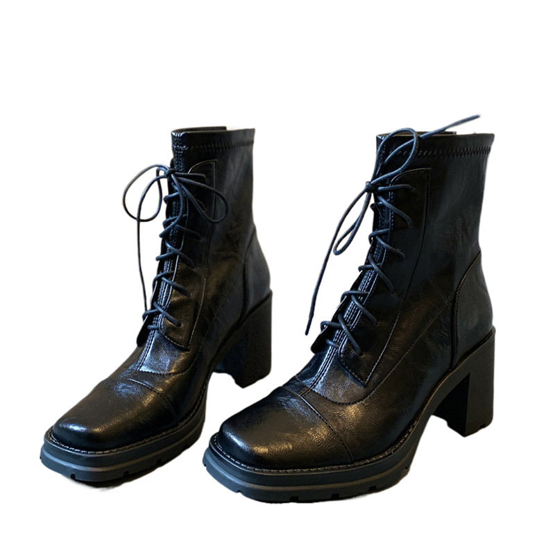 여성용 하이힐 두꺼운 밑창 다용도 마틴 부츠, 영국식 방수 플랫폼, 레이스업 사이드 지퍼, 여성용 신축성 있는 슬림 숏부츠