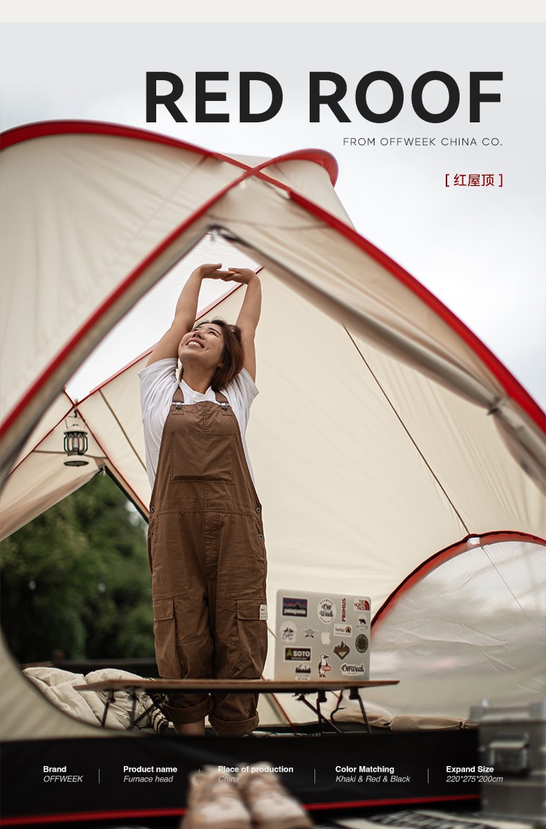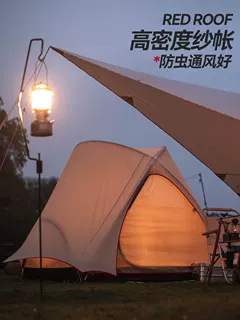 빨간 지붕 야외 캠핑 텐트 휴대용 접이식 피크닉 캐노피 풀 세트는 가볍고 서서 사용할 수 있습니다.