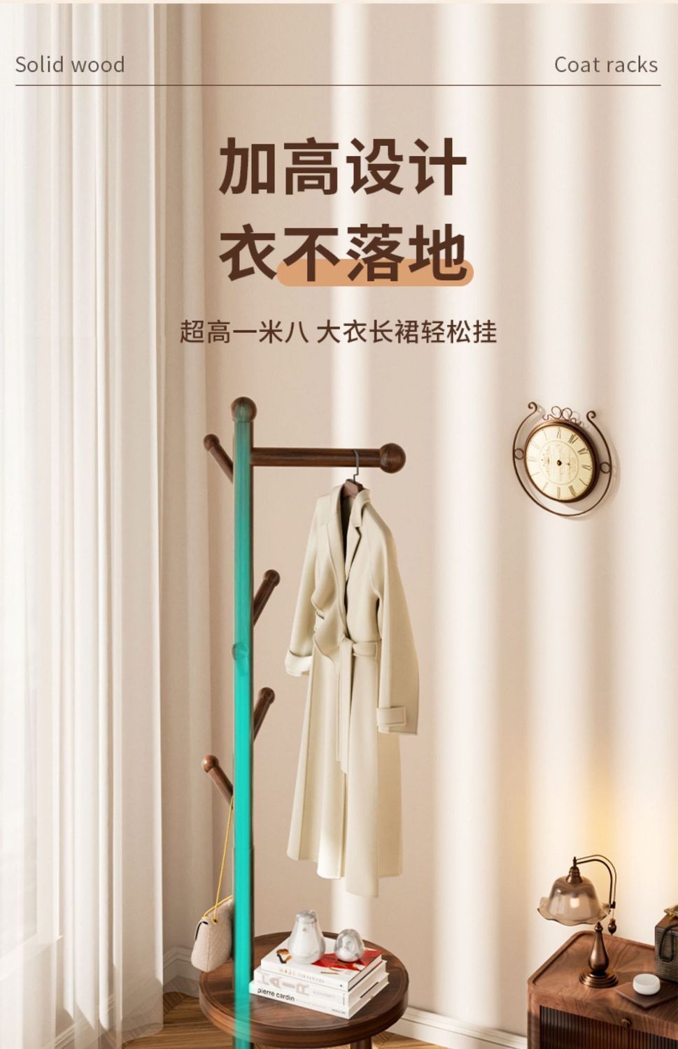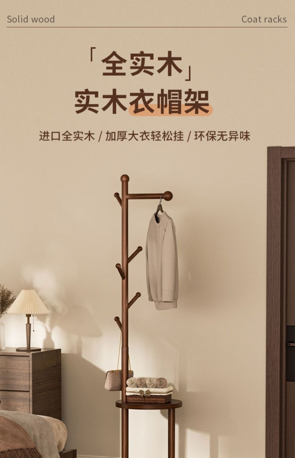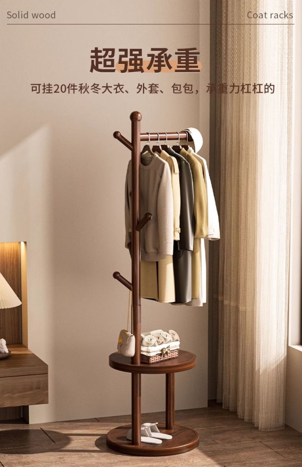 도매 프랑스 스타일 침실 단단한 나무 코트 랙 침대 옆 테이블 옷걸이 통합 홈 침실 스토리지 랙 간단한 옷