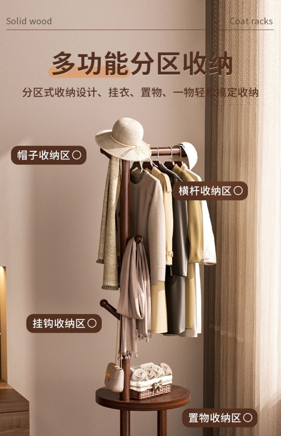 SP 원형 회전 옷걸이 월넛 컬러