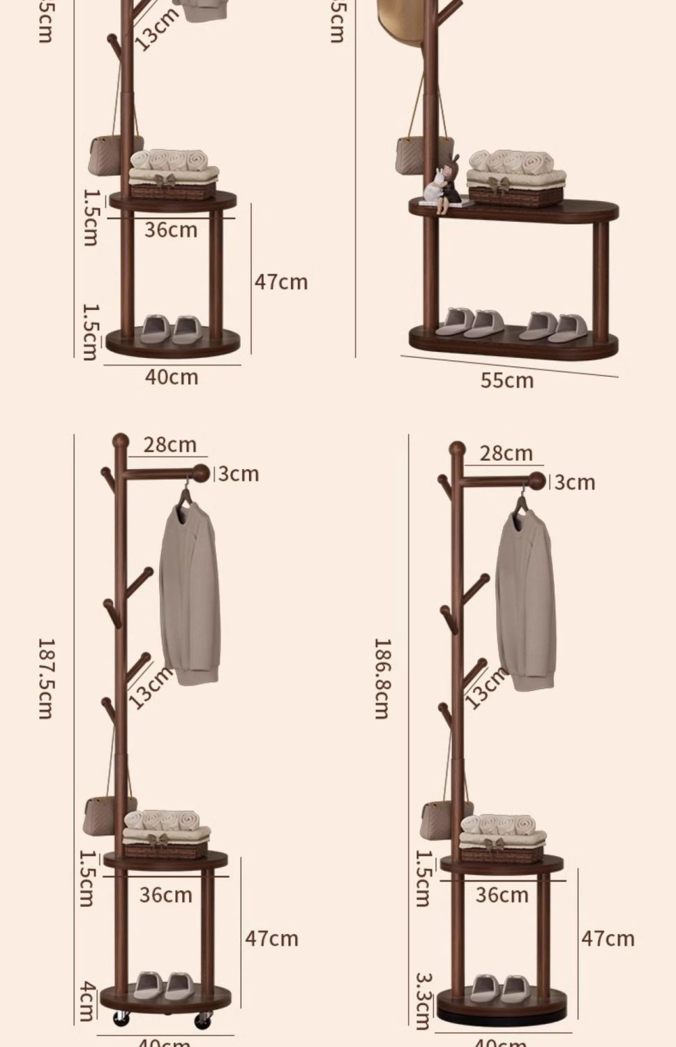 SP 원형 이동식 옷걸이 월넛 컬러