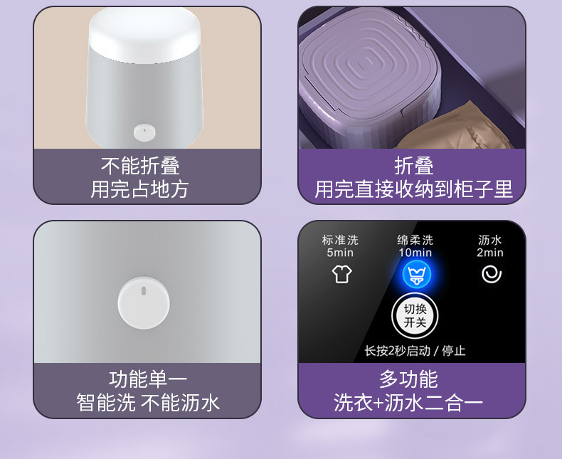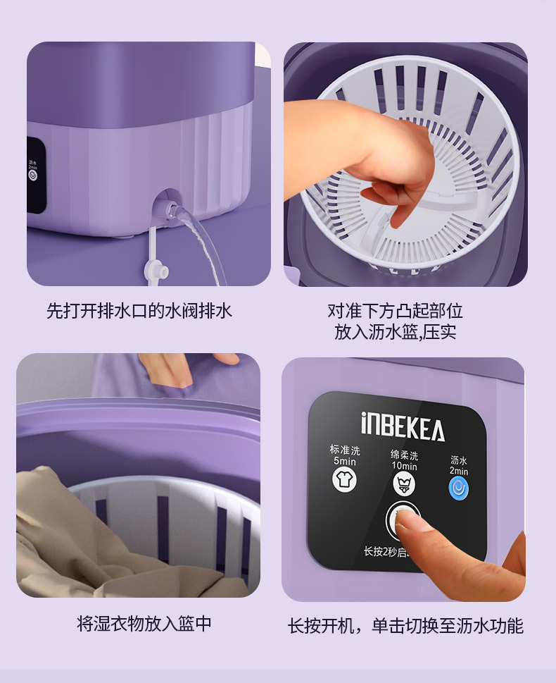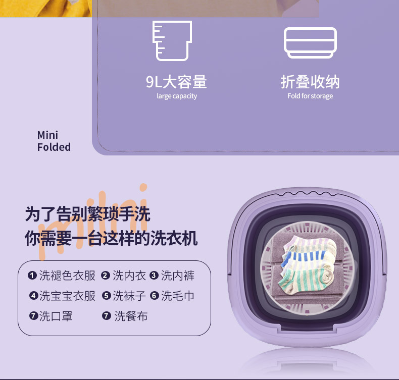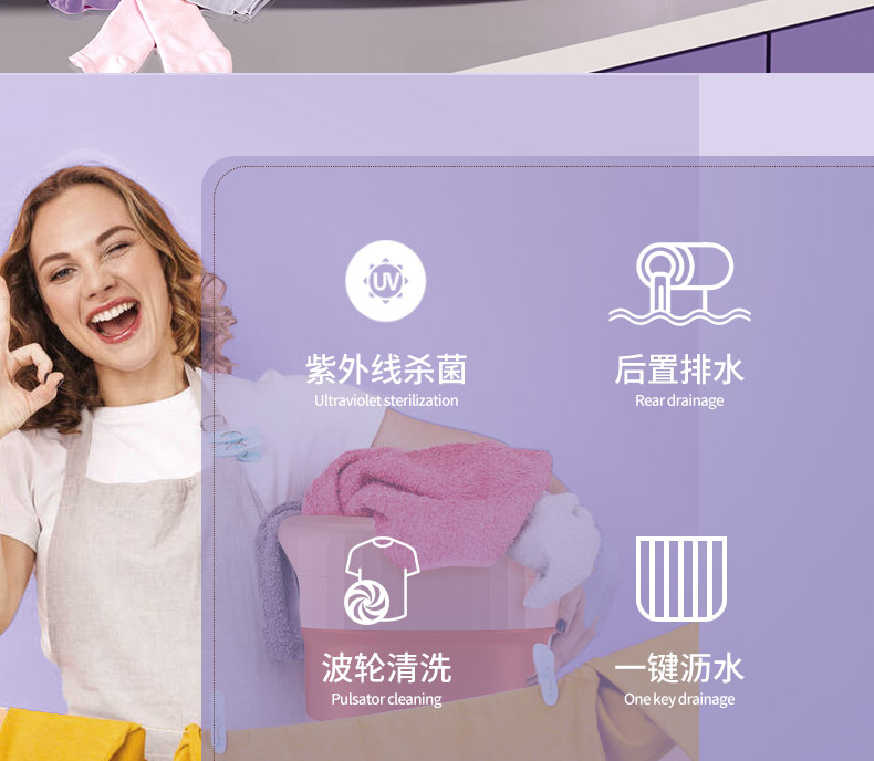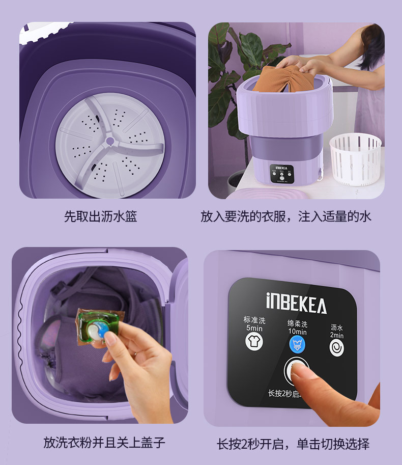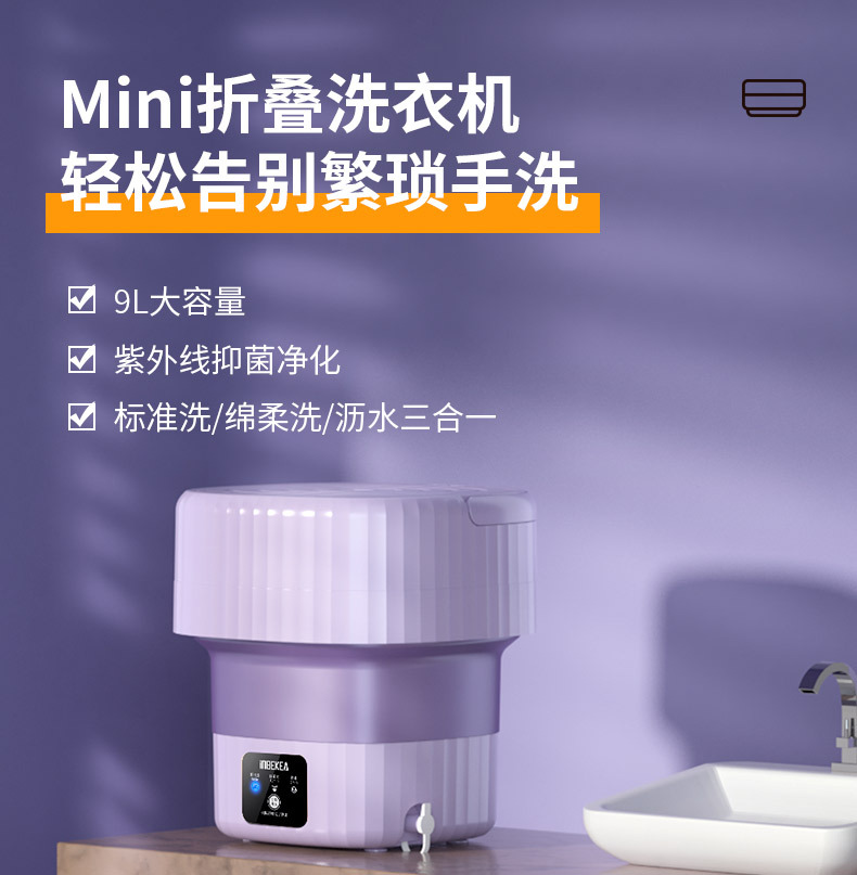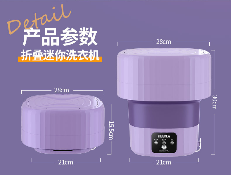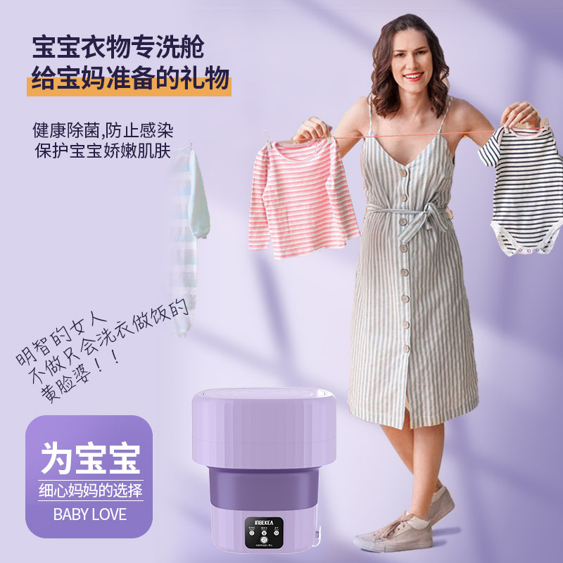 국경 간 미니 접이식 세탁기, 편리한 전자동 세탁기, 속옷 및 양말 세탁 및 탈착 일체형 세탁기