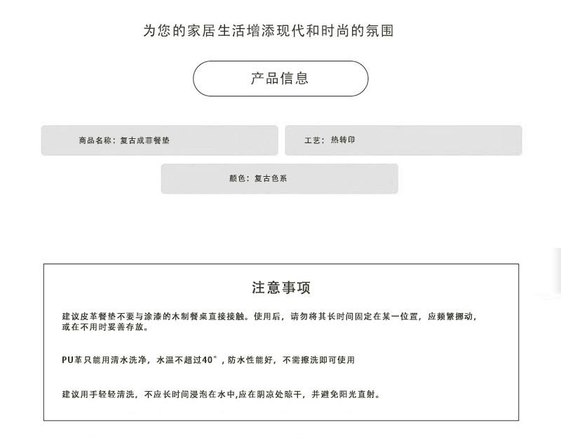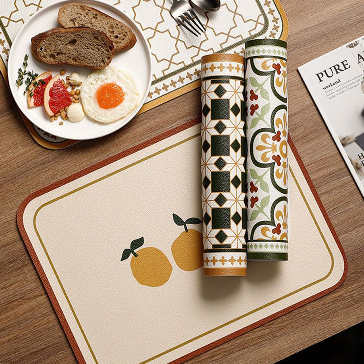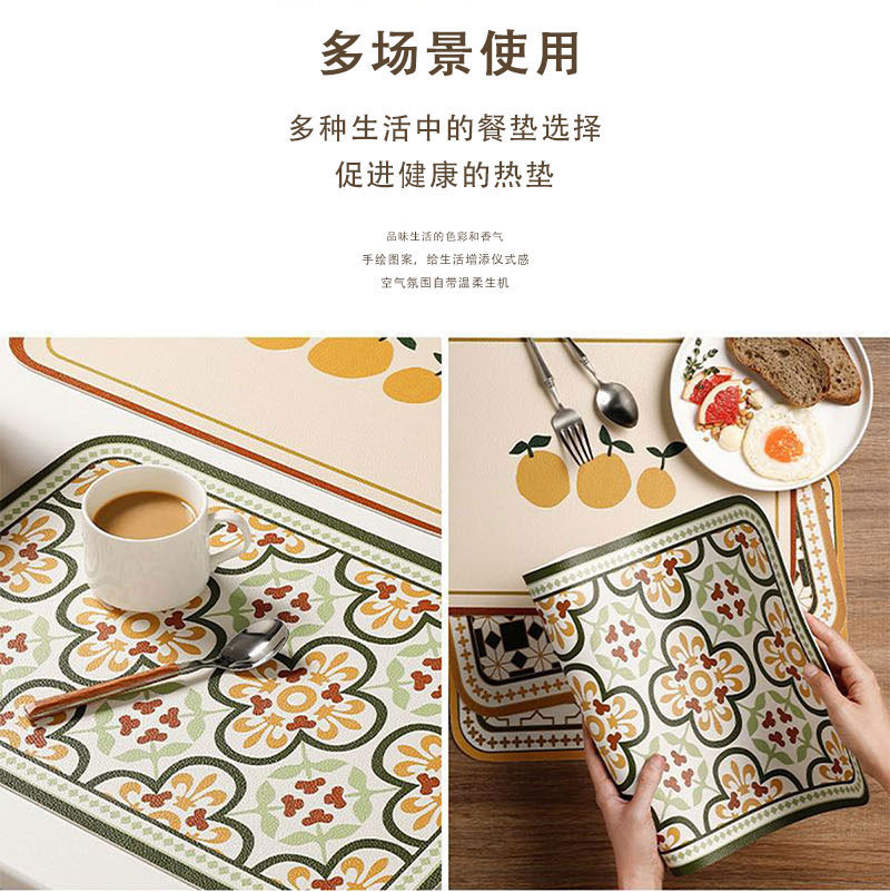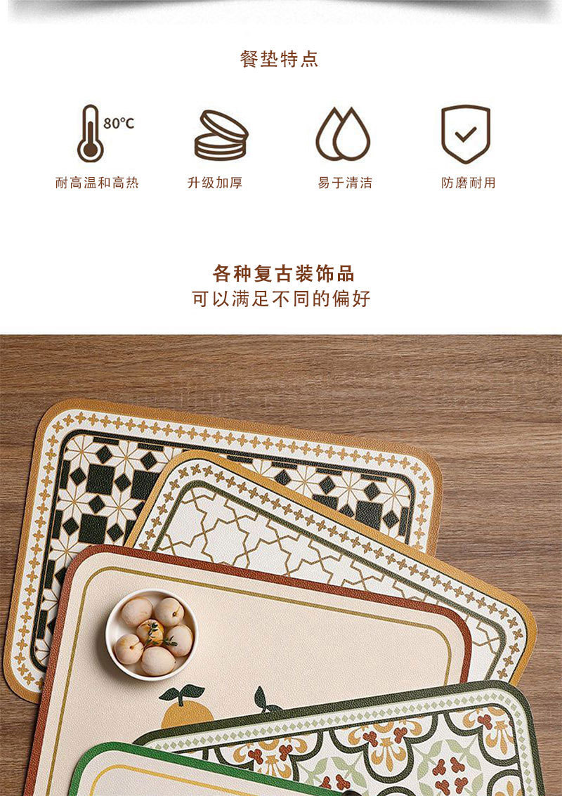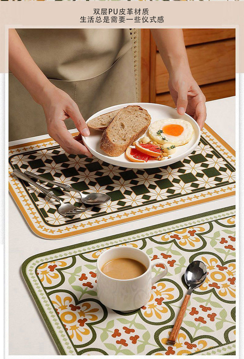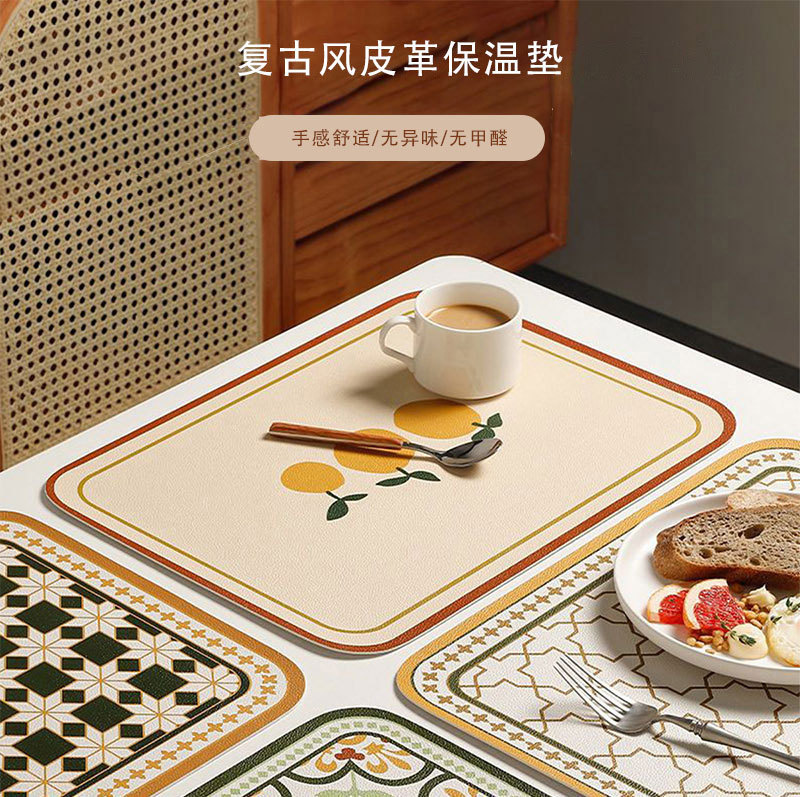 레트로 가죽 플레이스 매트 미끄럼 방지 내마모성 플레이스 매트 단열 매트 방수 및 내유성 매트 홈 호텔 0.8mm 두께