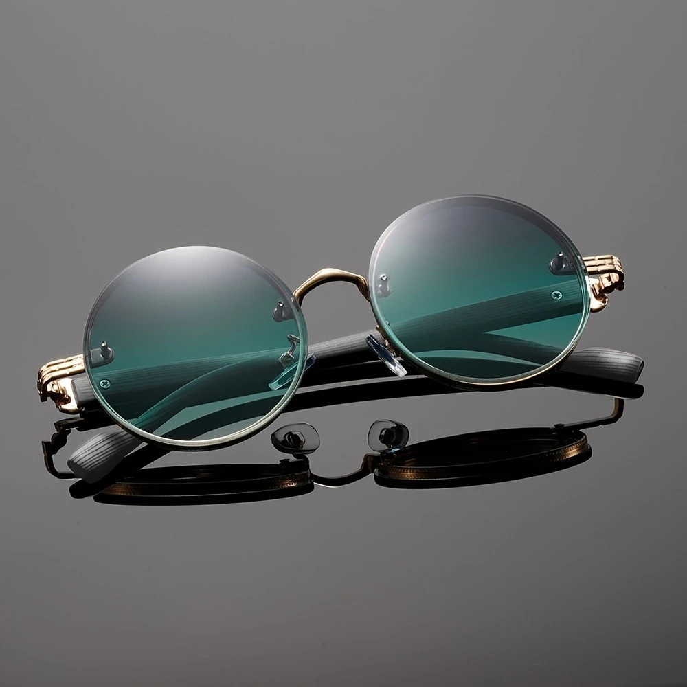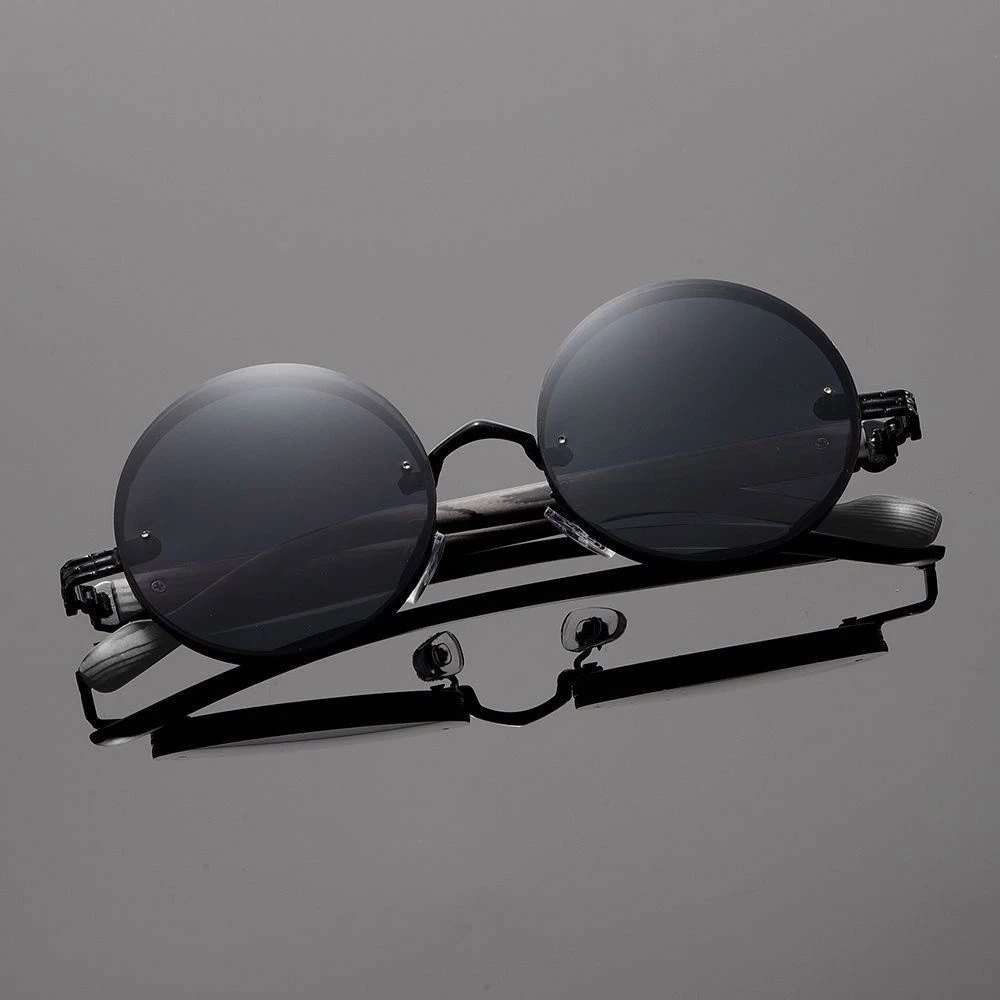 크로스보더 신상 유럽 및 미국 레트로 원형 프레임 여성용 선글라스, 메탈 펑크 나무무늬 다리, 패셔너블하고 다재다능한 남성용 선글라스