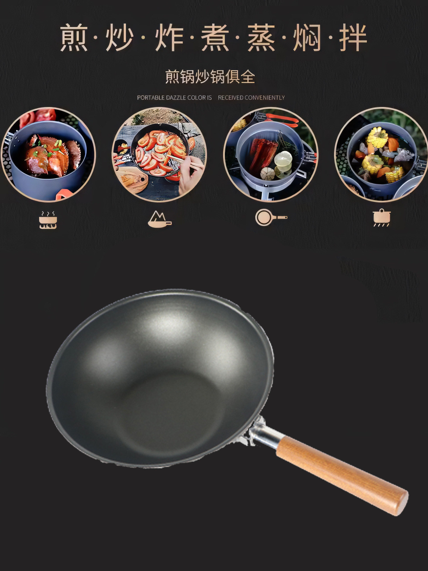 야외 캠핑 냄비 세트 중국식 냄비 붙지 않는 코팅 휴대용 접이식 냄비 세트 캠핑 자율 주행 조리기구 냄비 냄비