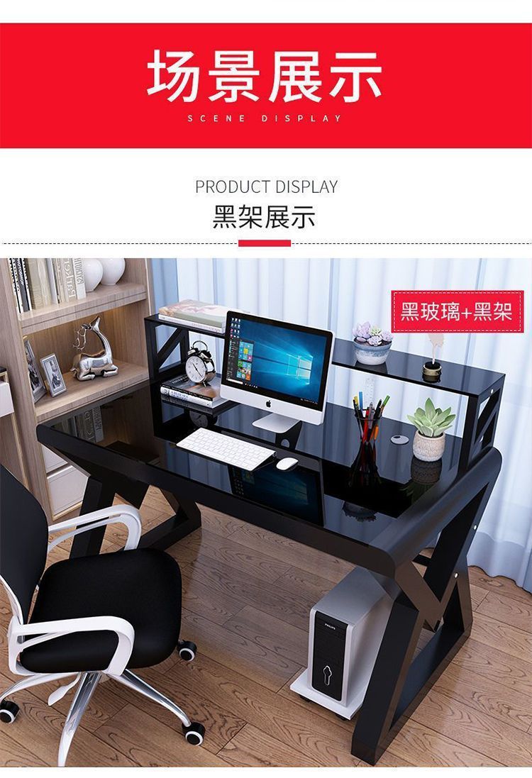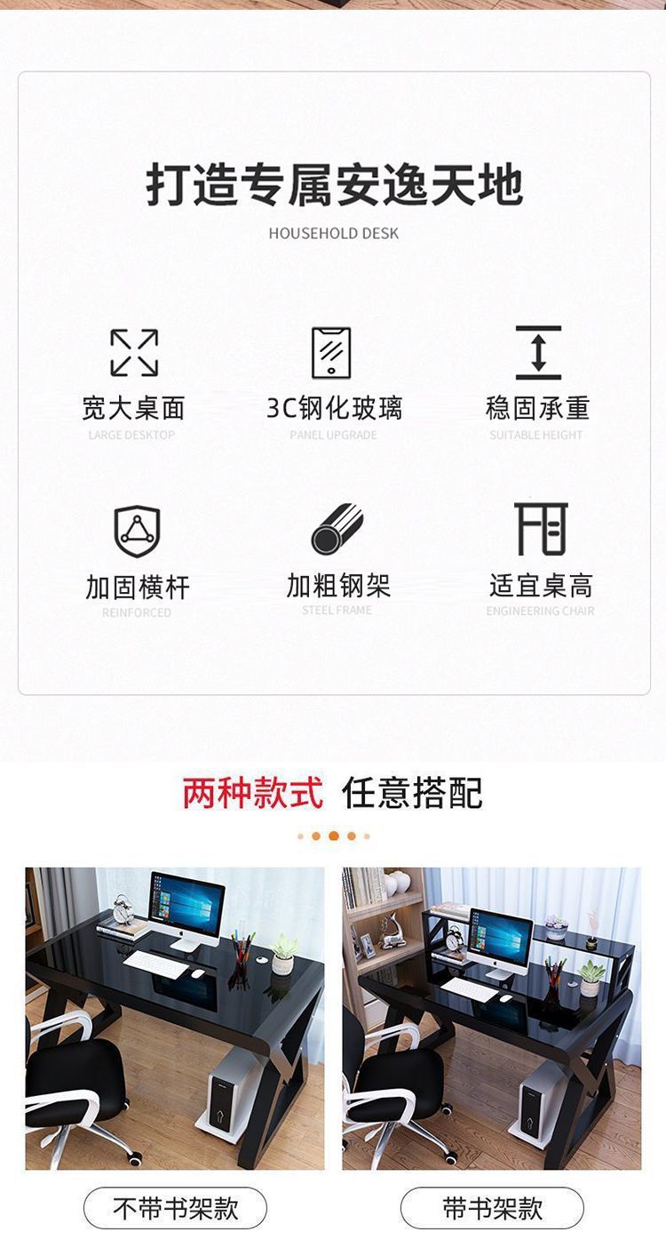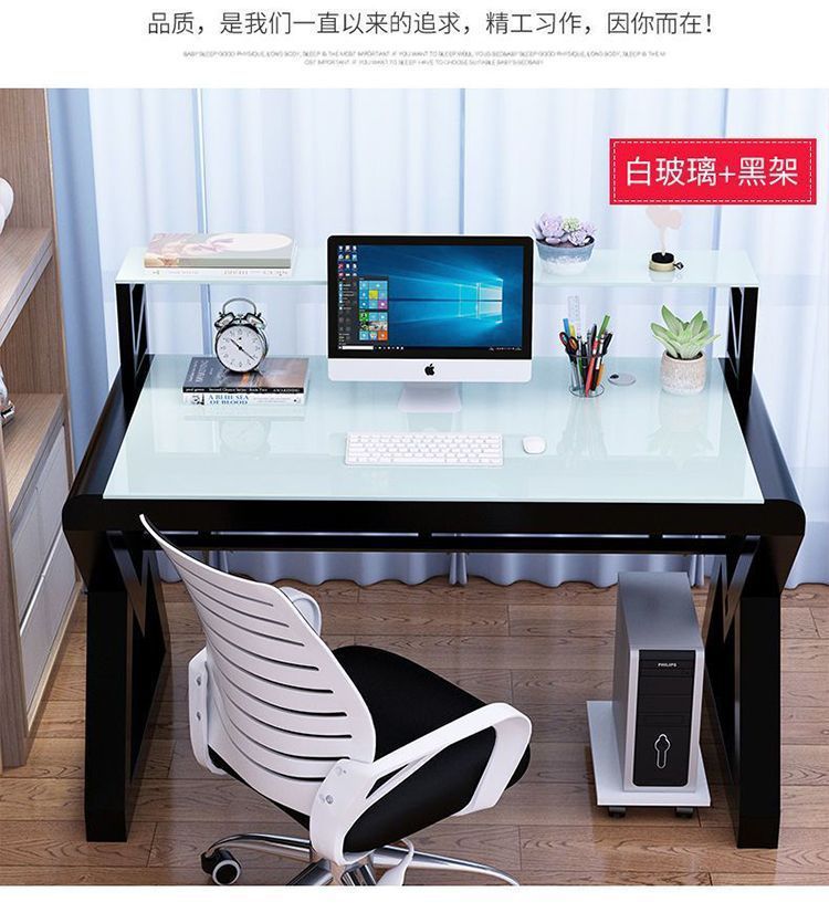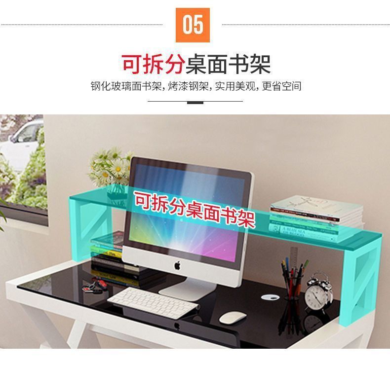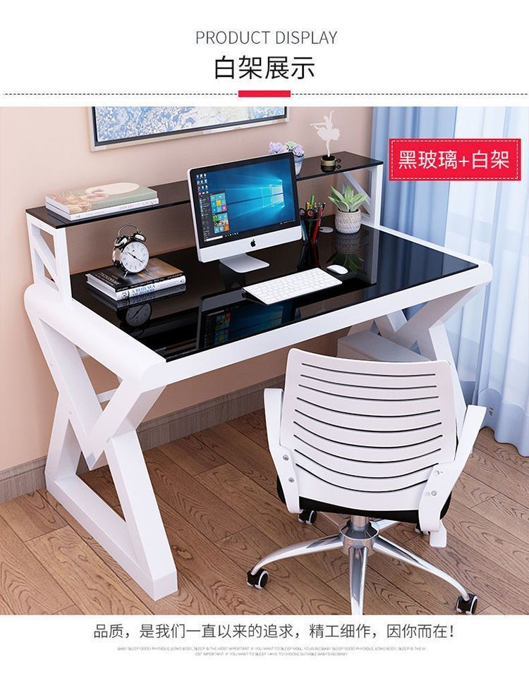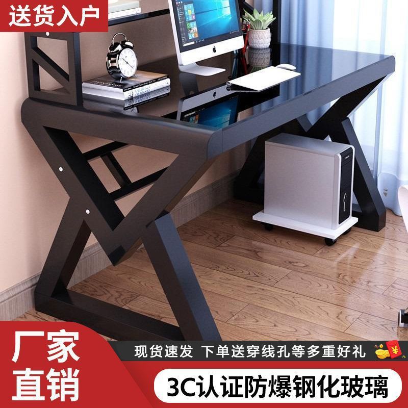 데스크탑 컴퓨터 책상 책장 간단한 홈 침실 책상 학생 강화 유리 책상 학습 테이블