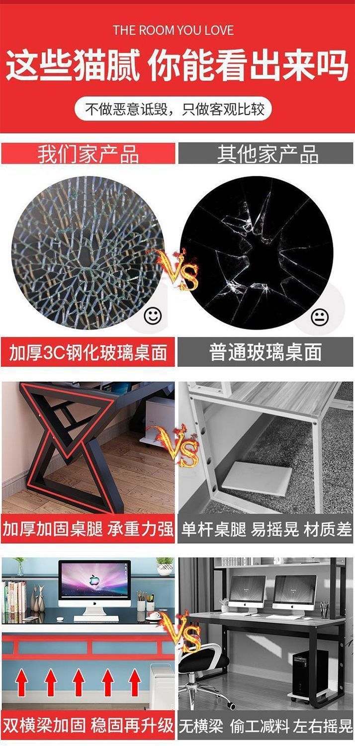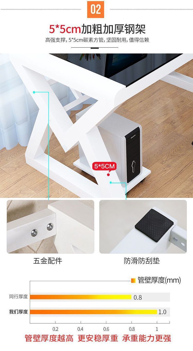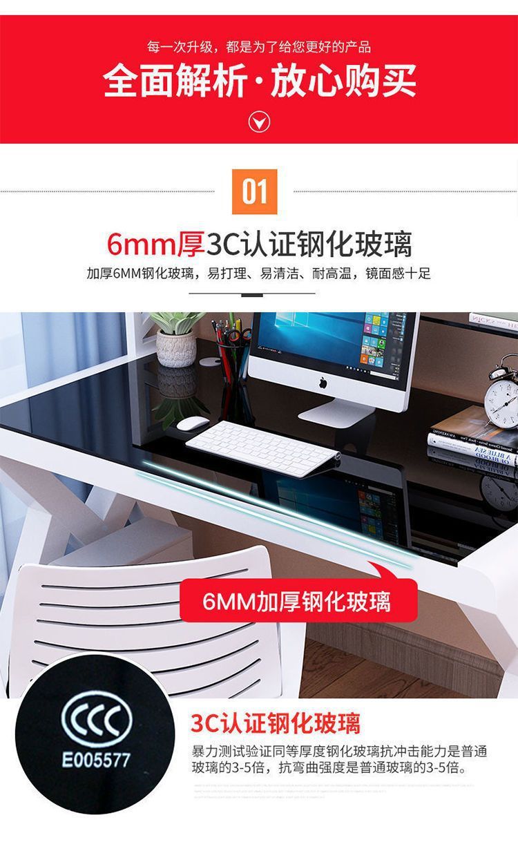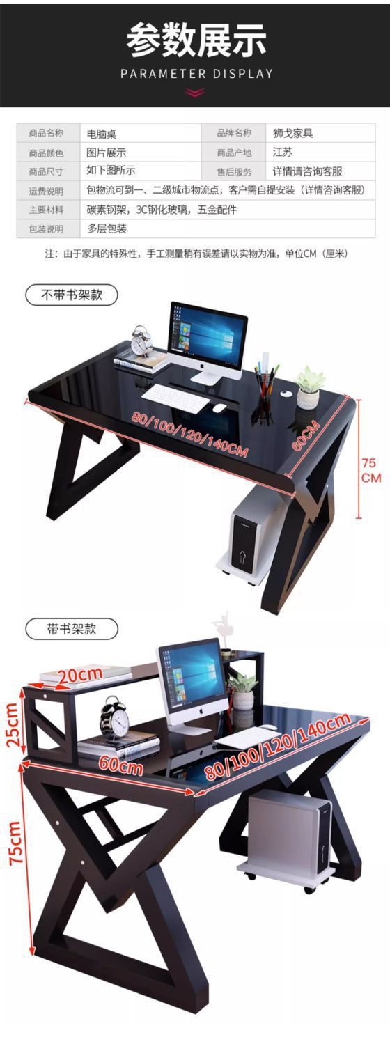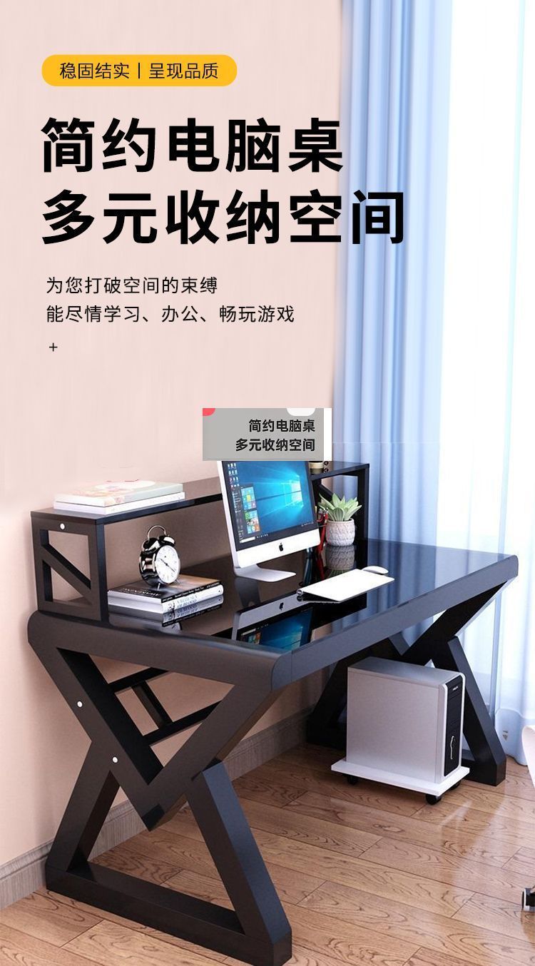 데스크탑 컴퓨터 책상 책장 간단한 홈 침실 책상 학생 강화 유리 책상 학습 테이블
