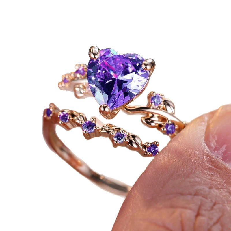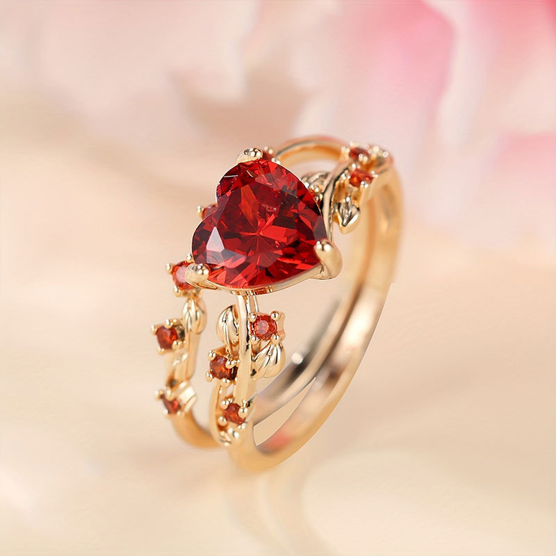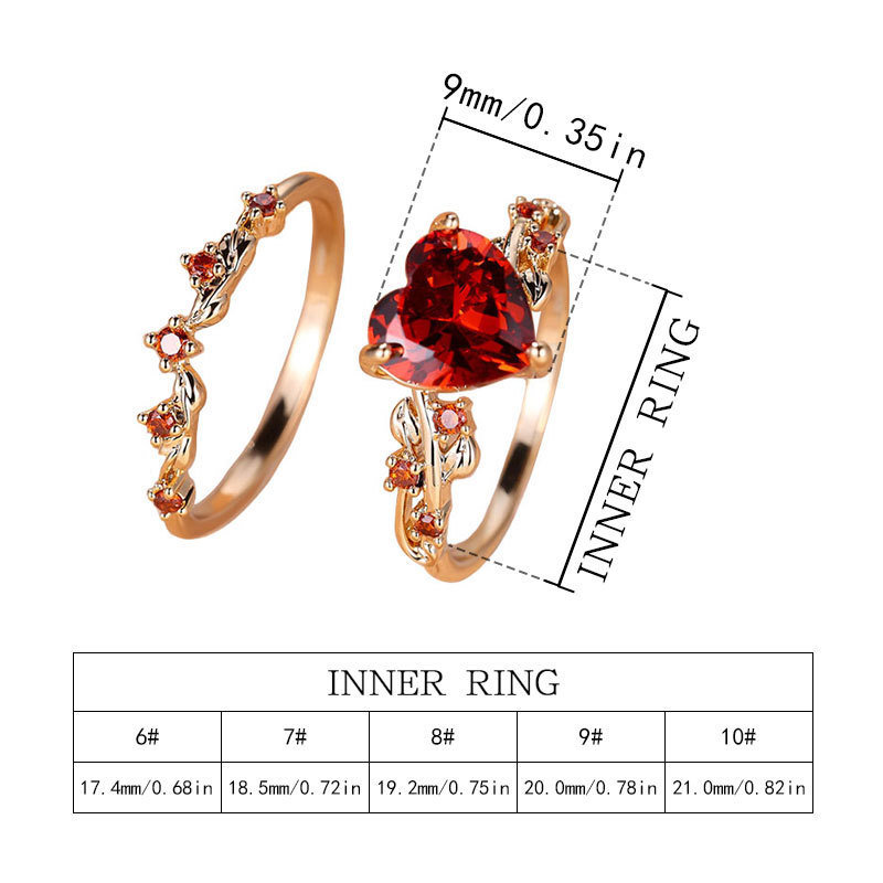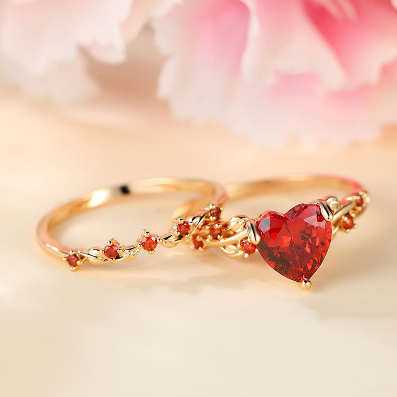 Ouni 국경 간 핫 판매 shein 새로운 상감 지르콘 다이아몬드 하트 모양의 반지 세트 패션 복고풍 간단한 루비