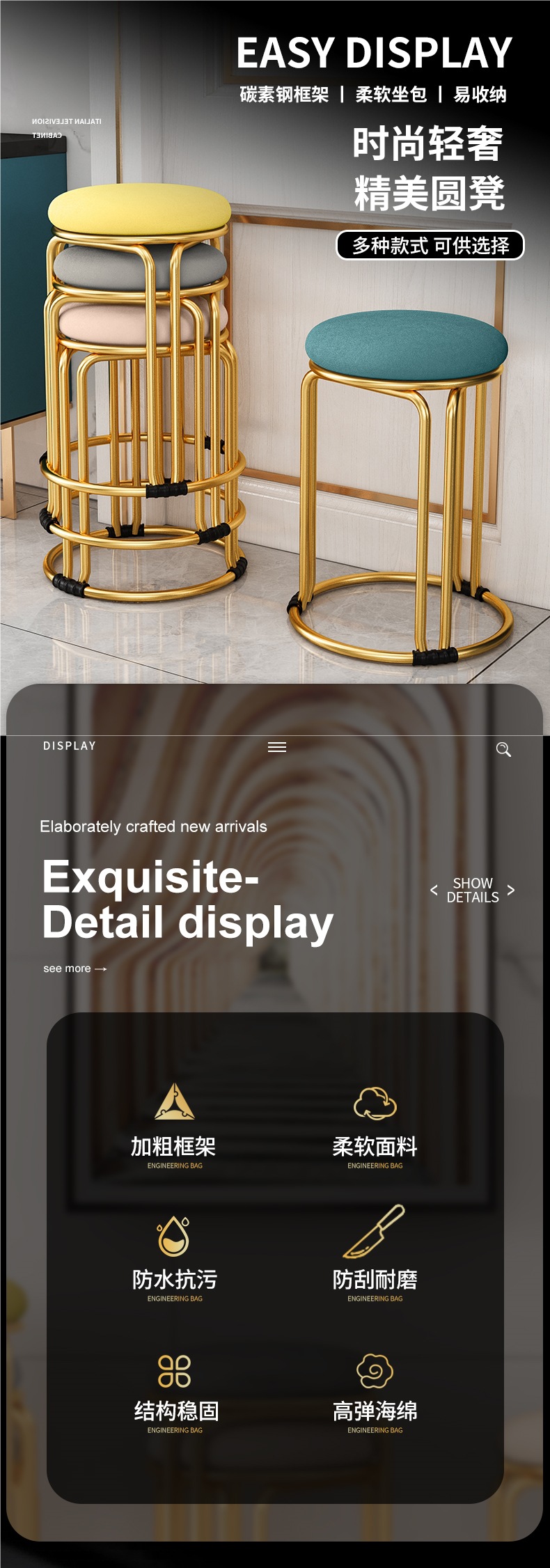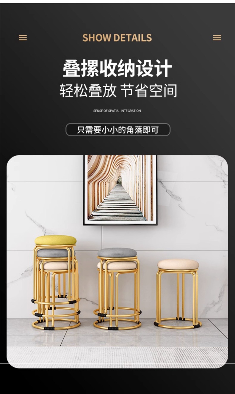 둥근 의자, 가정용 현대식 간단한 식탁, 높은 벤치, 플라스틱 쌓을 수 있는 의자, 가벼운 고급 식당 의자, 예비 작은 원형 의자