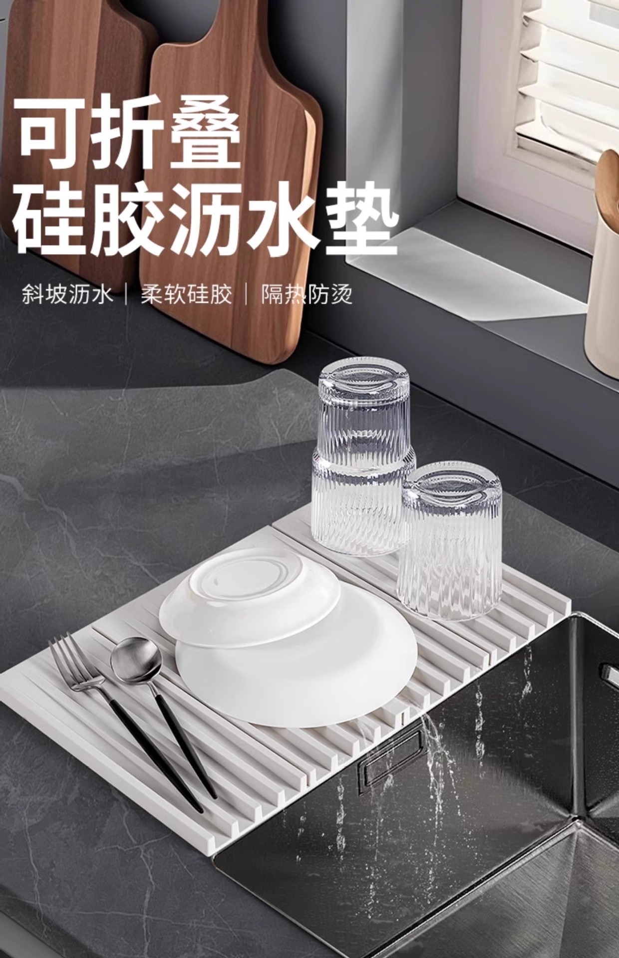 접이식 식기 배수 패드 실리콘 싱크 패드 식기 대형 경사 배수 패드 접시 건조 및 물 제어