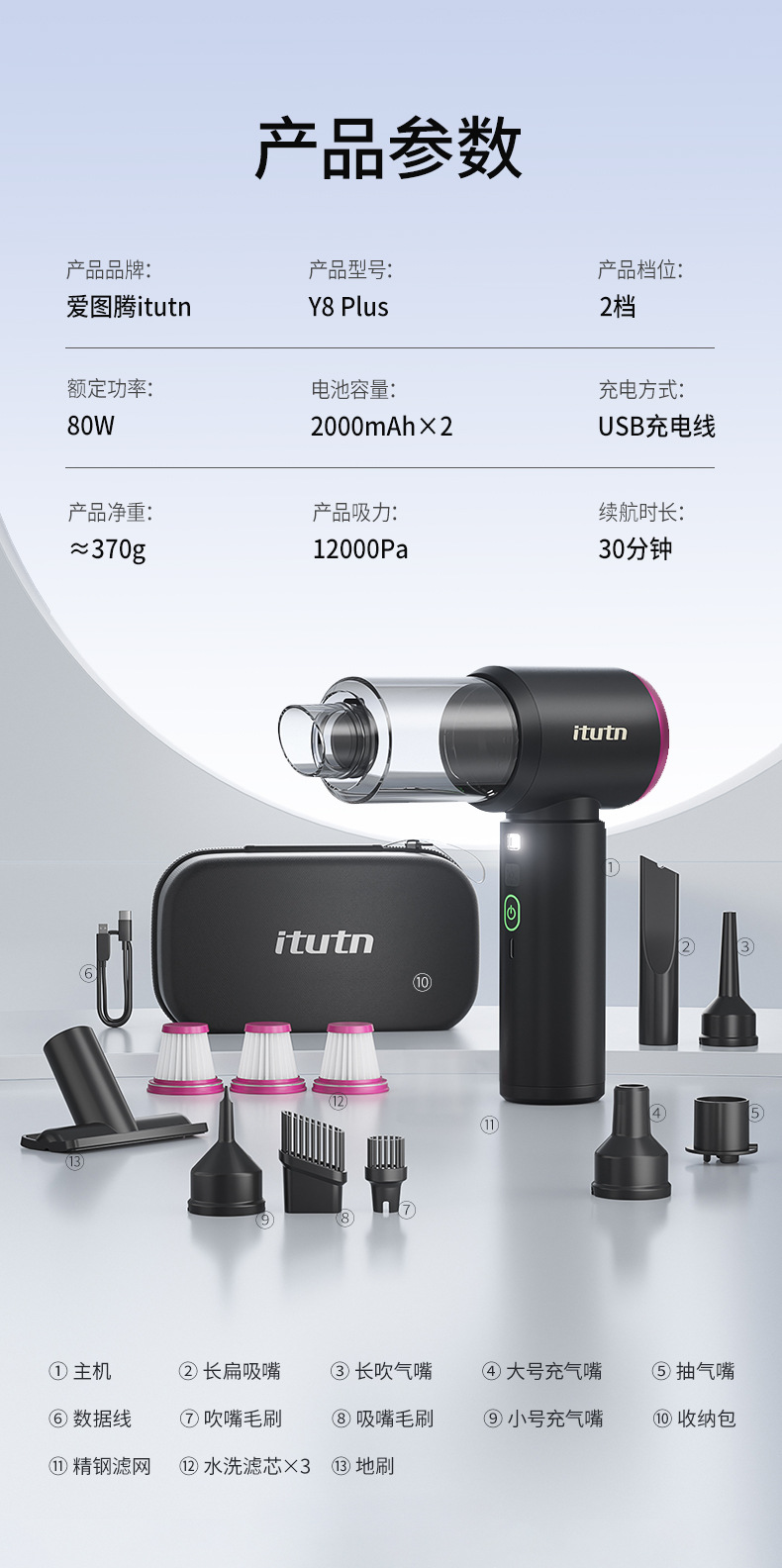 Itutn Aitotem 자동차 진공 청소기 자동차 초강력 흡입 휴대용 소형 자동차 내부 송풍 및 흡입 통합 기계
