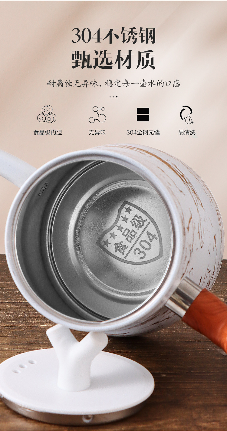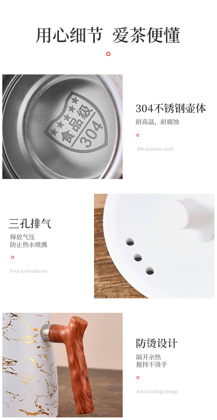 큰 입 플로팅 골드 화이트(스테인리스 스틸 커버와 나뭇결 손잡이)