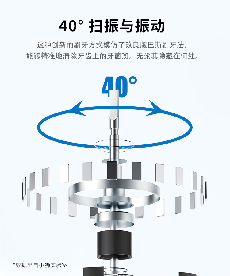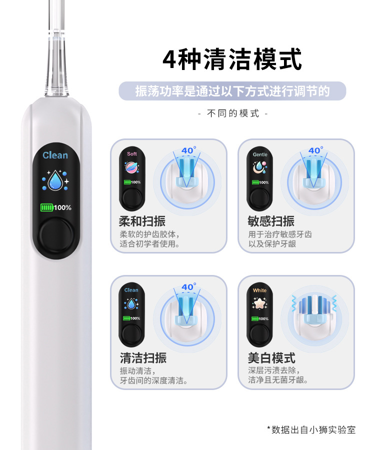 4.4个工作模式,每个工作模式时长2分钟,每30秒停顿0.3秒(3个扫振模式+1个声波模式)
