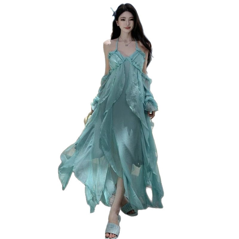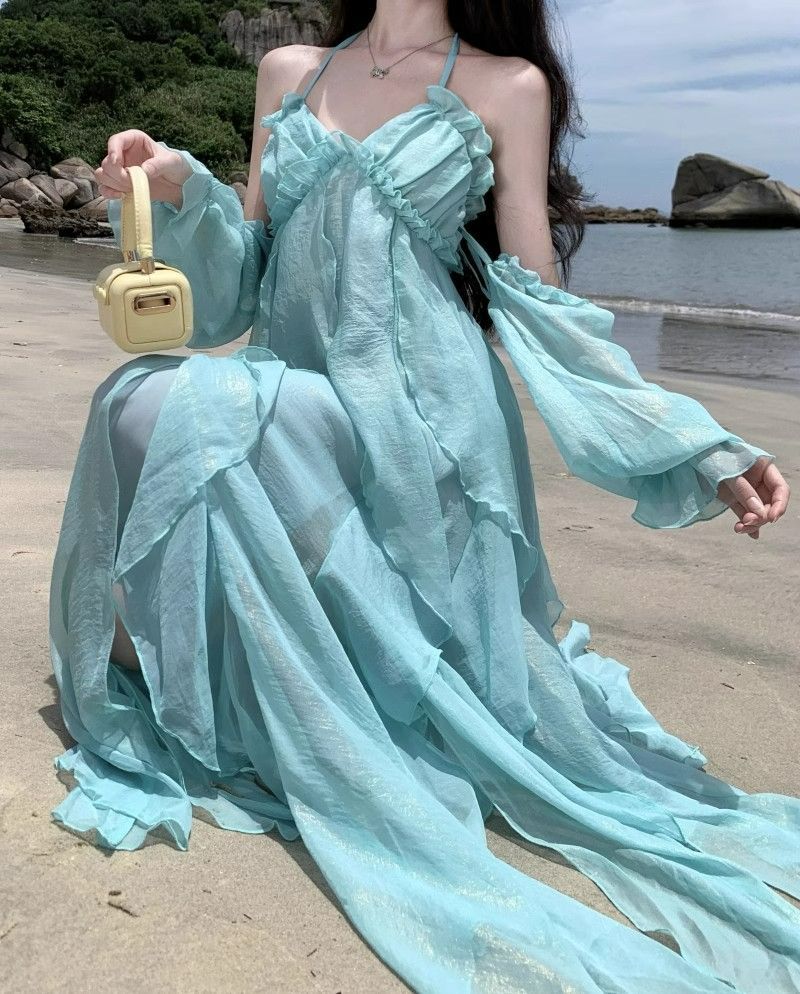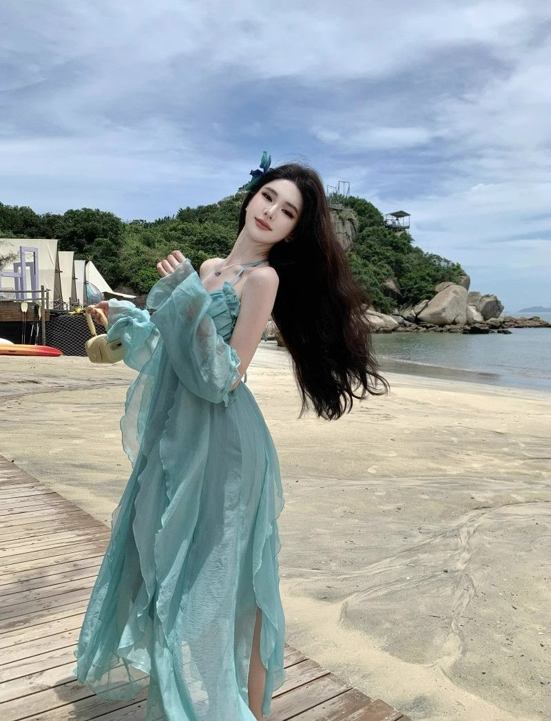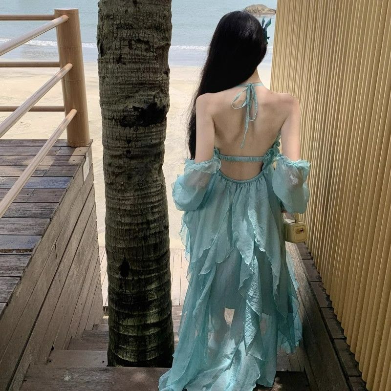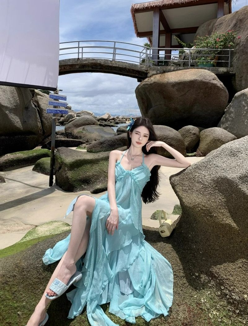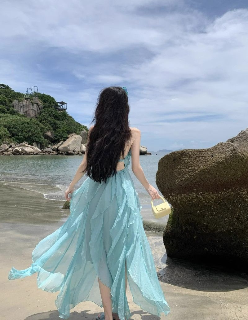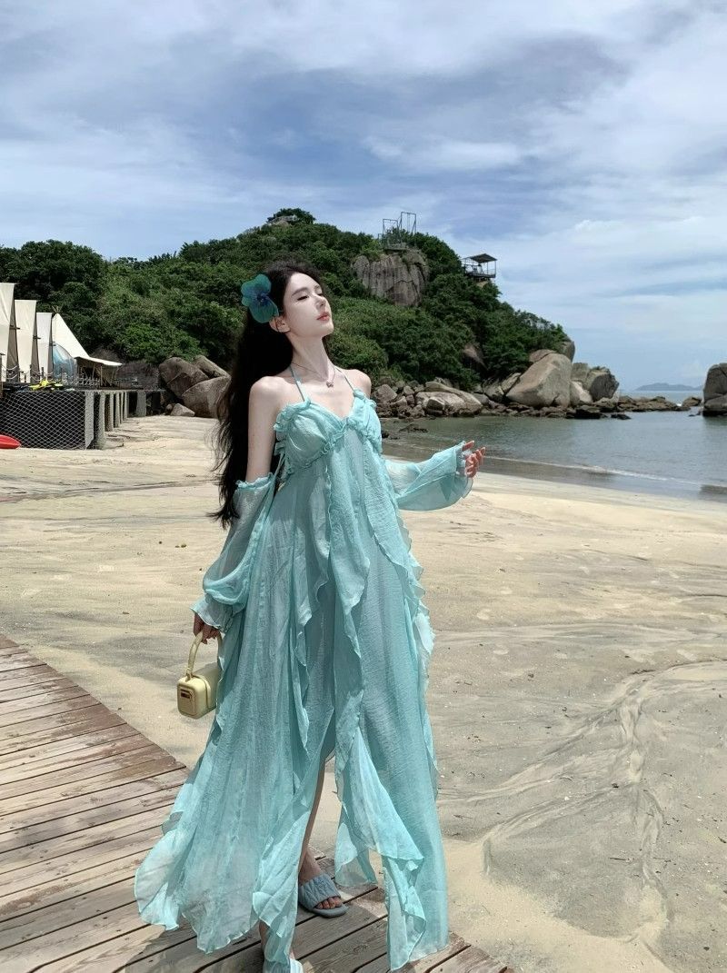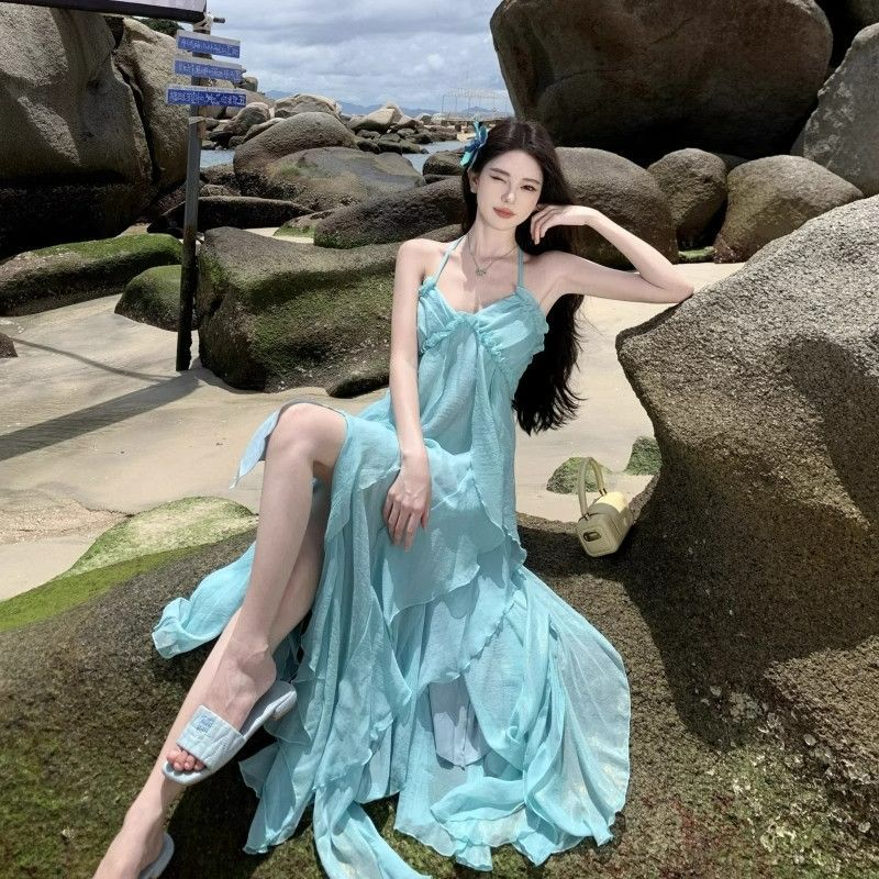2026년 여름 휴가 스타일의 스트랩 드레스, 사진 촬영에 좋은 요정같은 해변 드레스, 여행 사진에 잘 어울리는 드레스