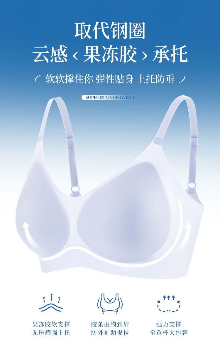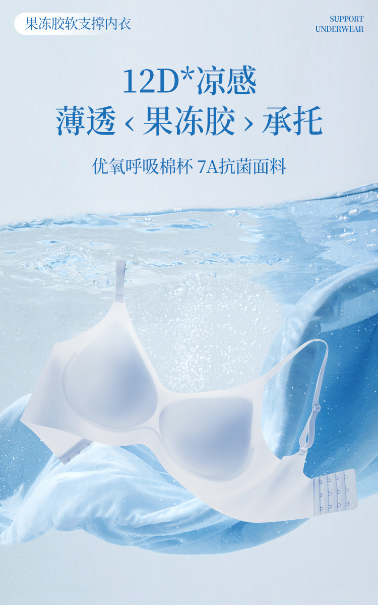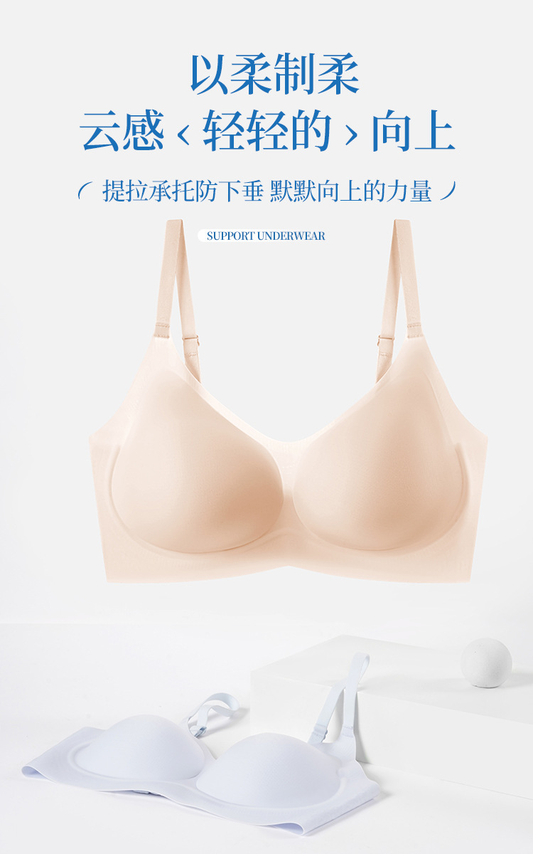 7A 항균 컵 네이드 프린트 초박형 시원한 느낌 고탄성 보이지 않는 트레이스리스 속옷 푸쉬업 처짐 방지 소프트 서포트 브라