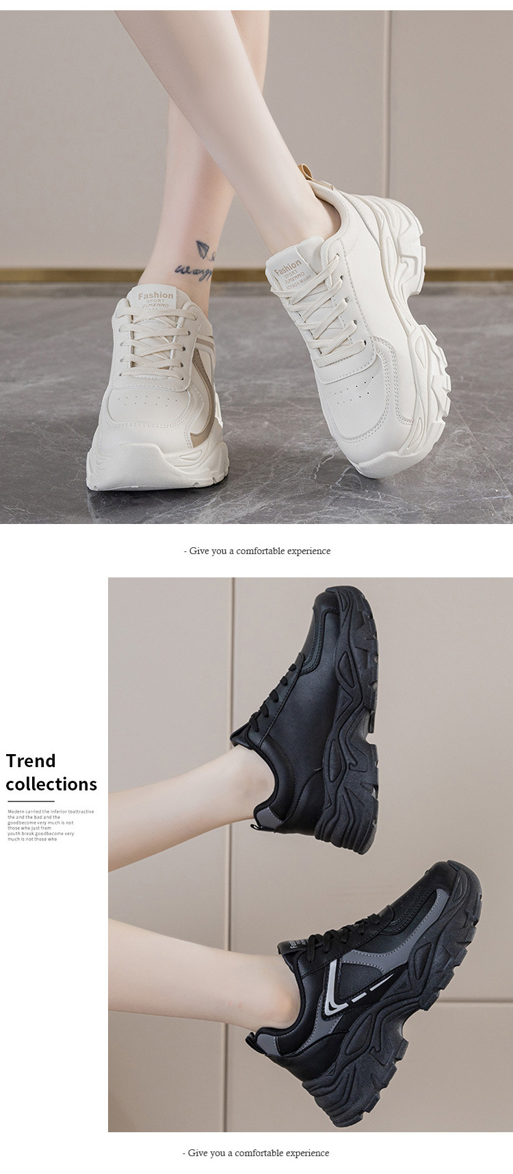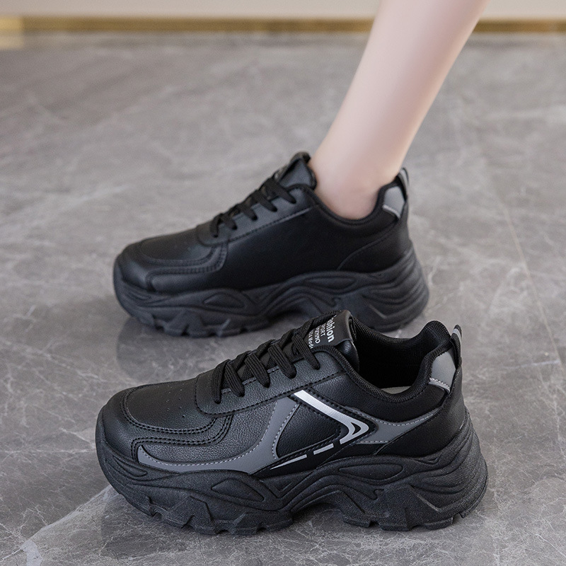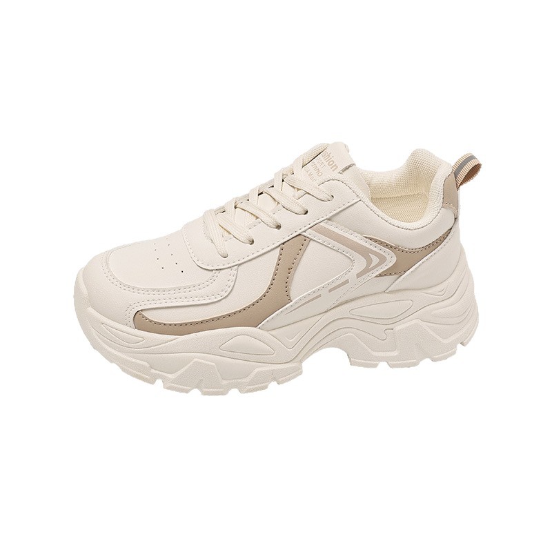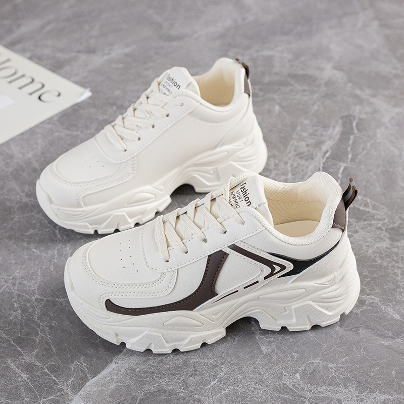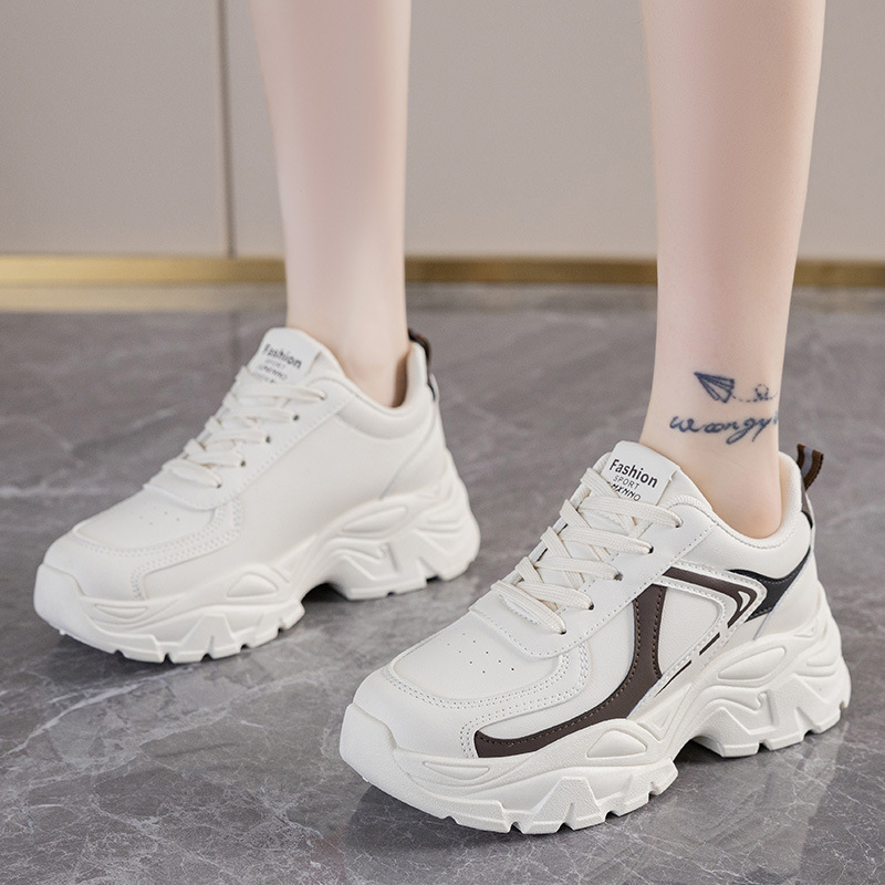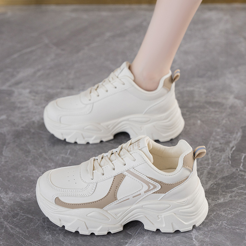 여성을위한 두꺼운 밑창 아빠 신발 2025 가을 새로운 통기성 캐주얼 흰색 신발 여성을위한 한국 스타일 패션 학생 스포츠 신발