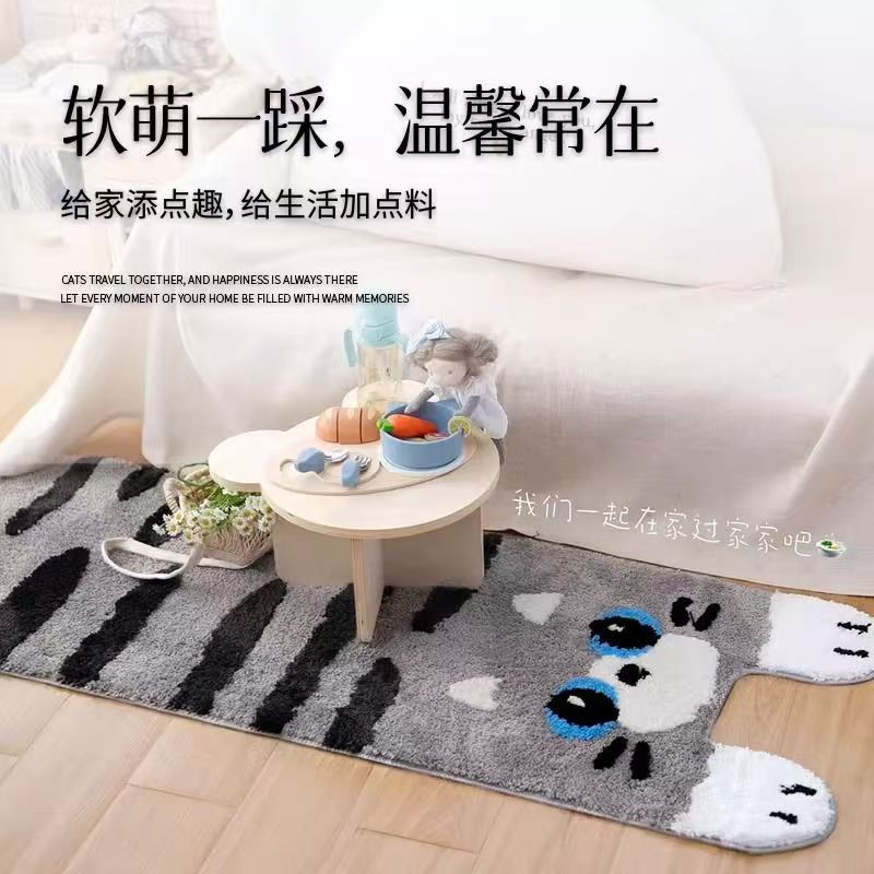 귀여운 스타일 고양이 모양의 플러시 침실 카펫 거실 소파 담요 어린이 담요 방 미끄럼 방지 침대 옆 담요