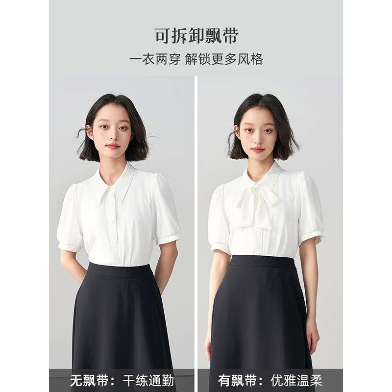 Miss Bird 블루 보우 반팔 셔츠 여성 교사 착용 쉬폰 탑 인터뷰 공식적인 전문 셔츠