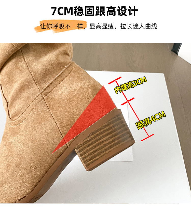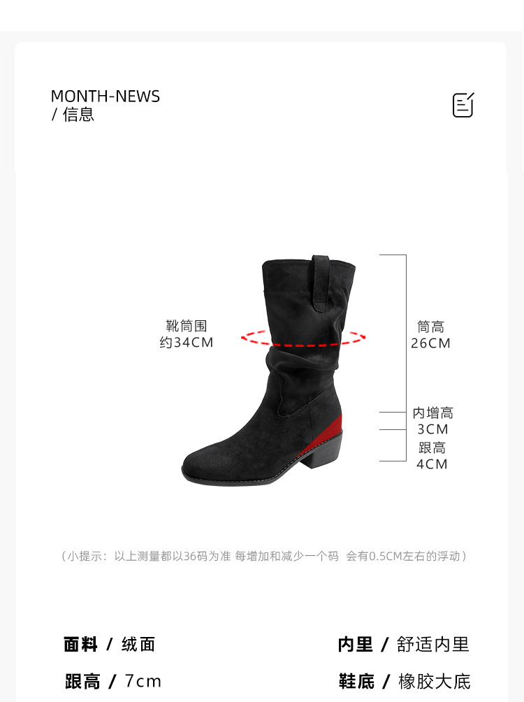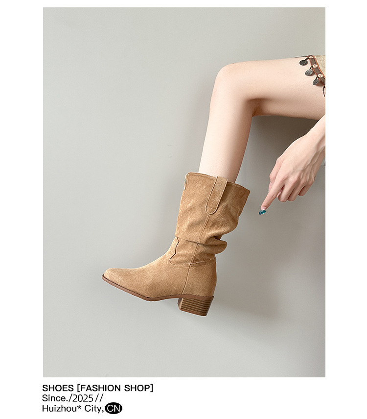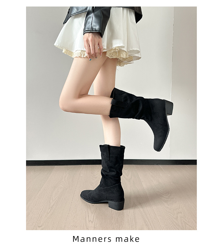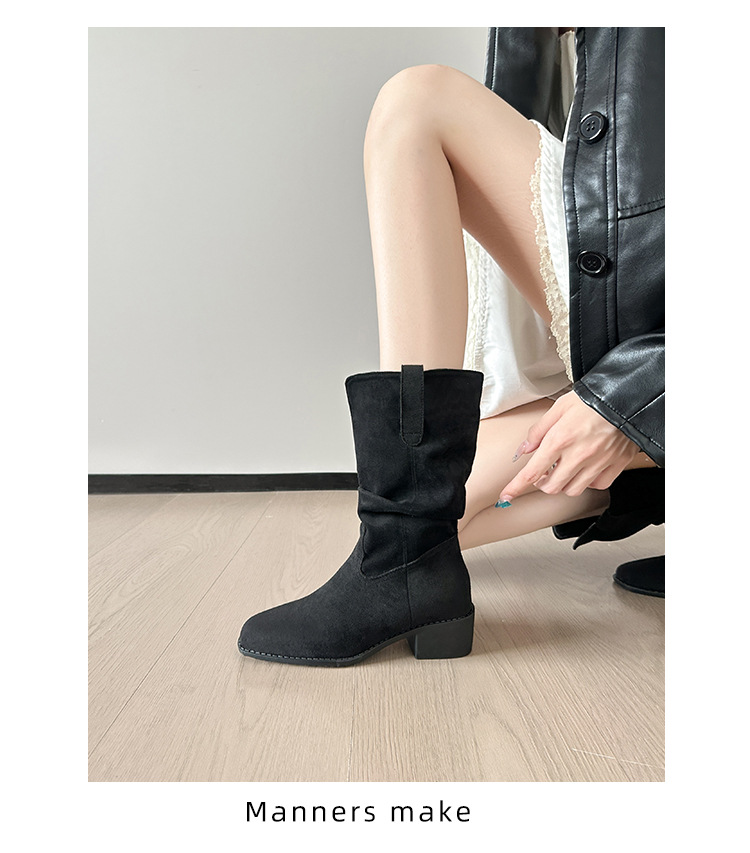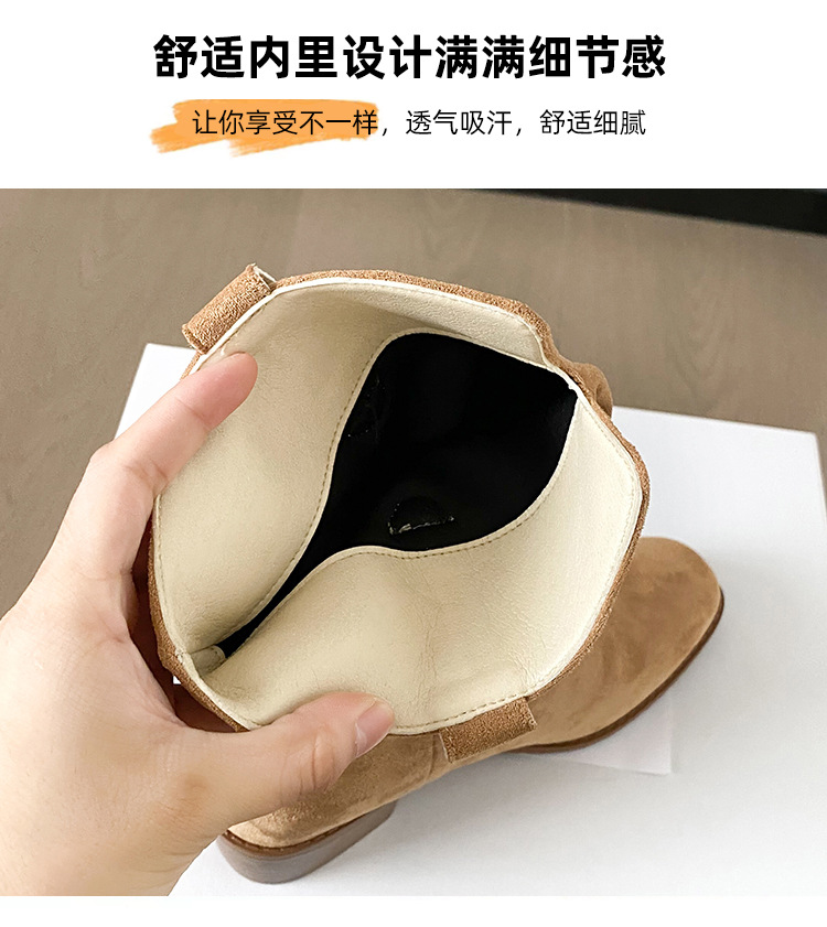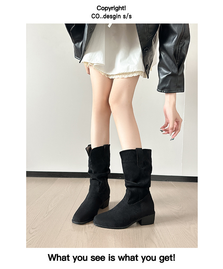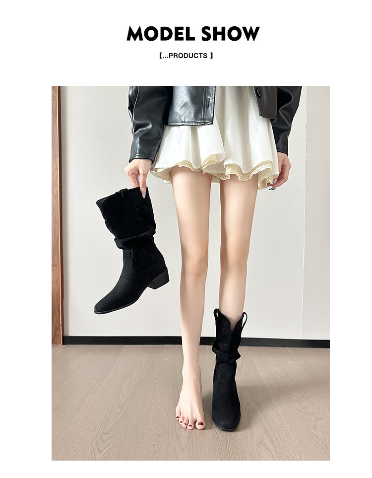 237-12 새로운 스타일의 스웨이드 스퀘어 토 미드힐 숏부츠, 미드카프부츠, 하이힐 스택부츠, 여성용 웨스턴 카우보이부츠