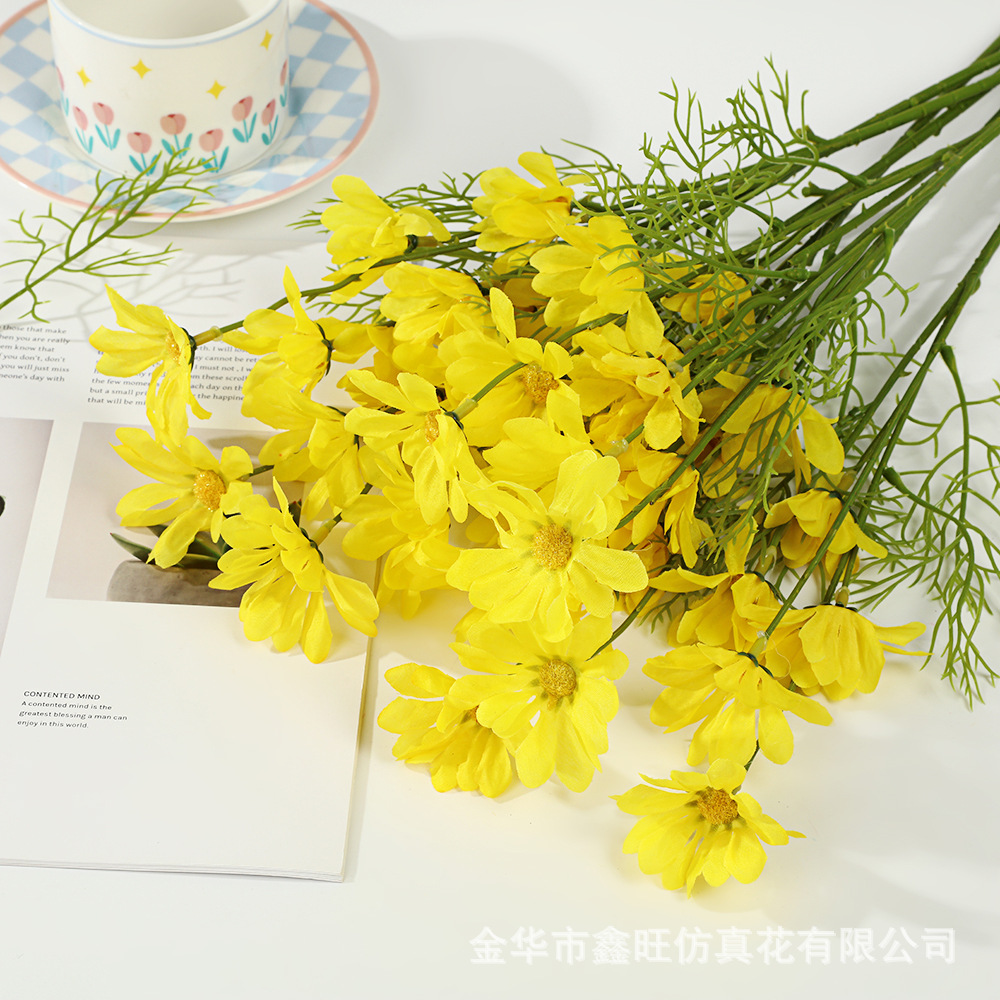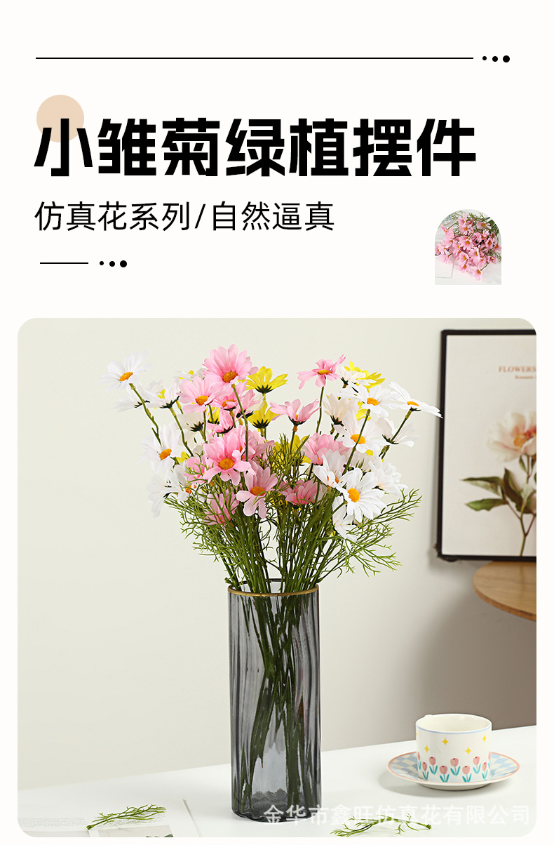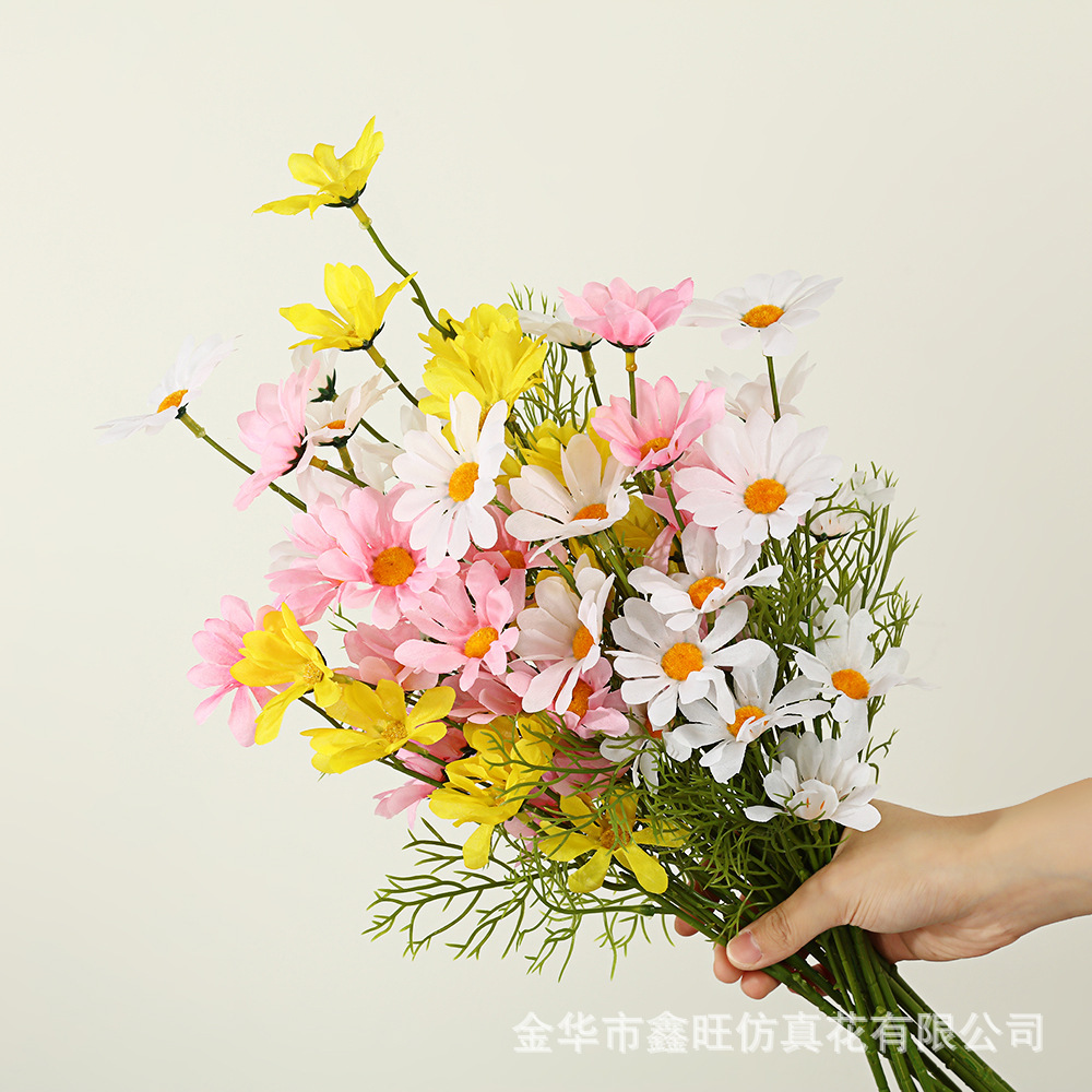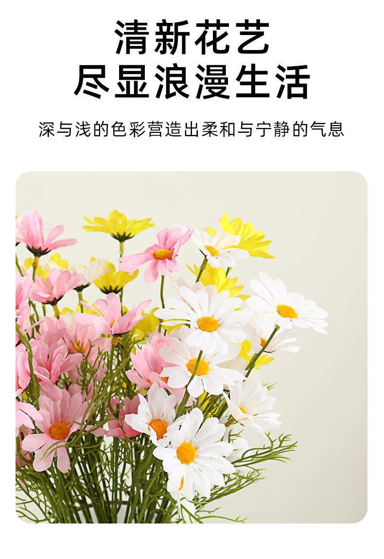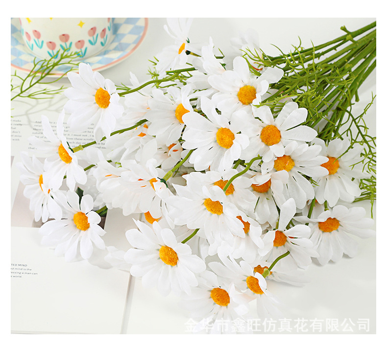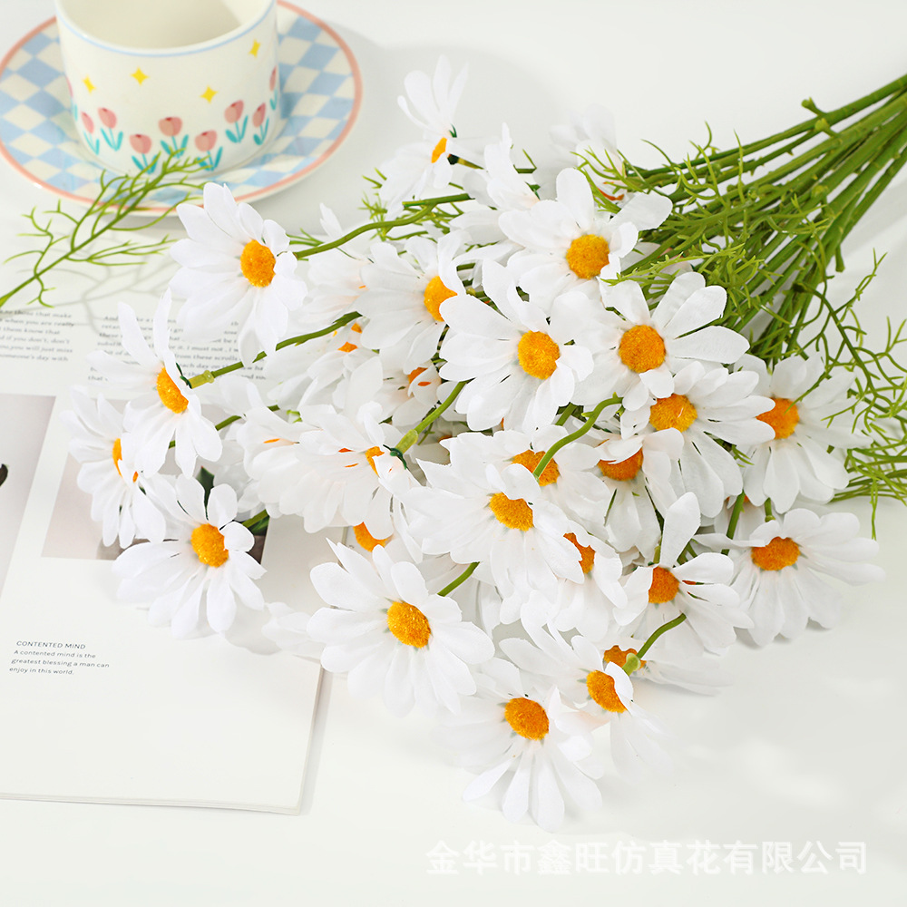 시뮬레이션 데이지 홈 거실 데스크탑 작은 신선한 장식 장식품 실크 카모마일 가짜 꽃 꽃 사진 소품
