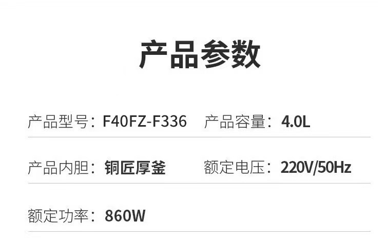 Joyoung F40FZ-F336 밥솥 4L 가정용 예약 밥솥 구리 두꺼운 냄비 전기 밥솥 수프