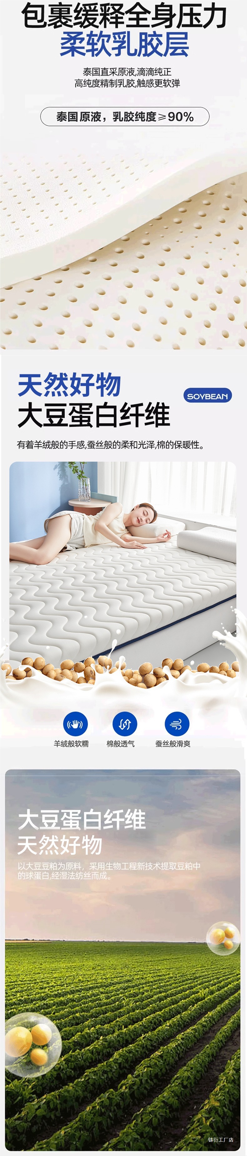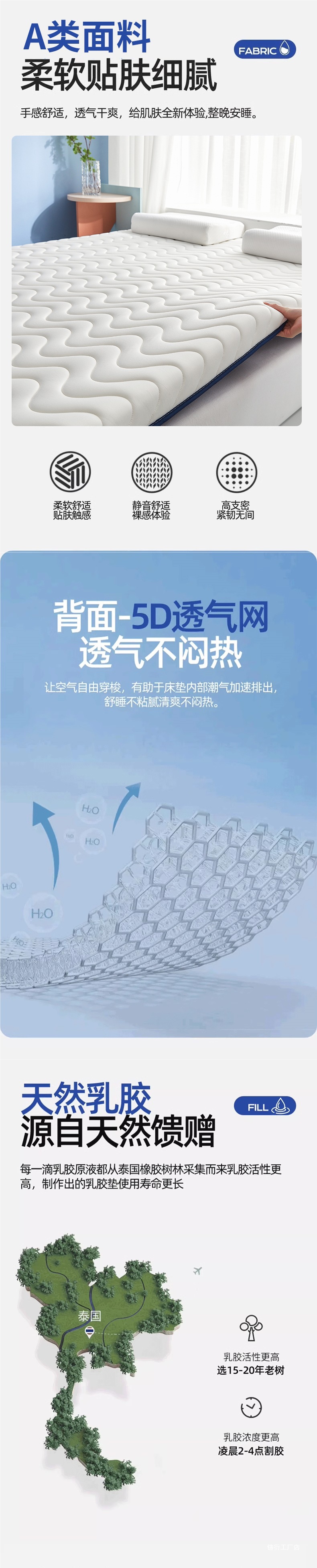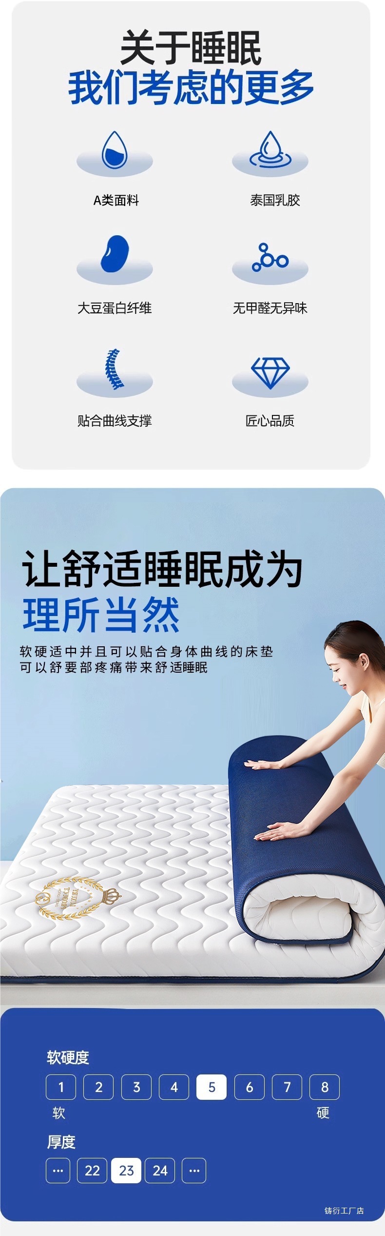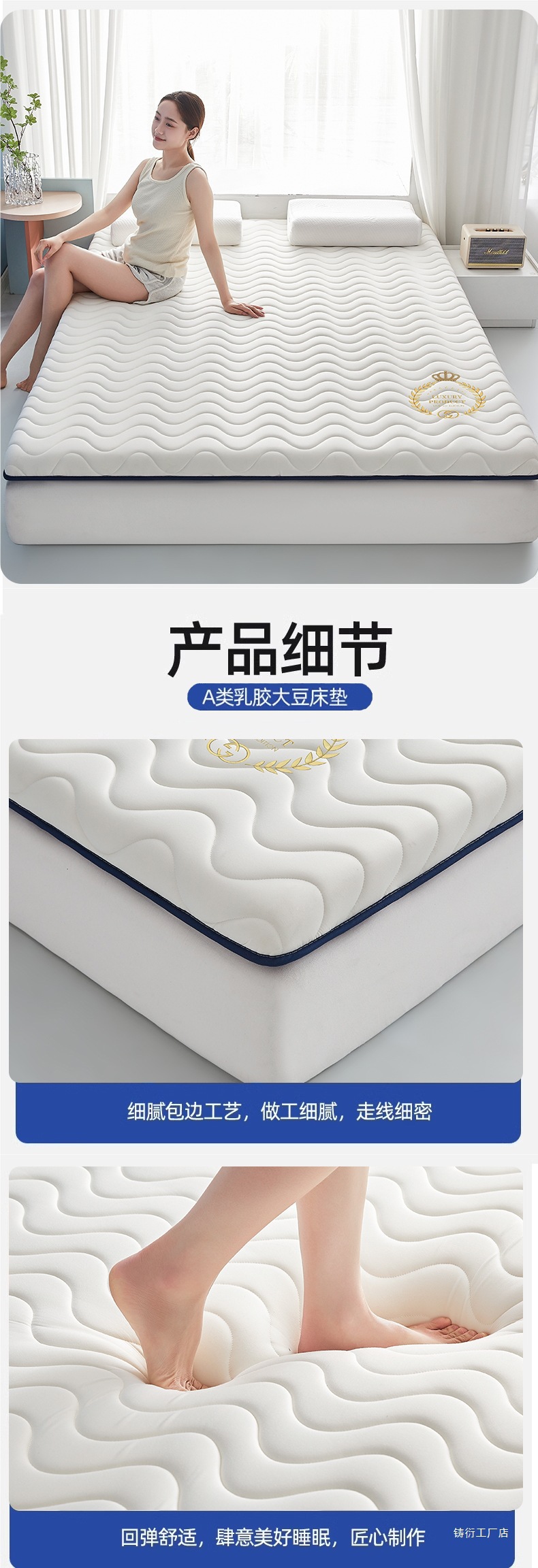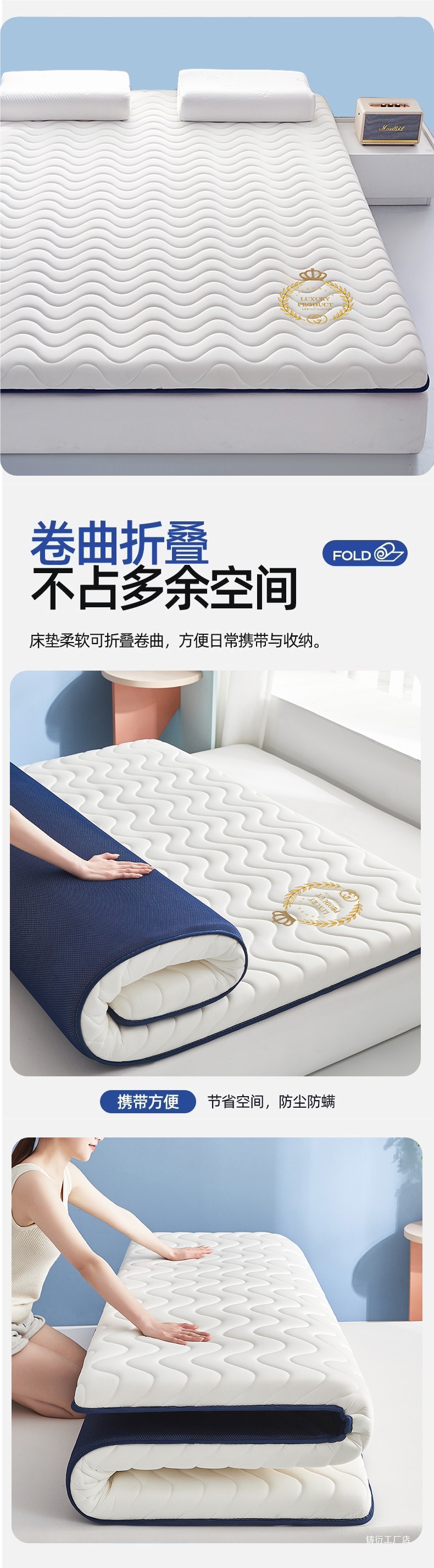 [기술적 깊은 수면 두꺼운 모델] Hui Zi Ge - 파란색 - 두께 약 9cm [카테고리 A 산모 및 유아 등급 라텍스 충전재 진드기 방지]