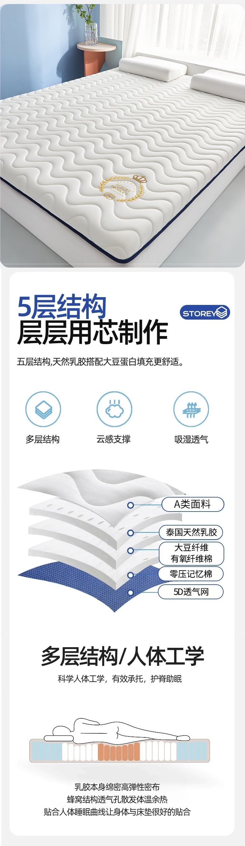 [기술적 깊은 잠 입체 두꺼운 모델] 더블 스펠 블루 ★ 두께 약 9cm [플래그십丨수면의 질이 좋지 않은 분들에게 적합]