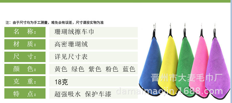 세차타월, 두툼한 흡수성 산호벨벳 걸레, 특수 핸드타월, 흡수성 작은 사각타월, 섬유 주방걸레