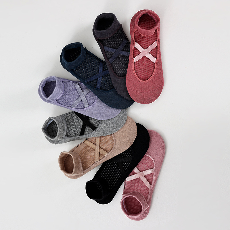 여성용 요가 스포츠 필라테스 양말, 통기성 땀 흡수 면 미끄럼 방지 홈 플로어 양말