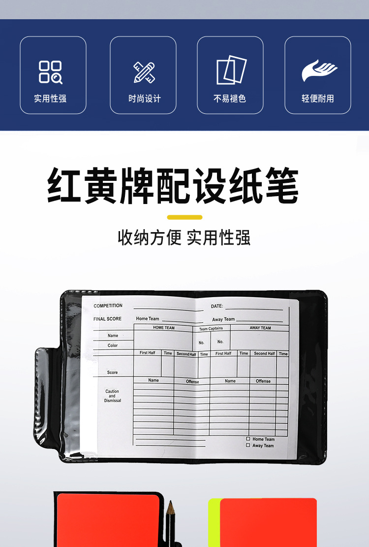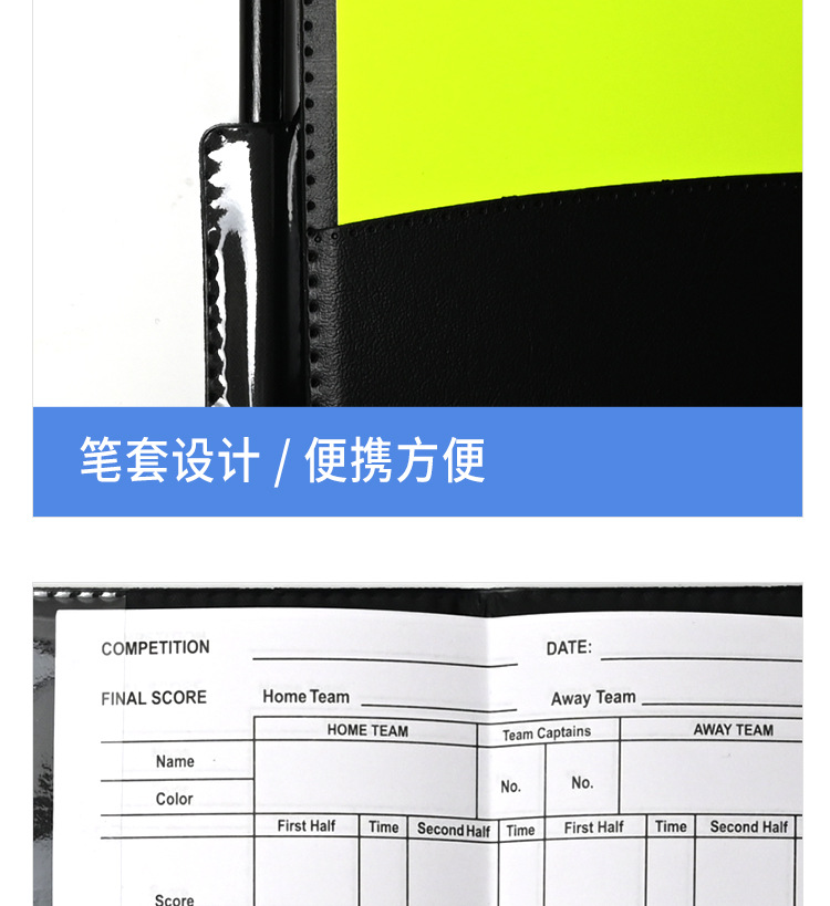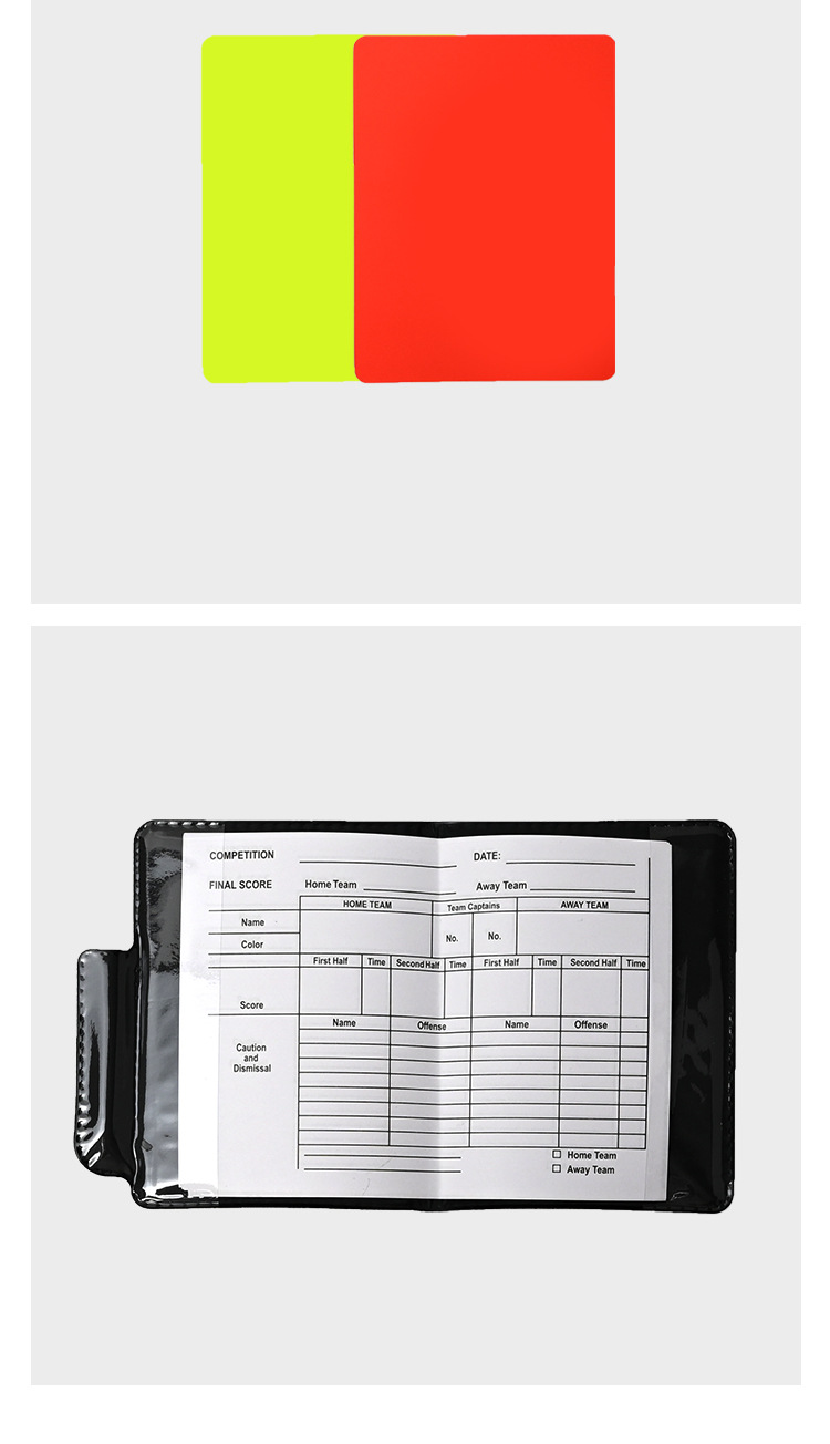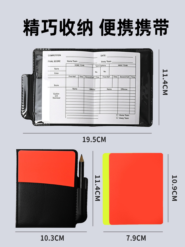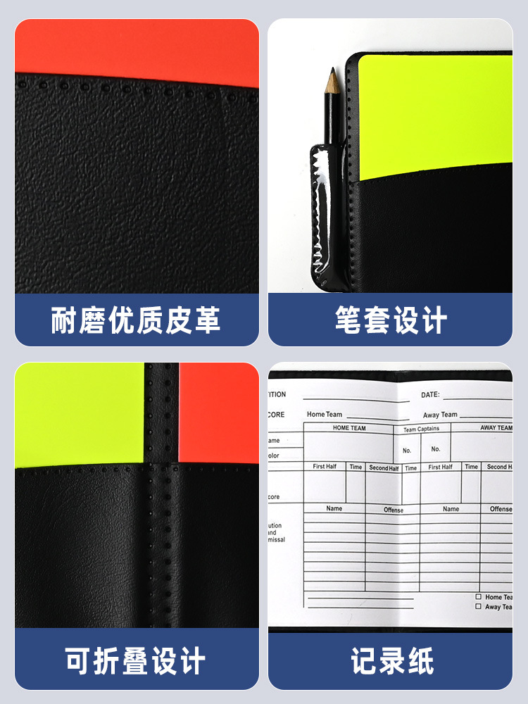 축구 경기용 특수 레드 및 옐로우 카드 기록부 레드 카드 옐로우 카드 심판 용품 가죽 케이스 연필 심판 기록 용지