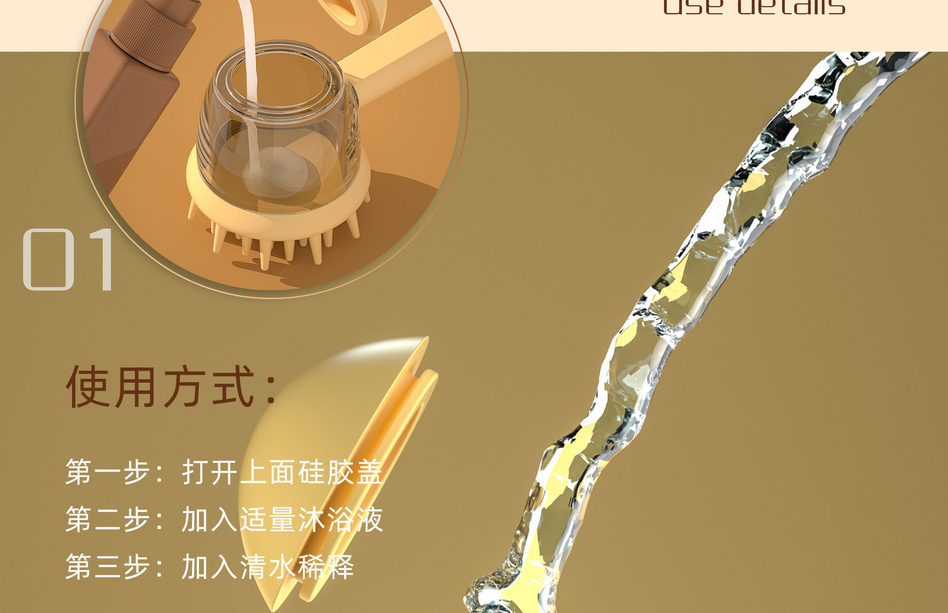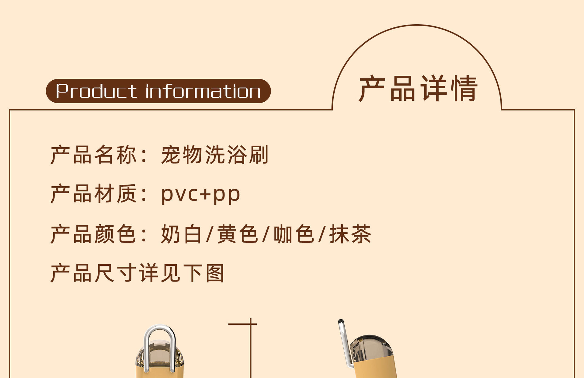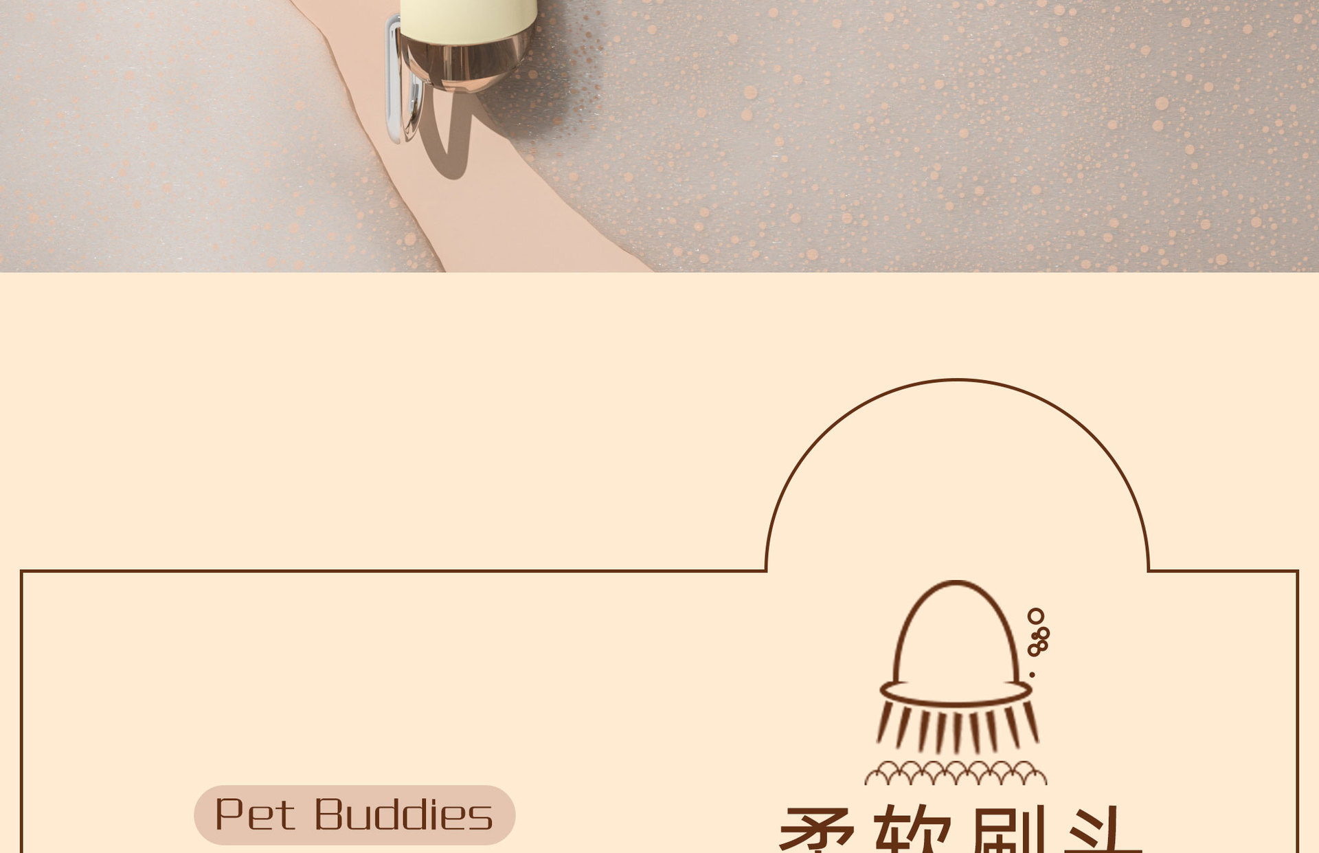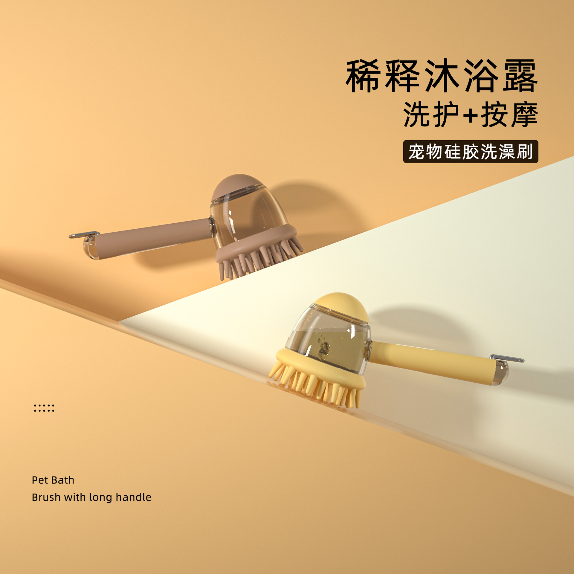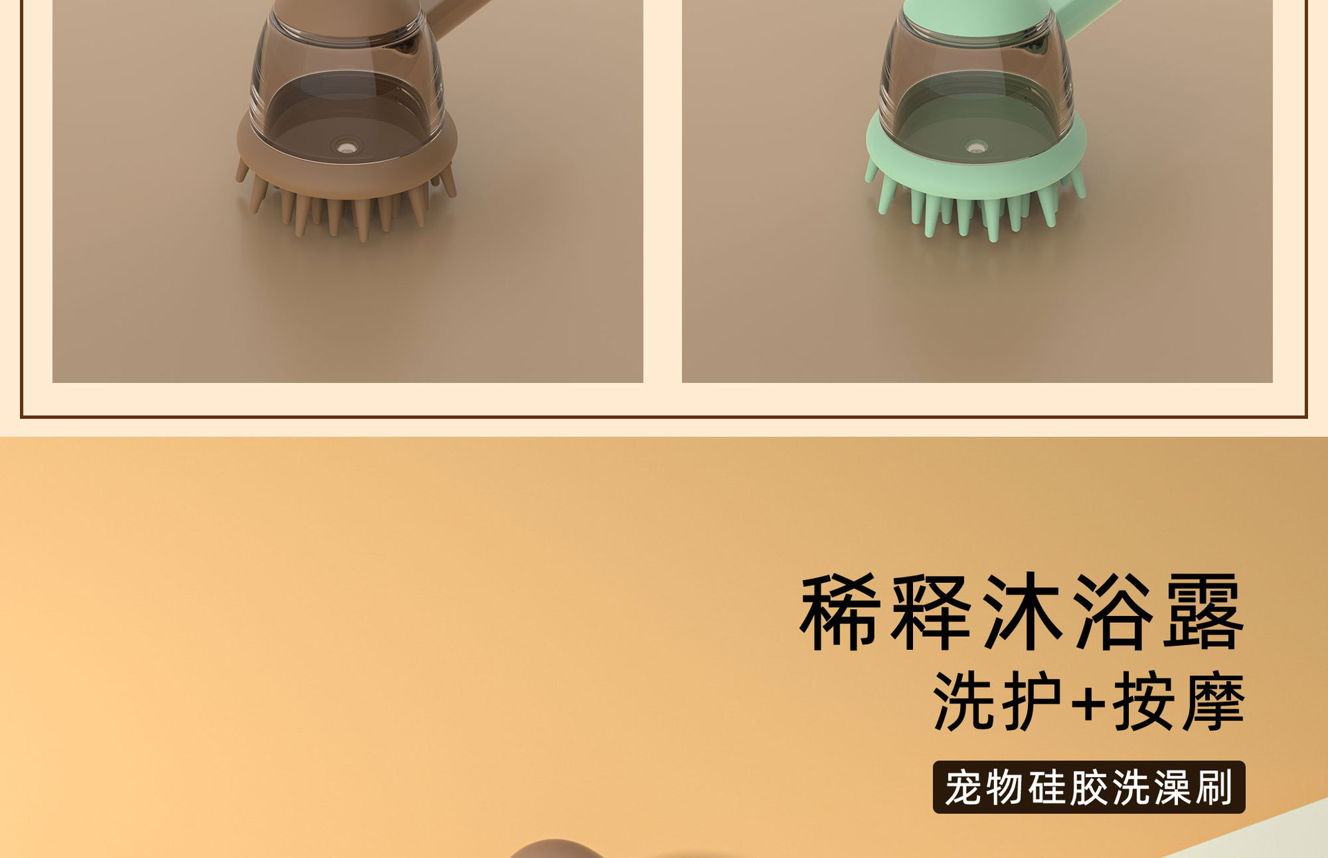 애완동물 목욕 브러쉬 [액체 추가 가능] - 브라운
