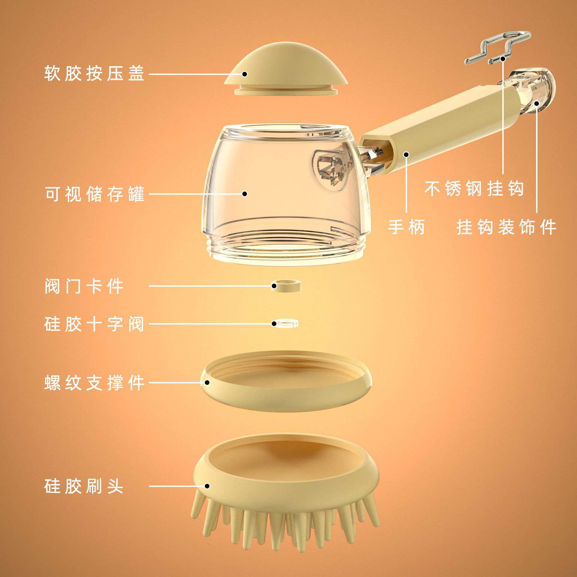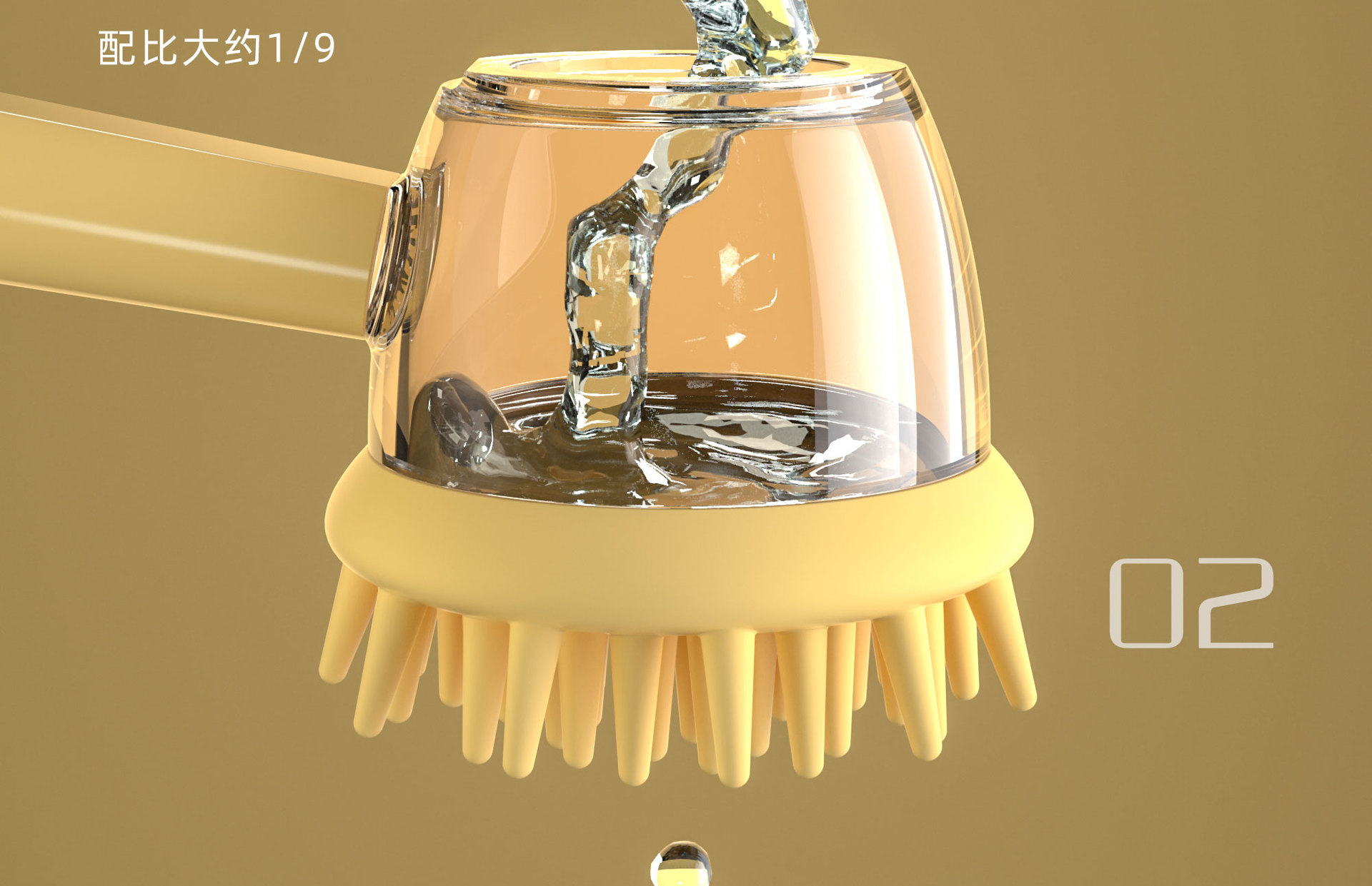 애완동물 목욕 브러쉬 [액체 추가 가능] - 노란색