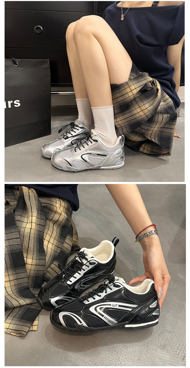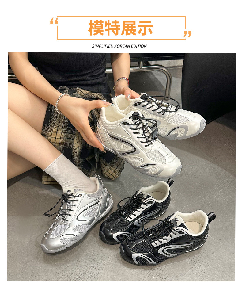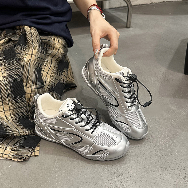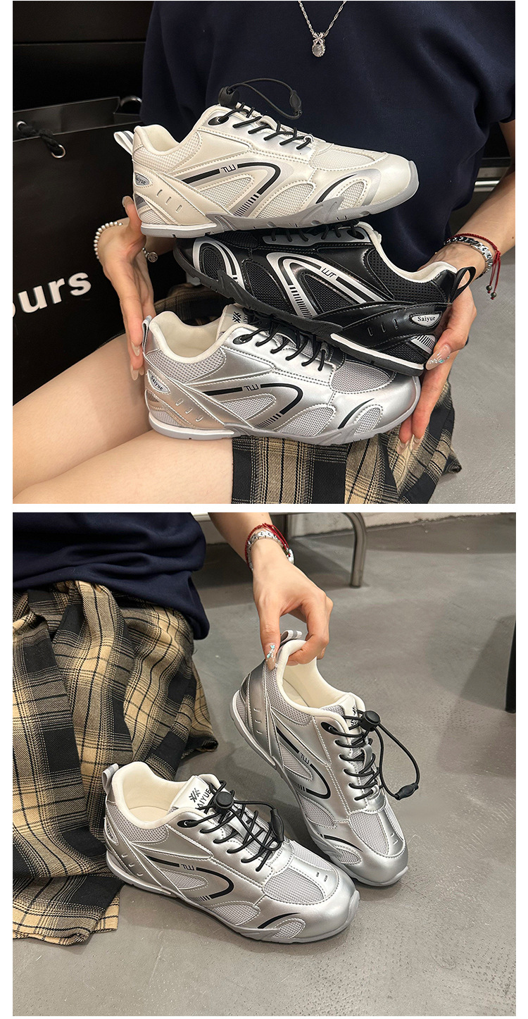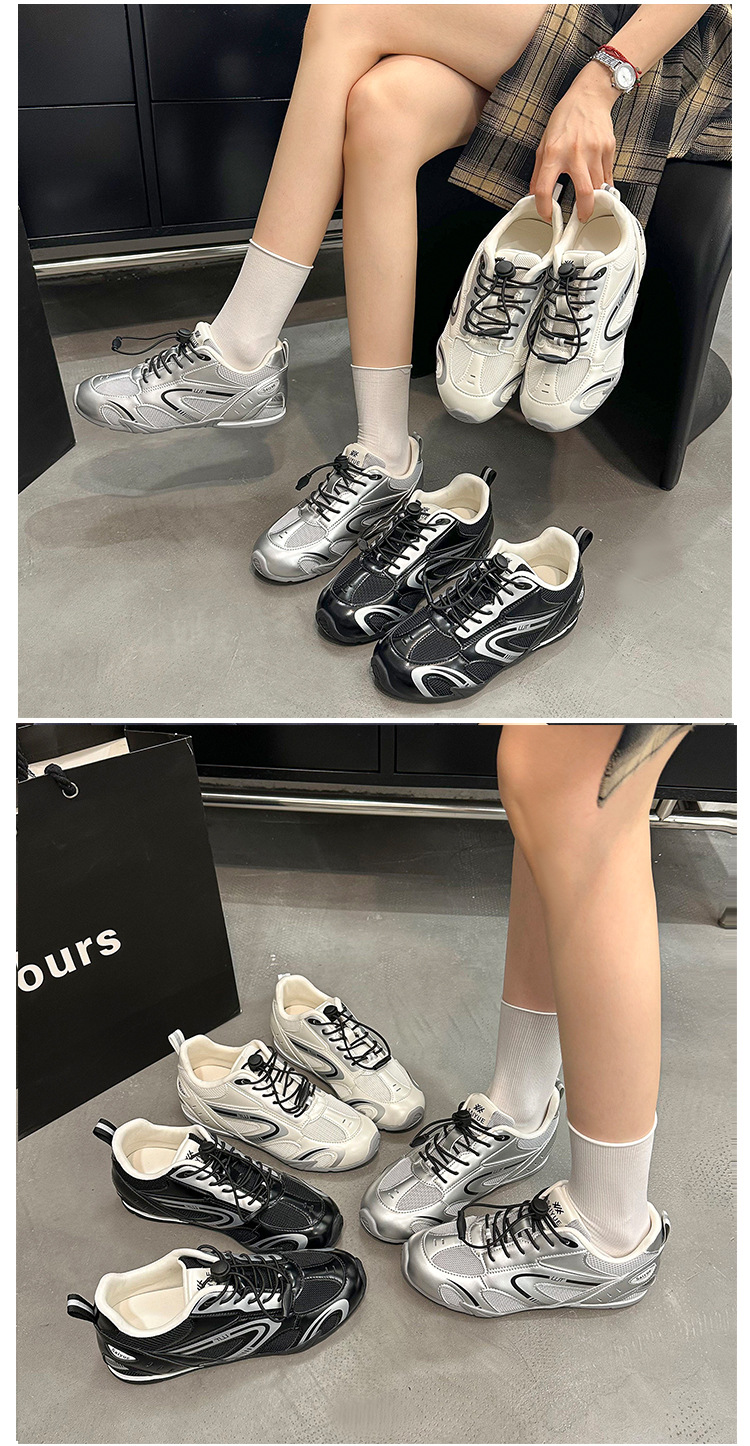 여성을위한 키가 큰 아빠 신발 2025 새로운 여름 메쉬 통기성 레이싱 신발 범프 스포츠 및 캐주얼 신발