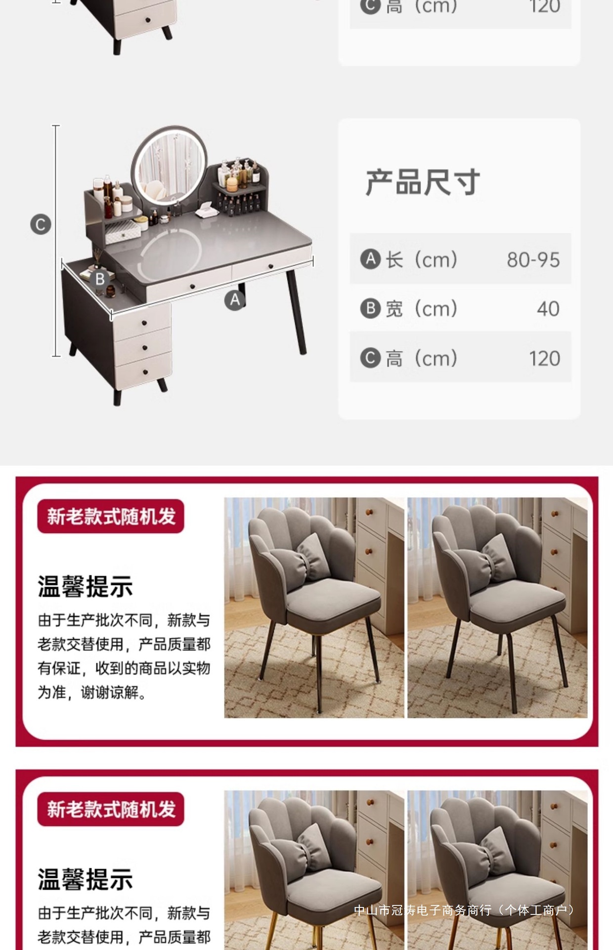[서랍5개+사이드수납장+LED 스마트거울+화장의자] 80-100cm 모란디 그레이
