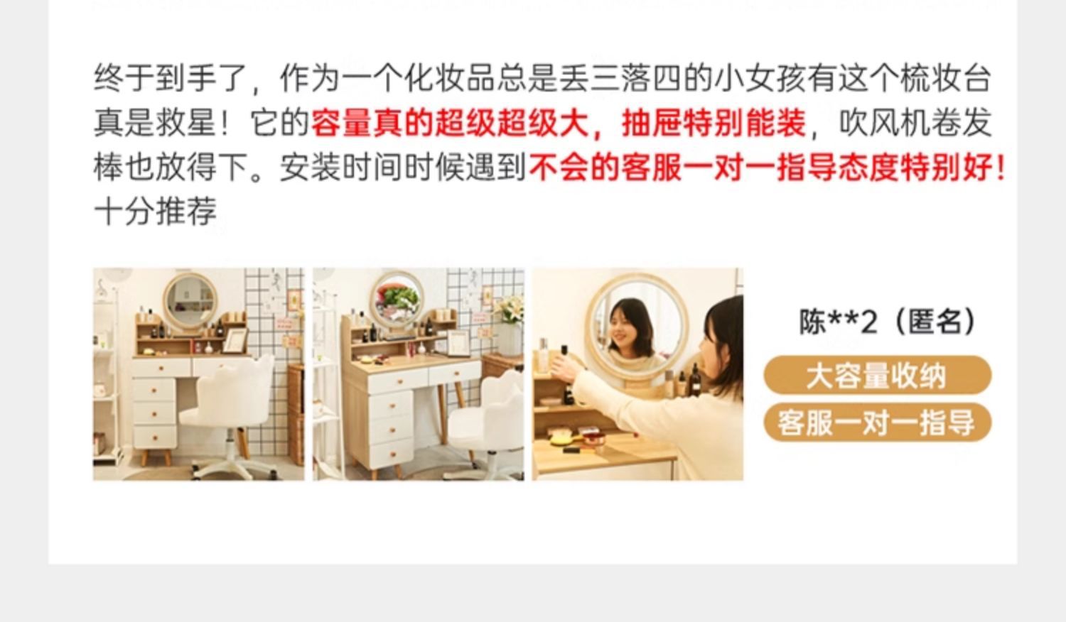 [도착 후 사진 업로드 80% 할인] [서랍 2개 + 꽃잎의자] 100cm 크림화이트 거울 미포함