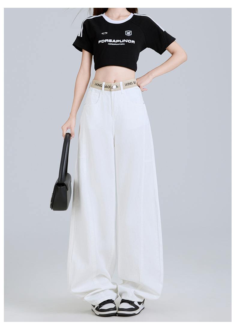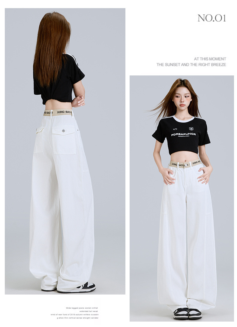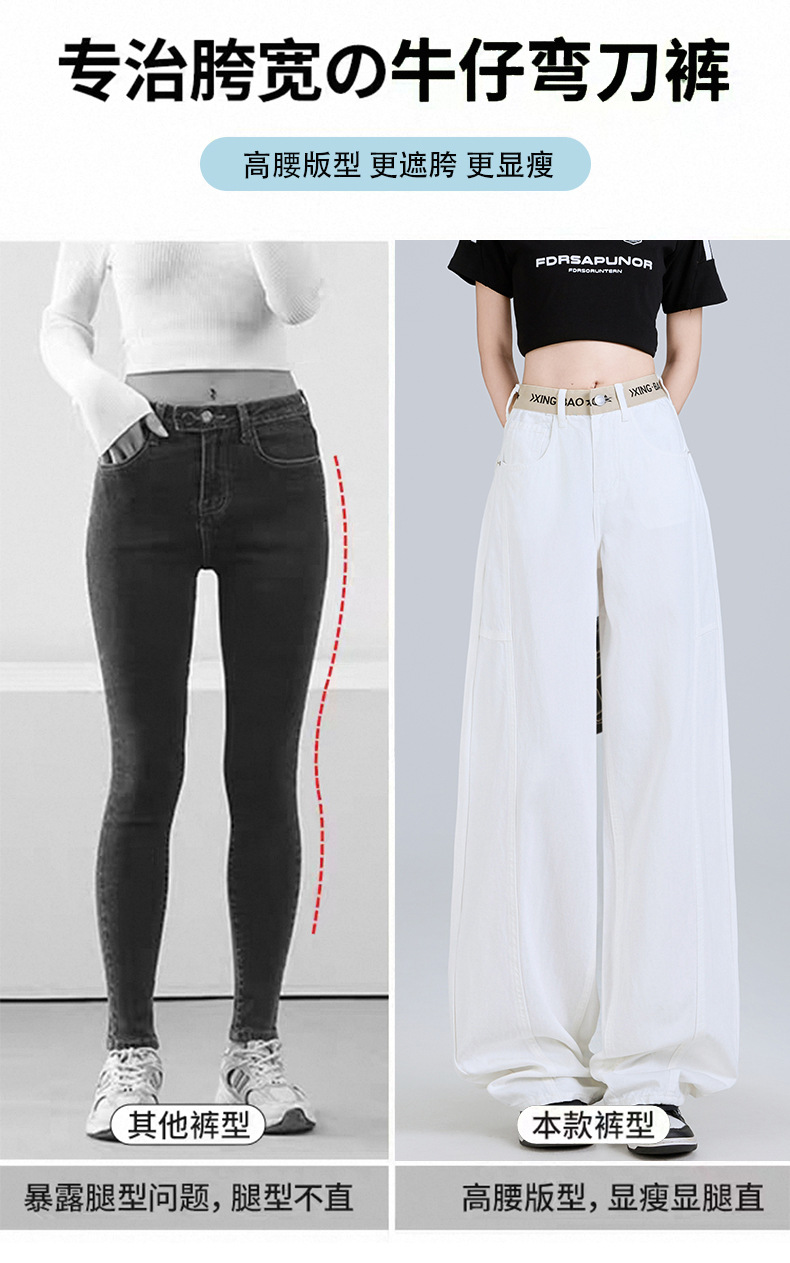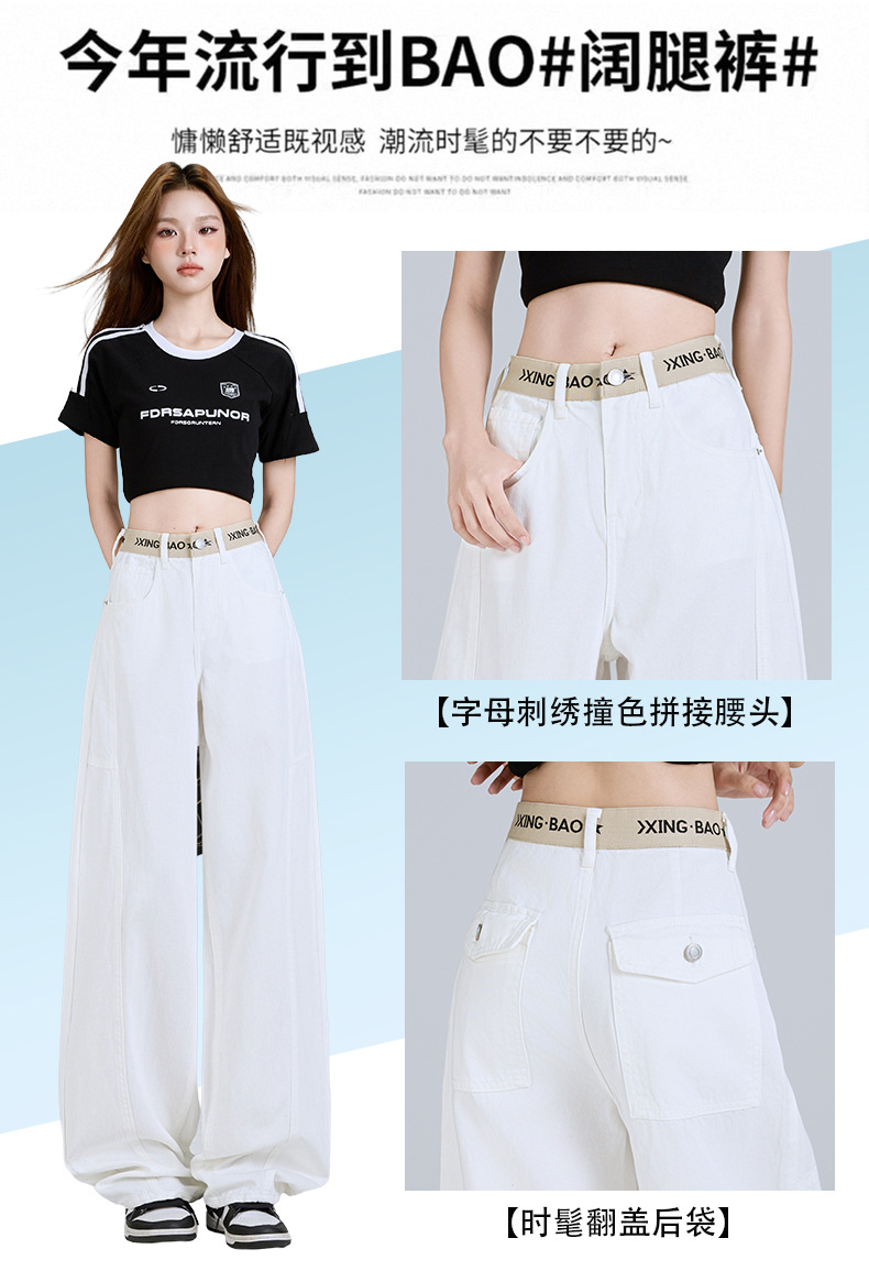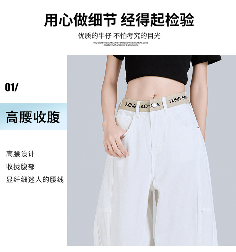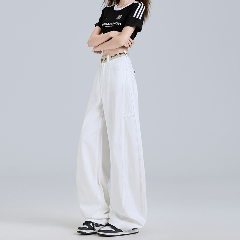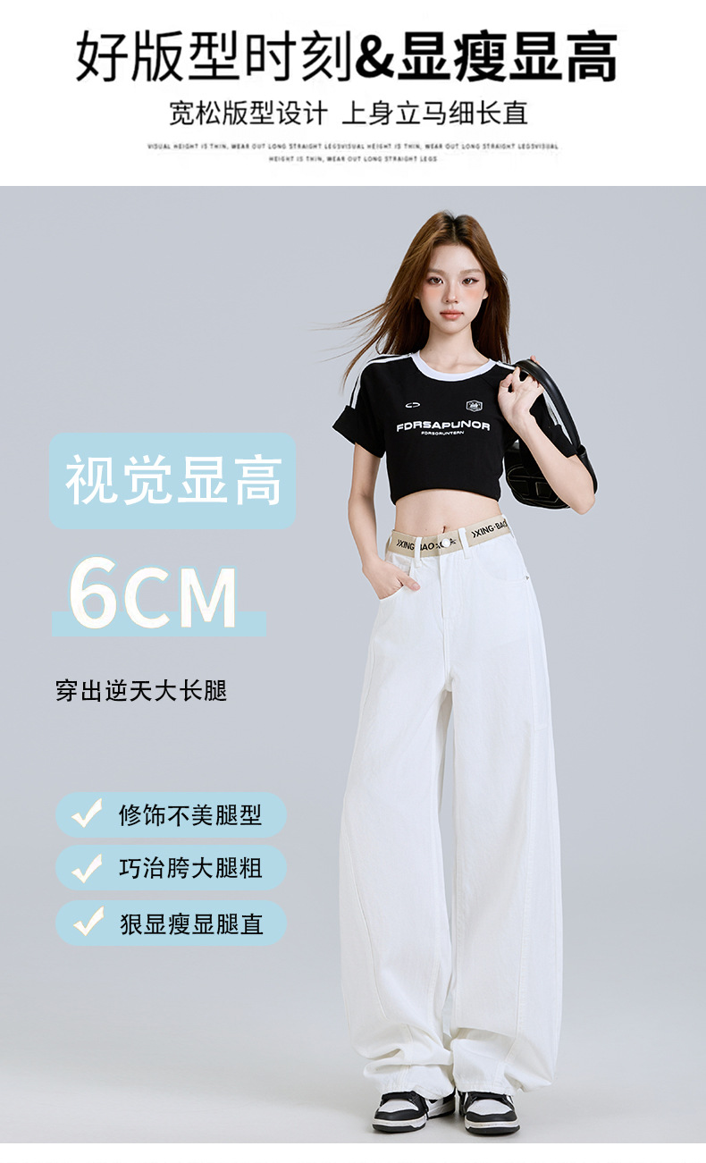 2025년 신상 가을 미색 하이웨이스트 채찍형 와이드 청바지로 여성의 슬림한 배형 몸매를 돋보이게 해주는 루즈한 바닥 길이 바지